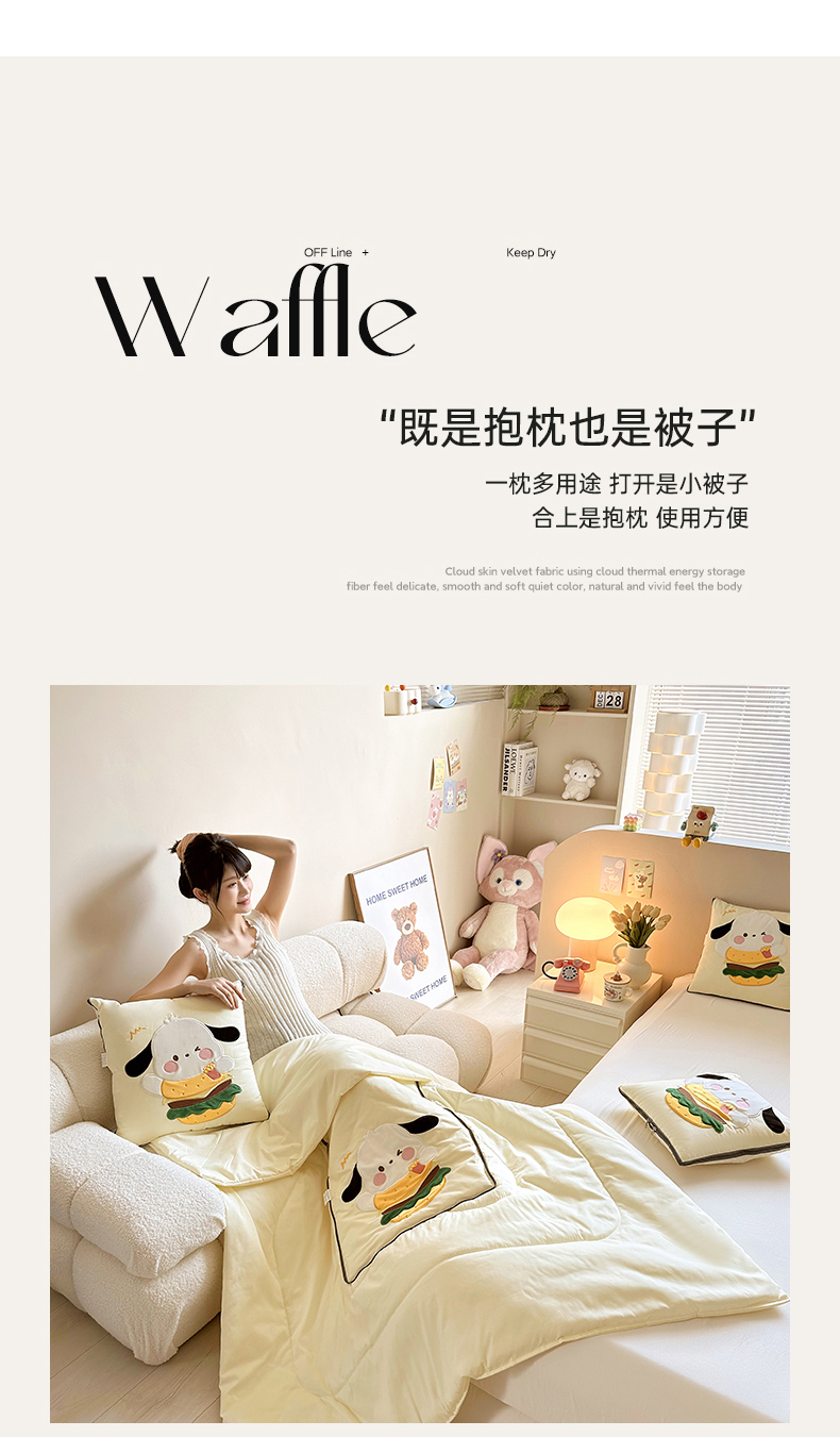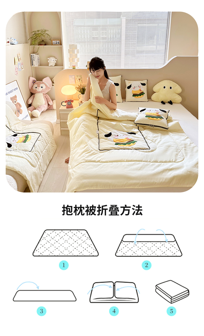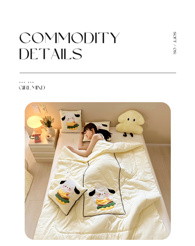 商品名称:铭宣家居 2024新款贴布绣+重工刺绣多功能抱枕被系列 汉堡狗狗 汉堡狗狗-米黄色