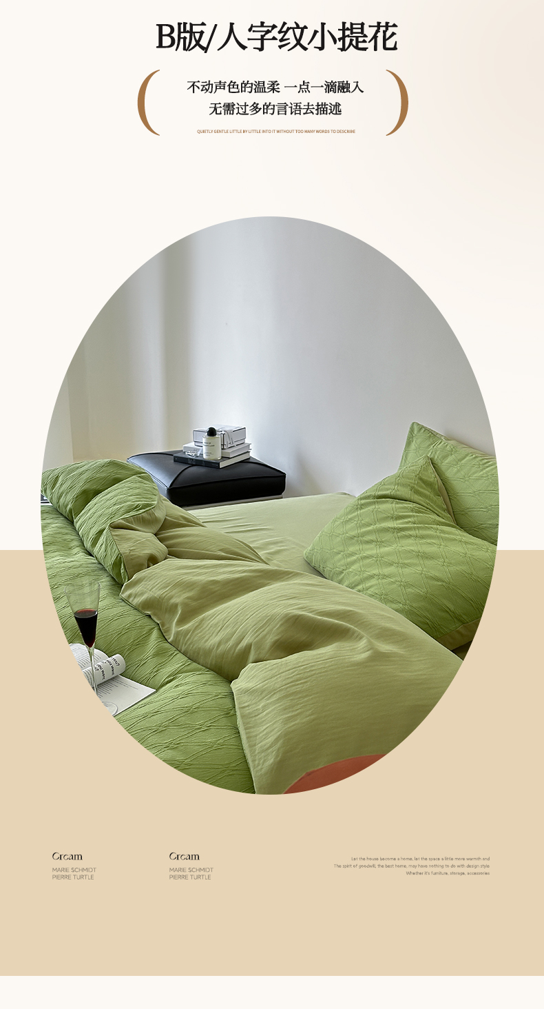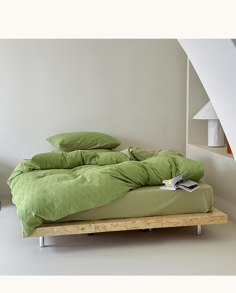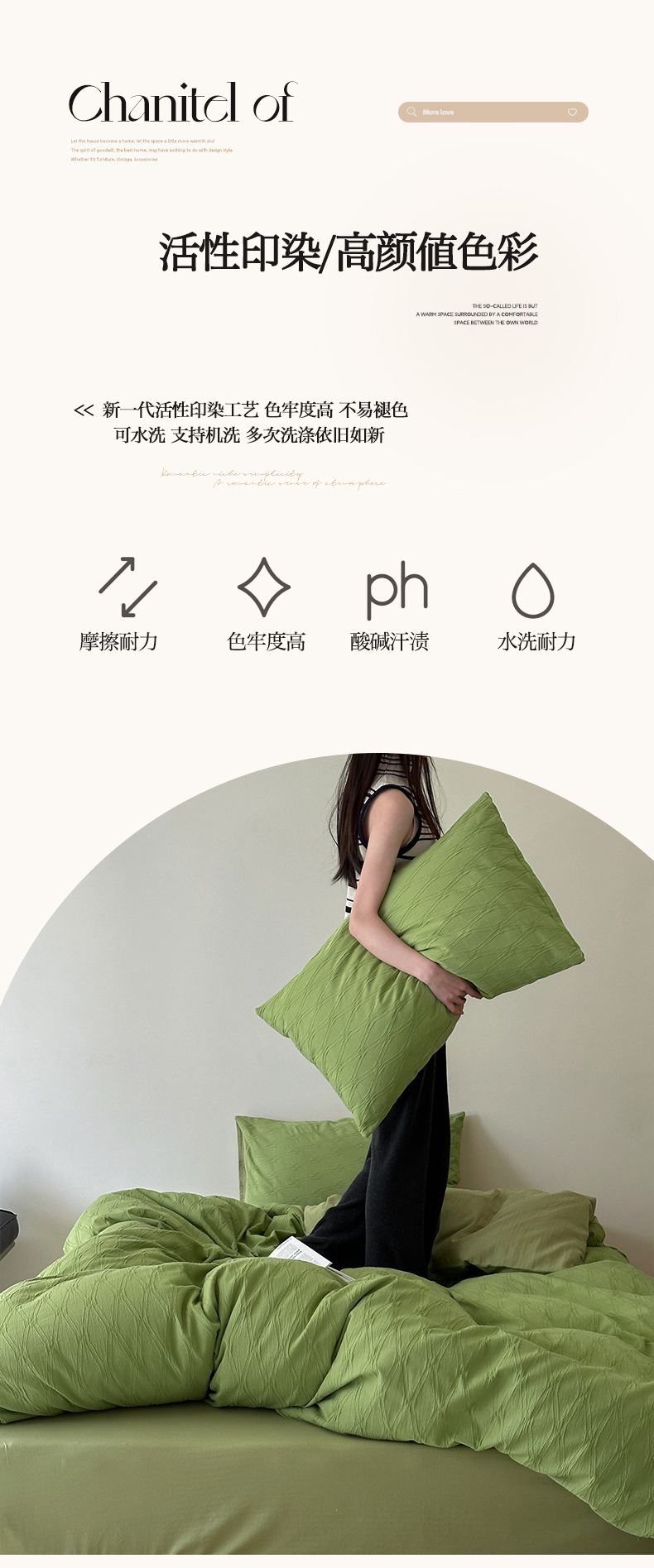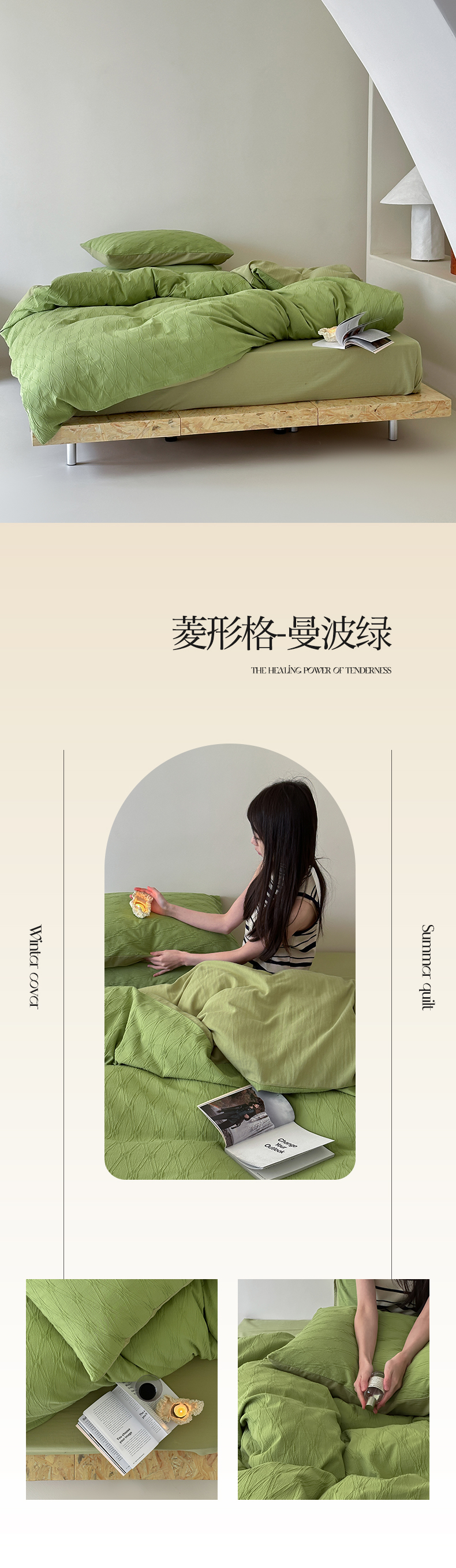 商品名称:山舍家居 2024新款菱形格全棉提花四件套 菱形格-曼波绿