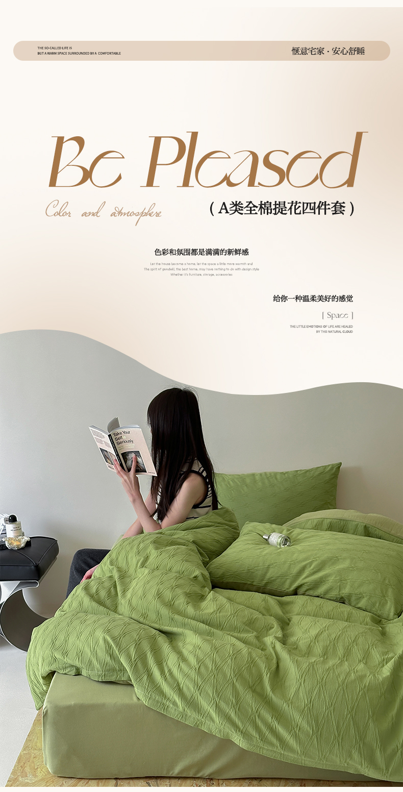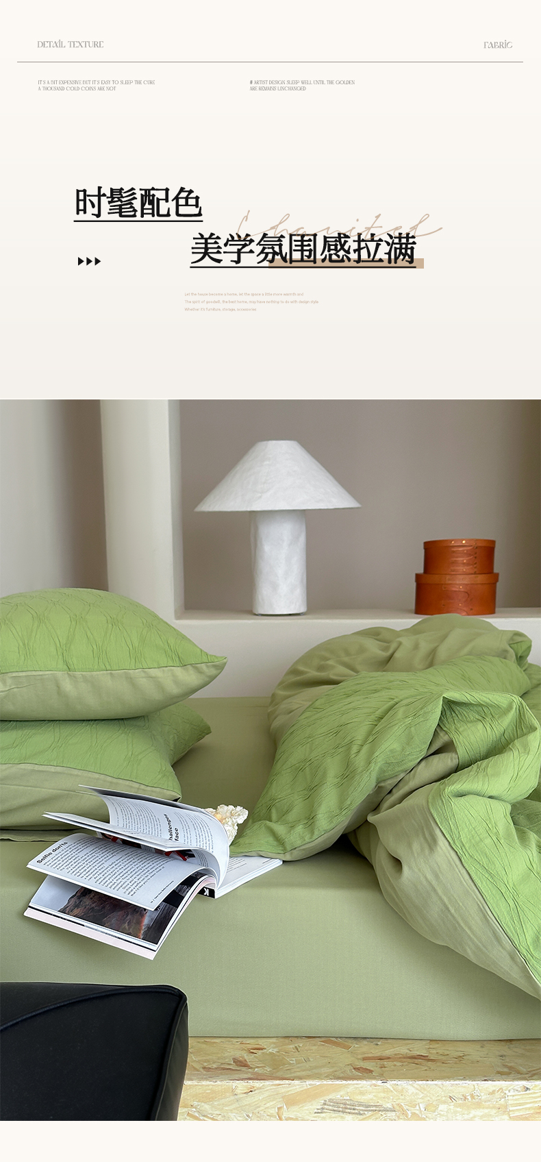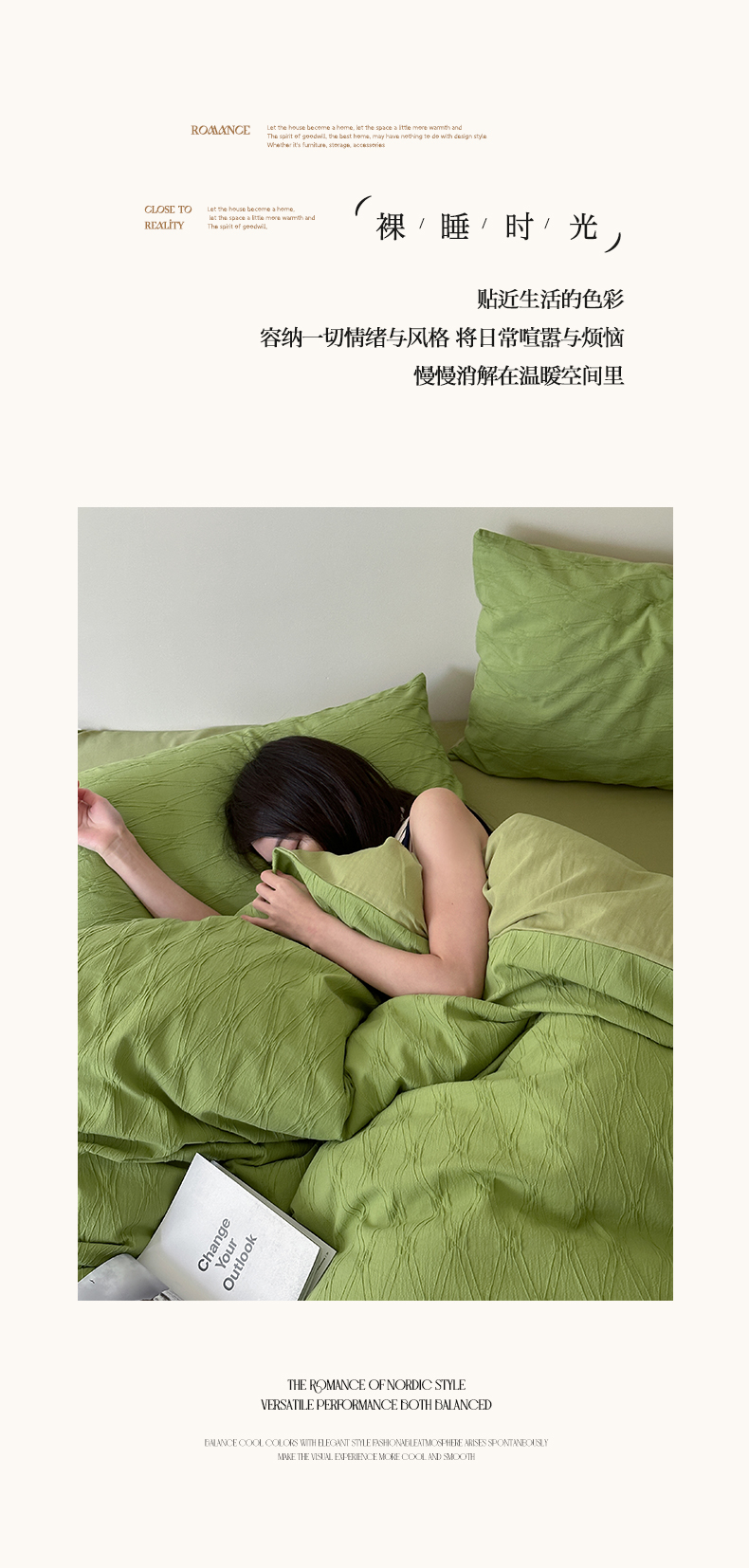 商品名称:山舍家居 2024新款菱形格全棉提花四件套 菱形格-曼波绿
