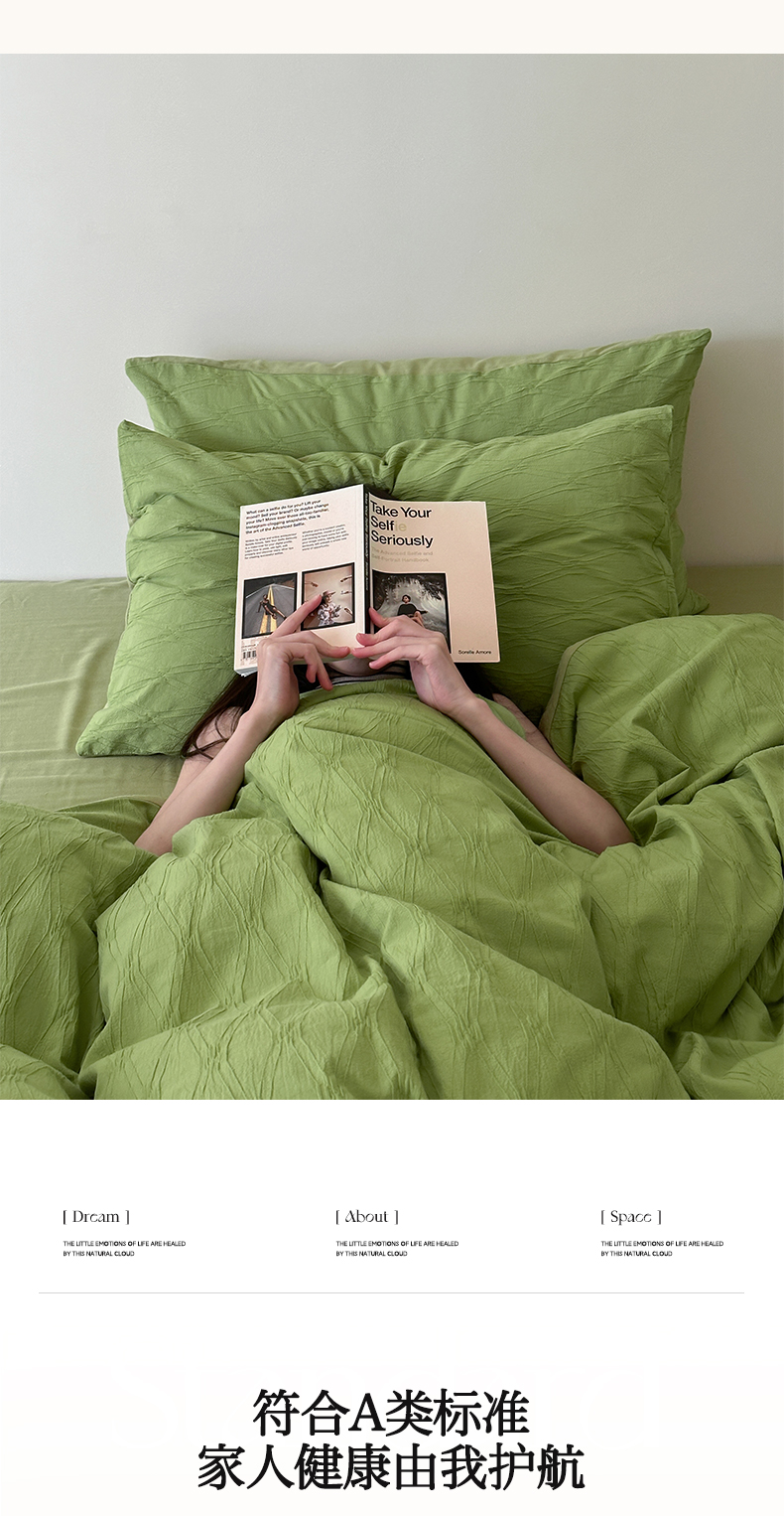 (总)山舍家居 2022新款双层纱布四件套,莱茵蓝,清绿,透白,雅灰,芥黄,裸粉,茶卡,甜白,星蓝,摩卡