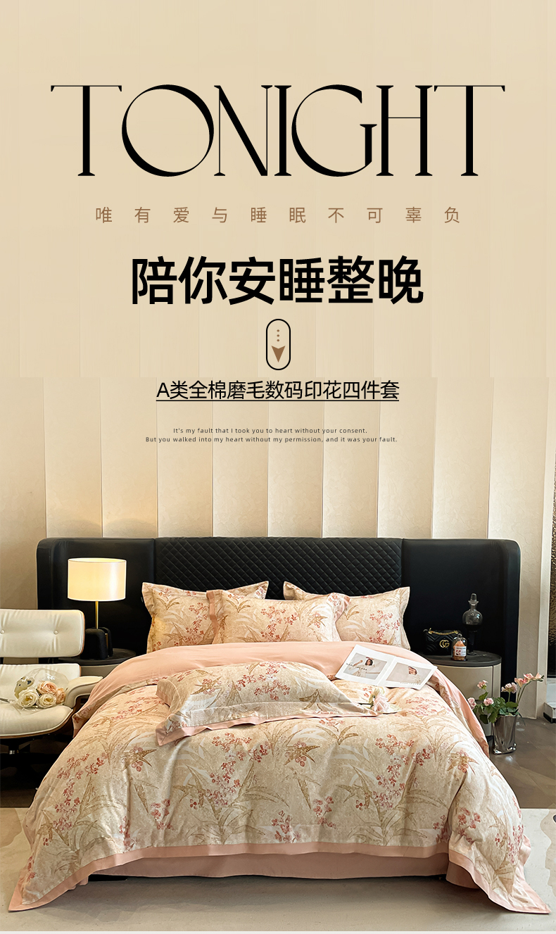 商品名称:安妮家居 2024新款A类全棉陶瓷数码印花四件套 艾米-桔