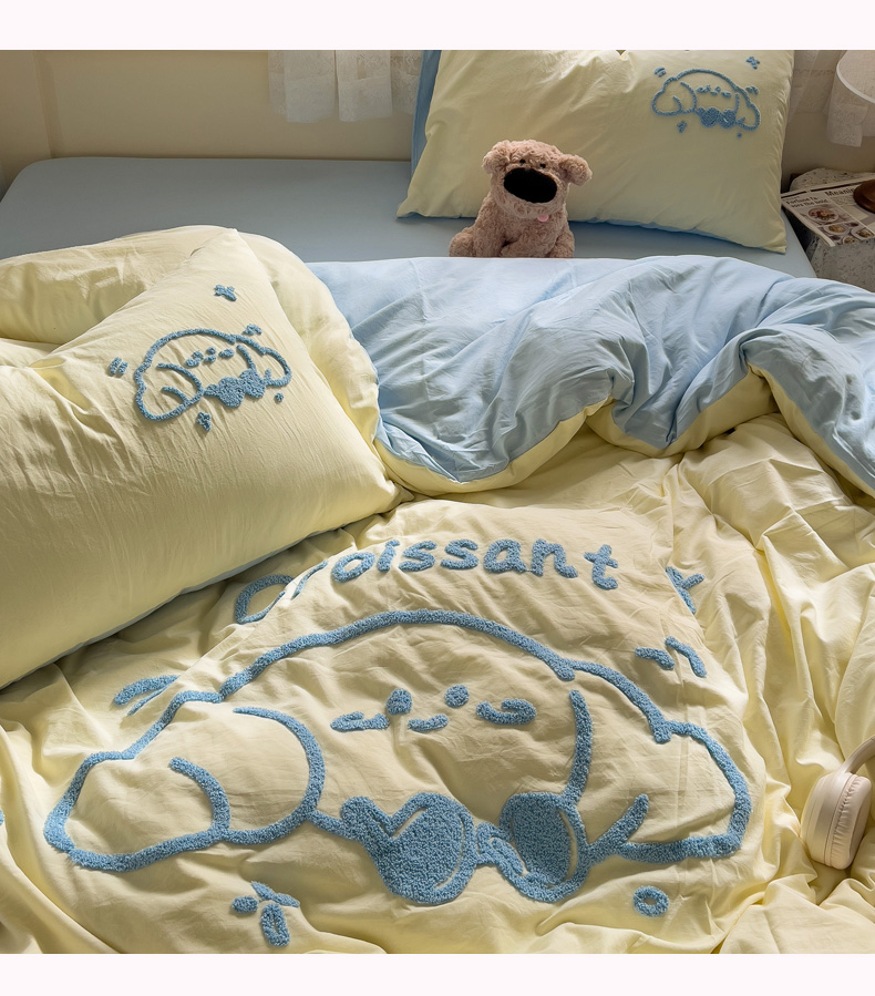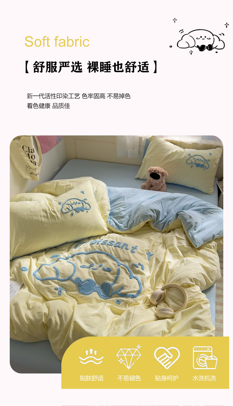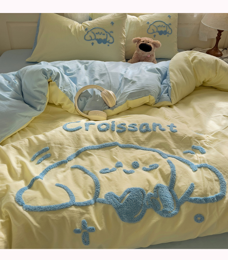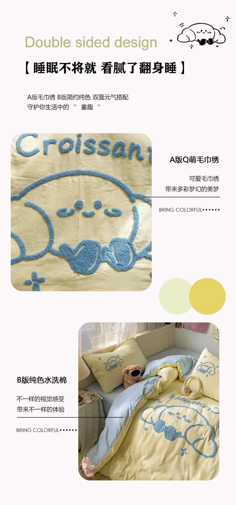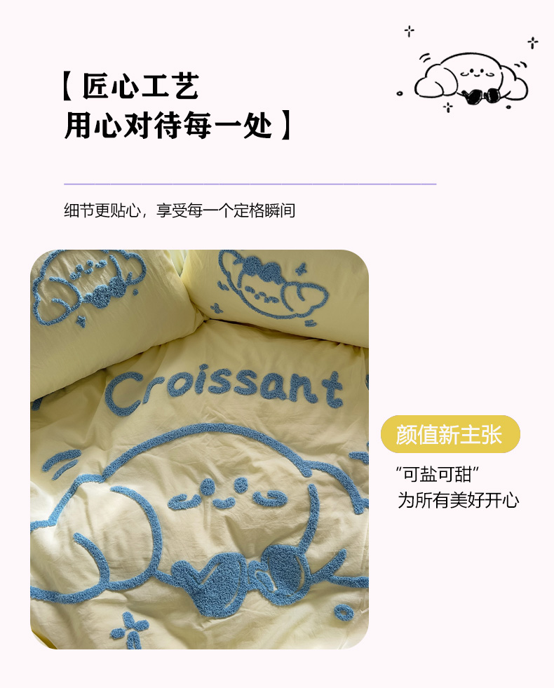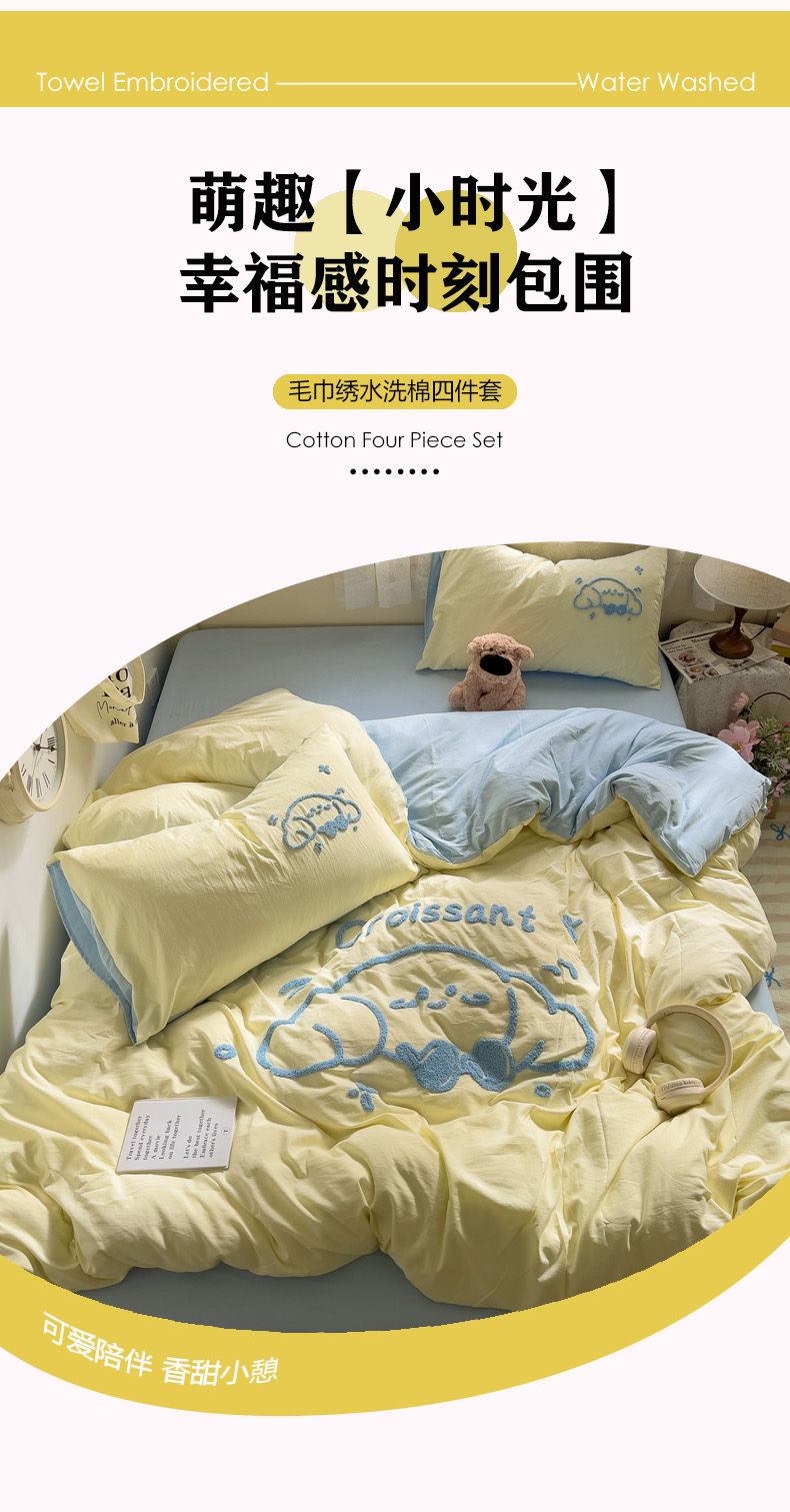当前位置: 91家纺网 > 商品网购 > 床品套件 > 四件套 > 毛巾绣四件套 > 曼谷家纺 2025新款软糯毛巾绣水洗棉四件套-【买家秀联系微信】专属版权,质检报告 牛角包-芝士蓝