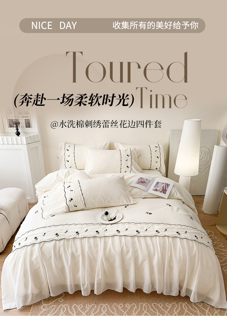 当前位置: 91家纺网 > 商品网购 > 床品套件 > 四件套 > 水洗棉四件套 > 你好美丽 2025新款巴黎水洗磨毛刺绣蕾丝花边工艺款四件套 巴黎白黑