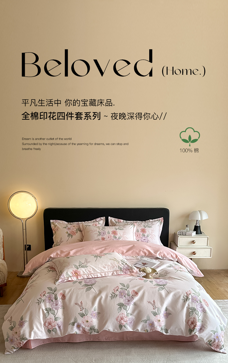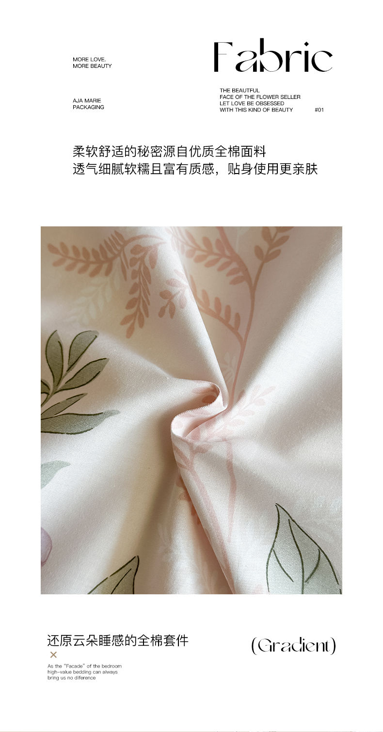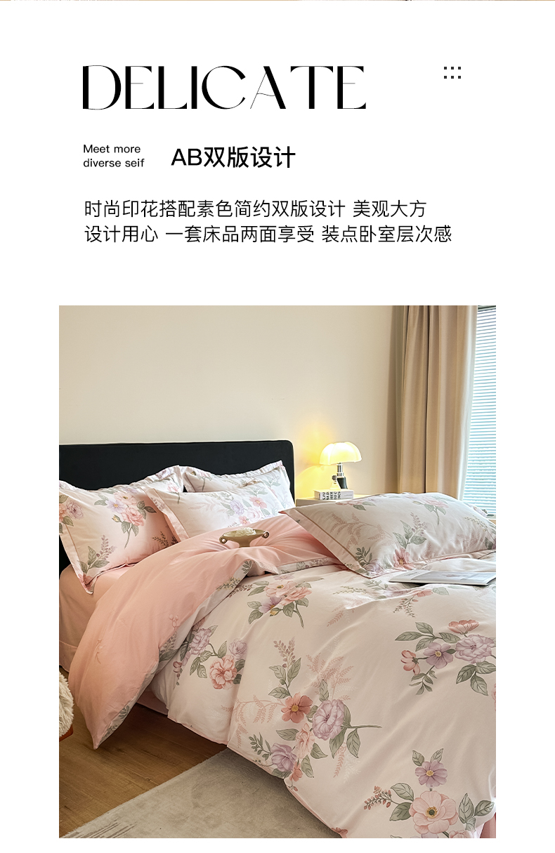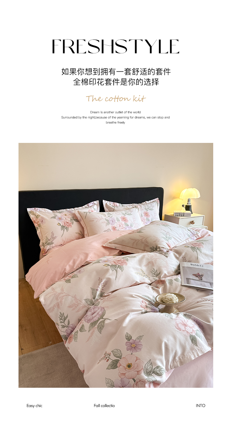 商品名称:格里芬家纺 2025新款全棉四件套13376纯棉印花四件套 落花