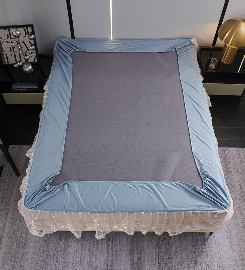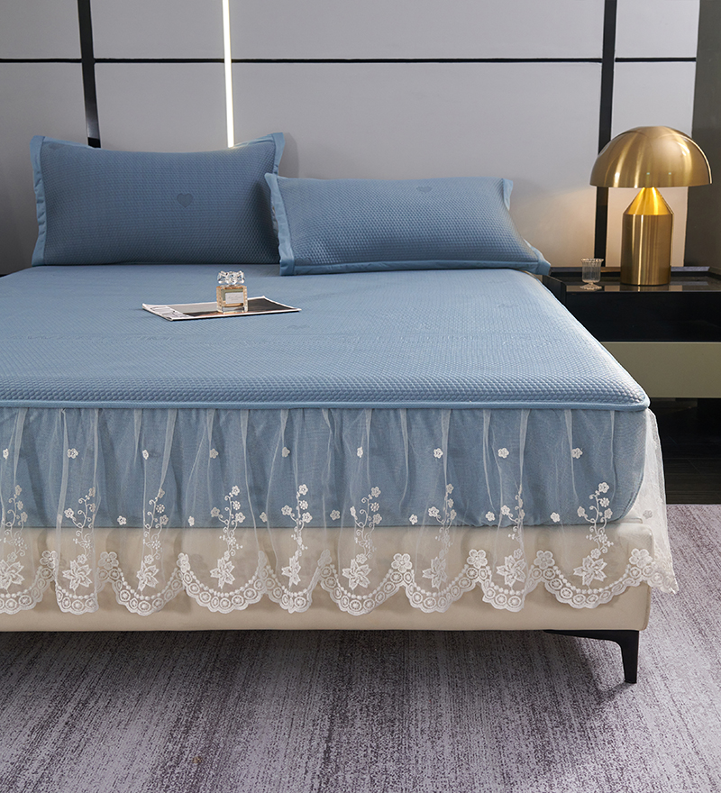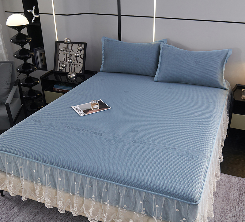 (总)青雅席业 2025新款舒适亲肤凉感冰豆豆网纱花边凉席,粉色,灰色,咖色,蓝色,绿色