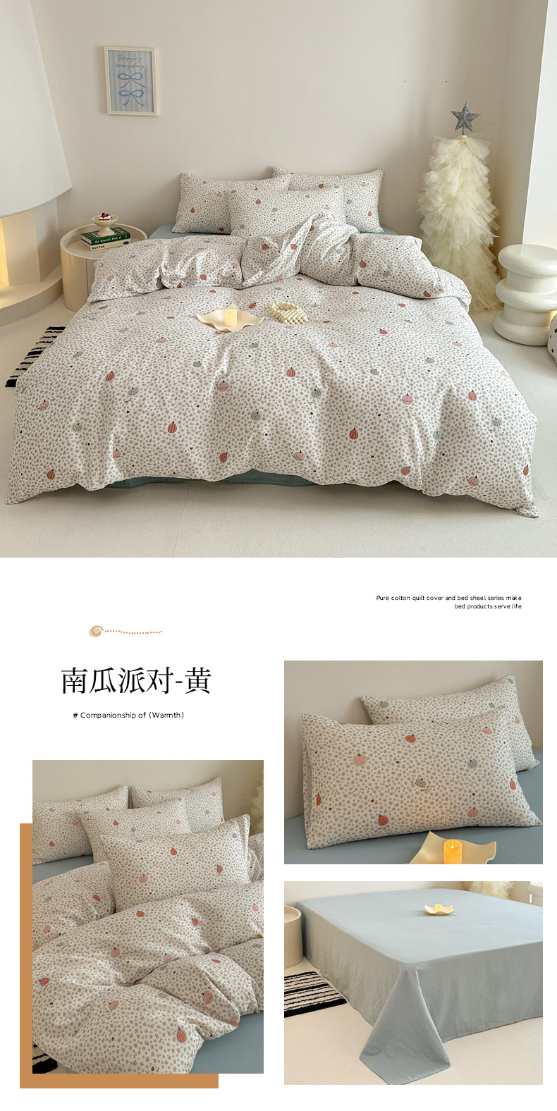 当前位置: 91家纺网 > 商品网购 > 床品套件 > 四件套 > 全棉普通四件套 > 塞纳 2026新款.全棉有氧双层纱四件套-场景一 南瓜派对-黄