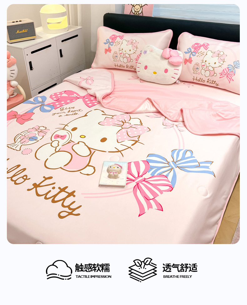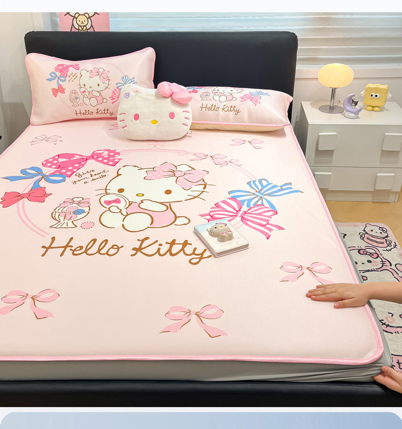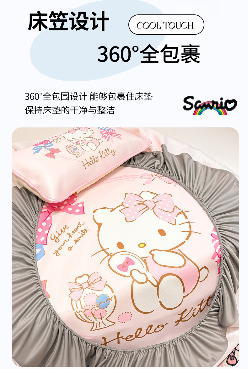 暮思家居 2025新款正版授权A类大版数码印花三丽鸥可机洗1200D冰丝凉席可组合针织棉夏被四件套床笠款 床笠款-美美KT