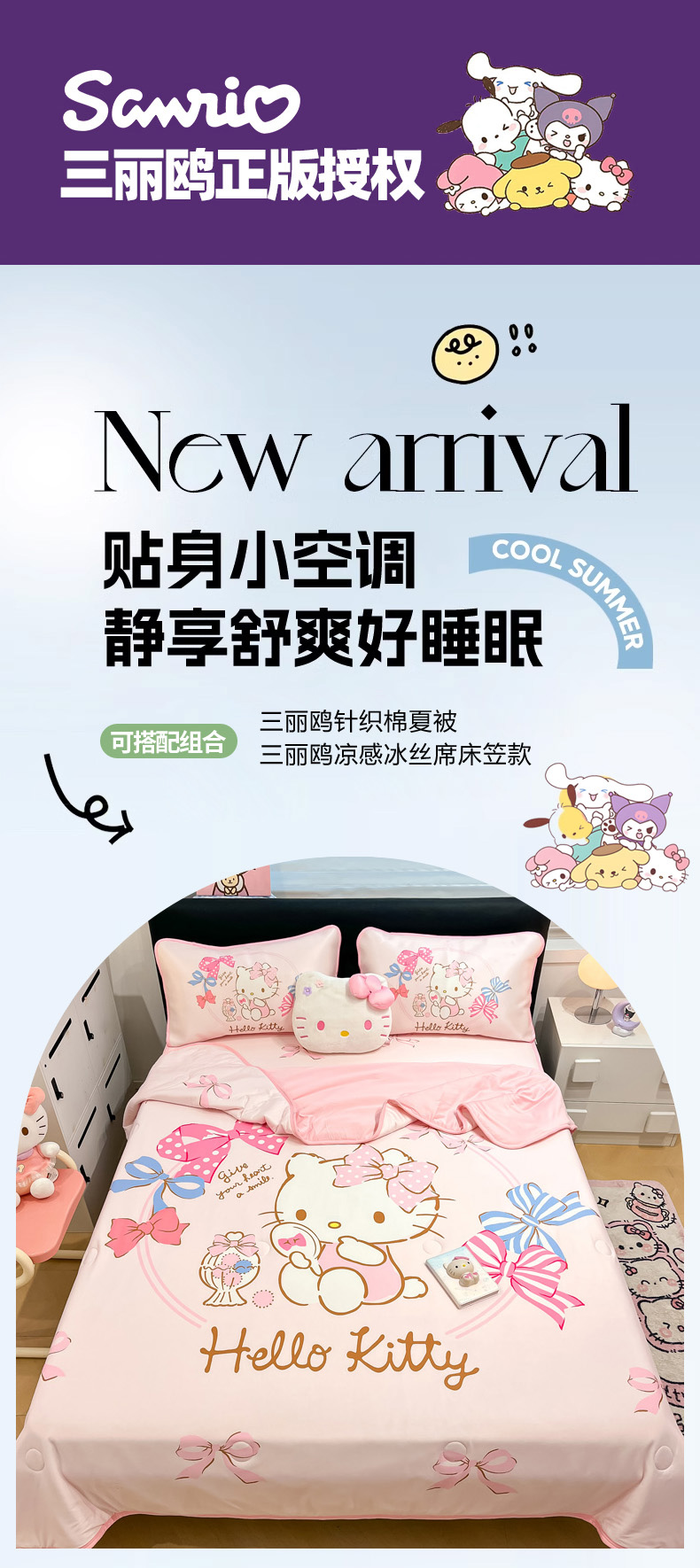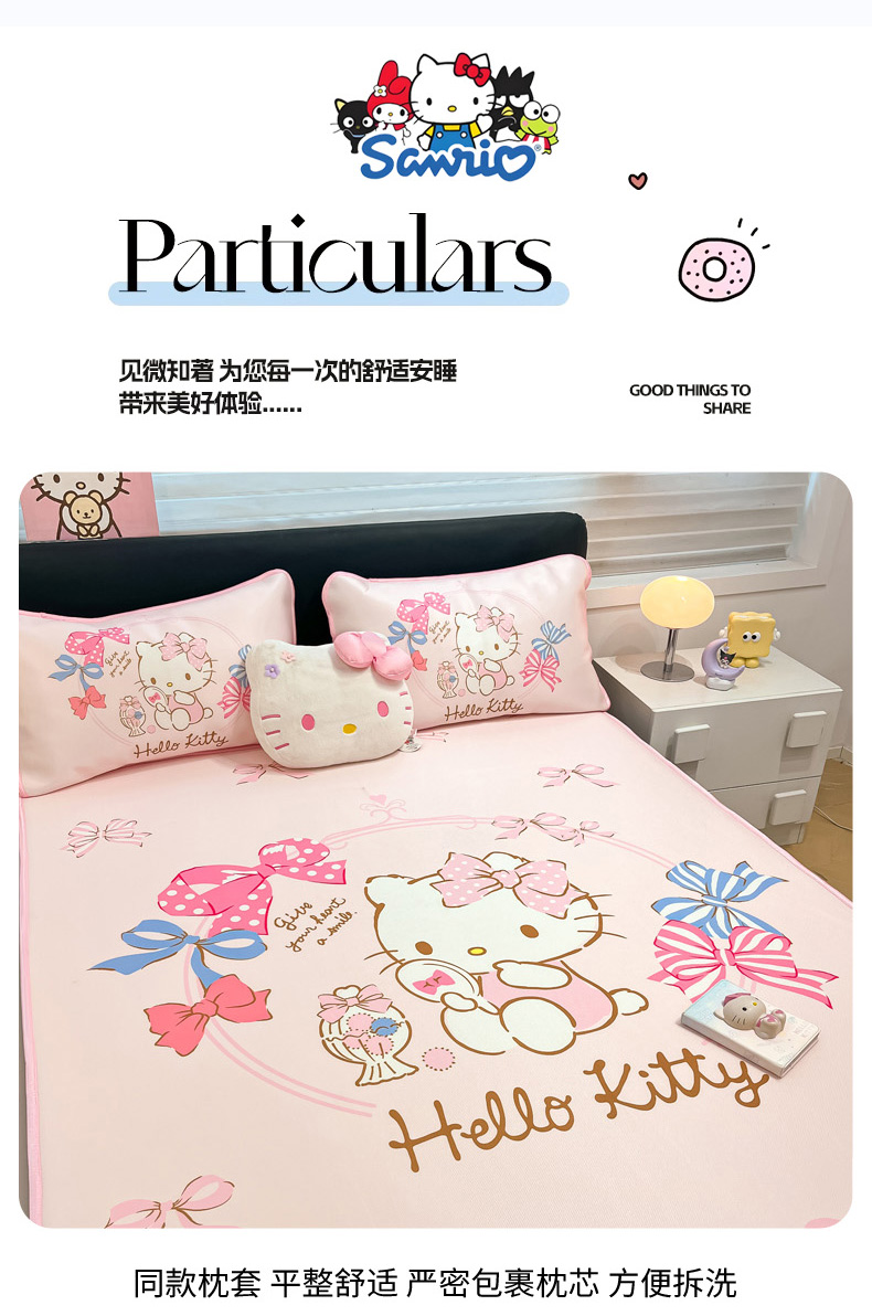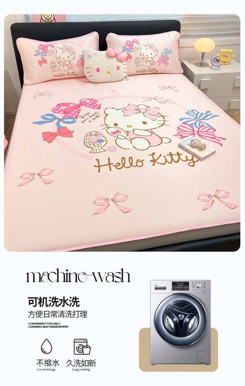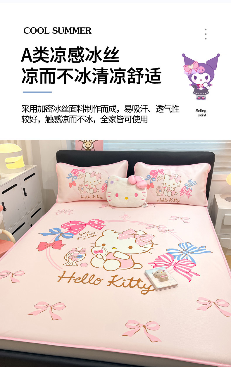 当前位置: 91家纺网 > 商品网购 > 床上用品 > 凉席 > 暮思家居 2025新款正版授权A类大版数码印花三丽鸥可机洗1200D冰丝凉席可组合针织棉夏被四件套床笠款 床笠款-美美KT