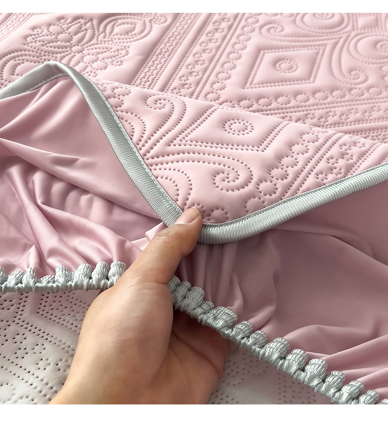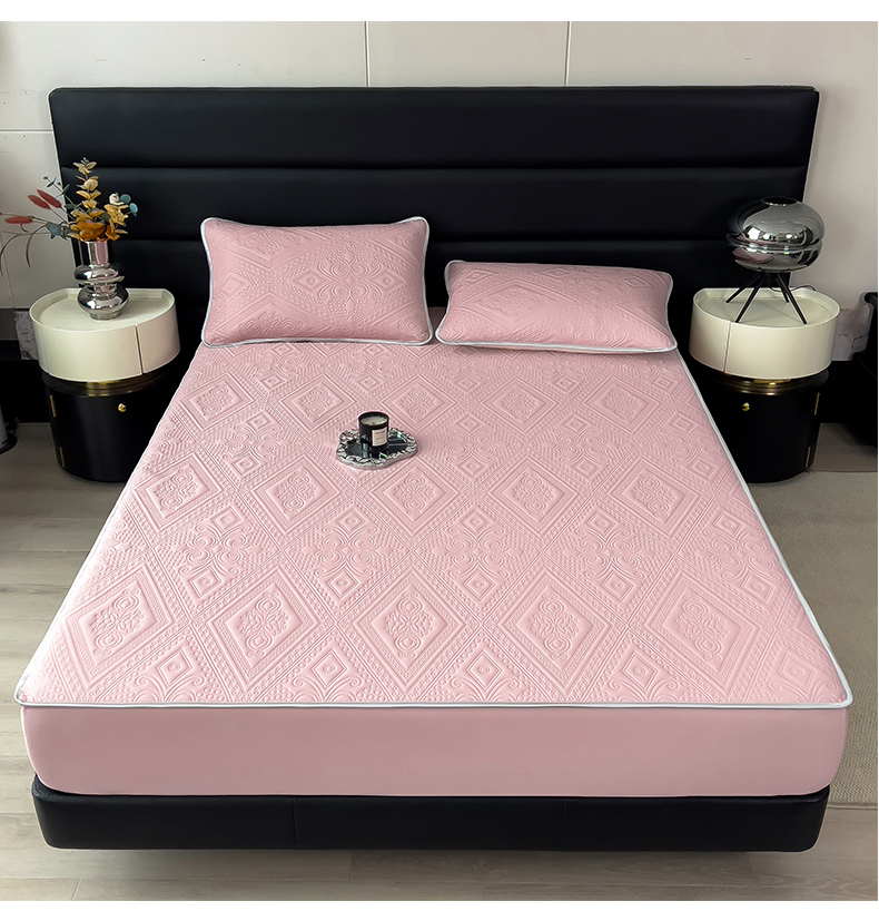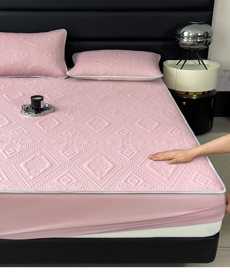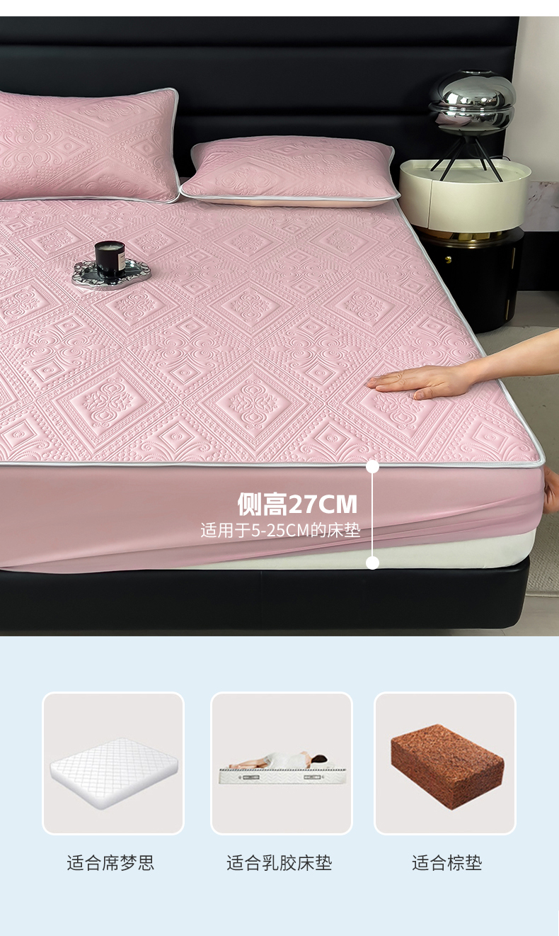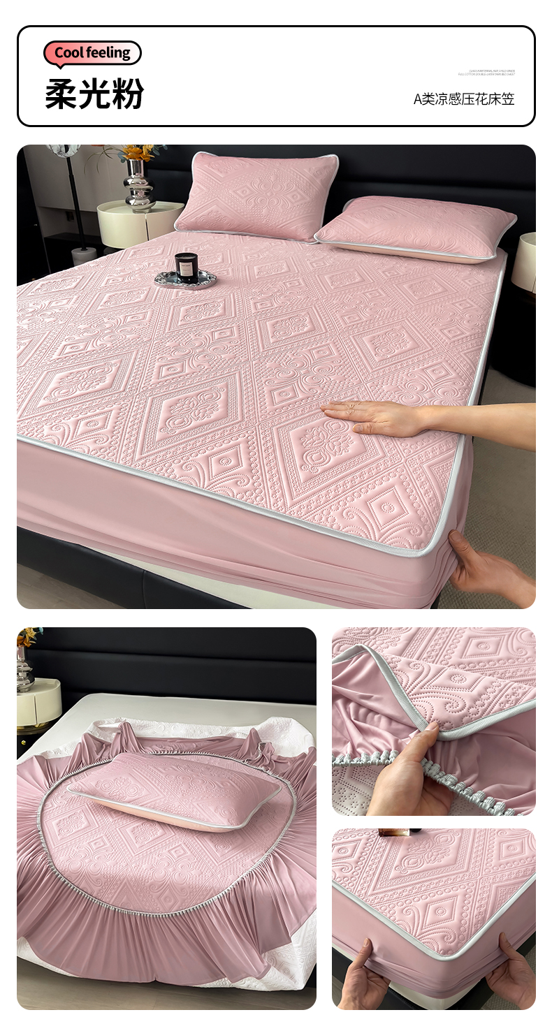 世纪绒品 2025新款A类凉感压花单床笠单夏被 柔光粉-单床笠
