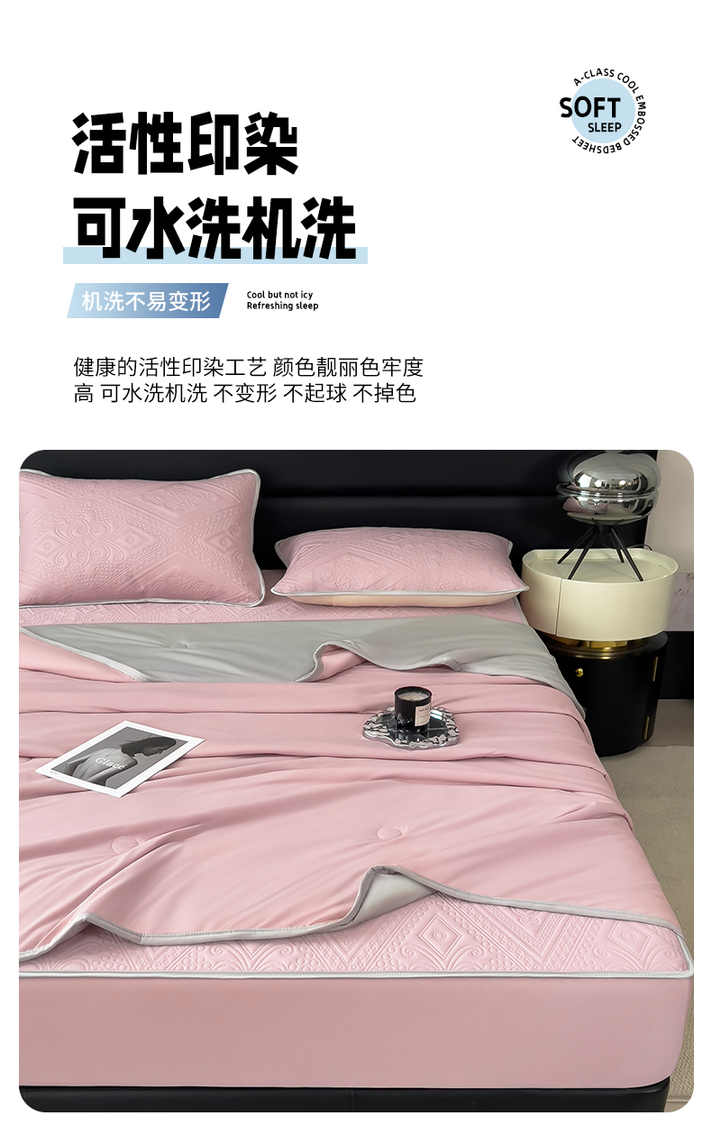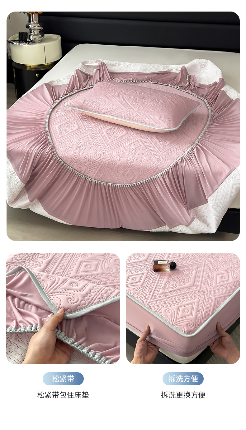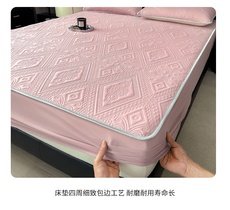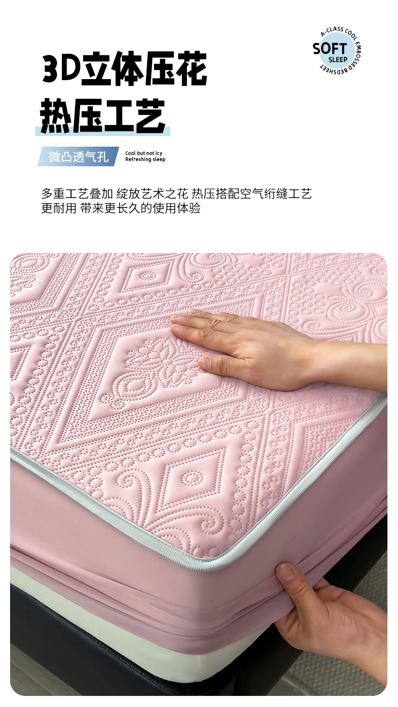 • 91家纺网 家纺一手货源 找家纺 世纪绒品 2025新款A类凉感压花单床笠单夏被 柔光粉-单床笠