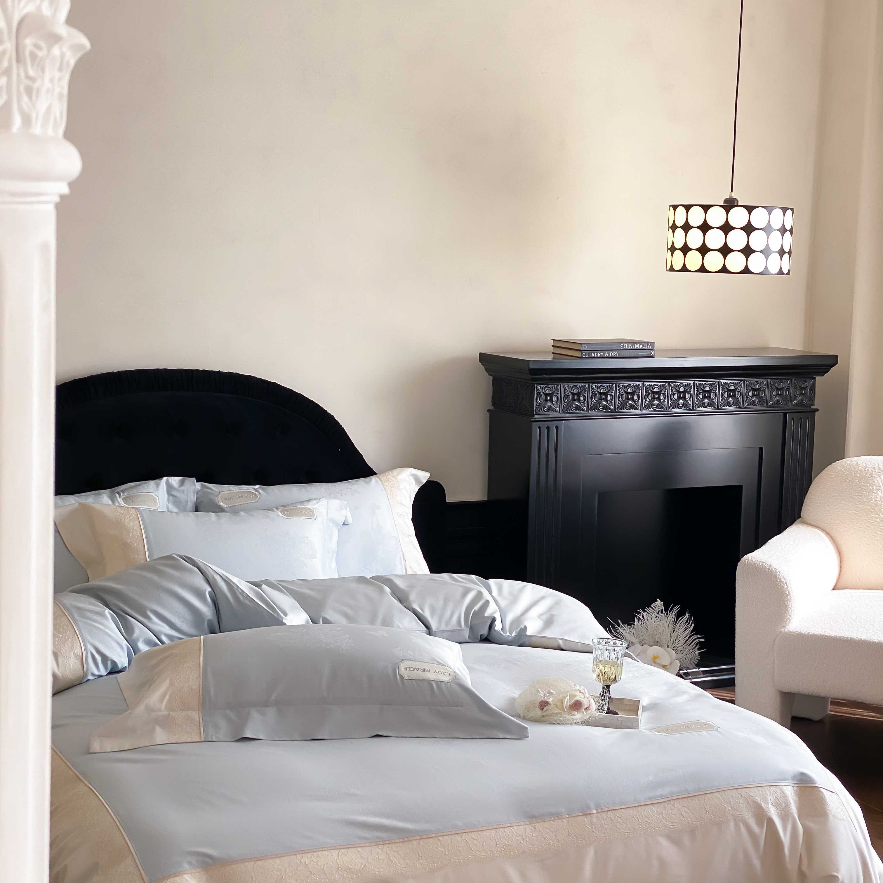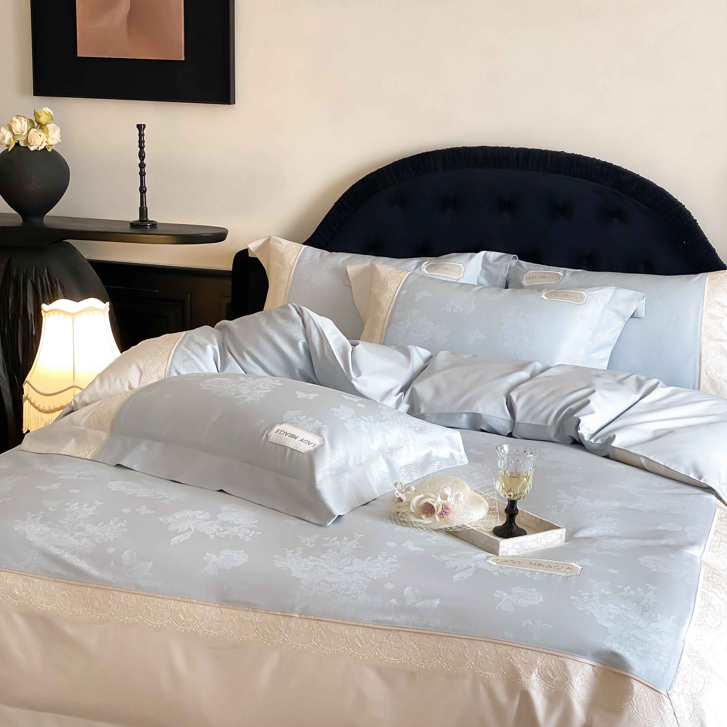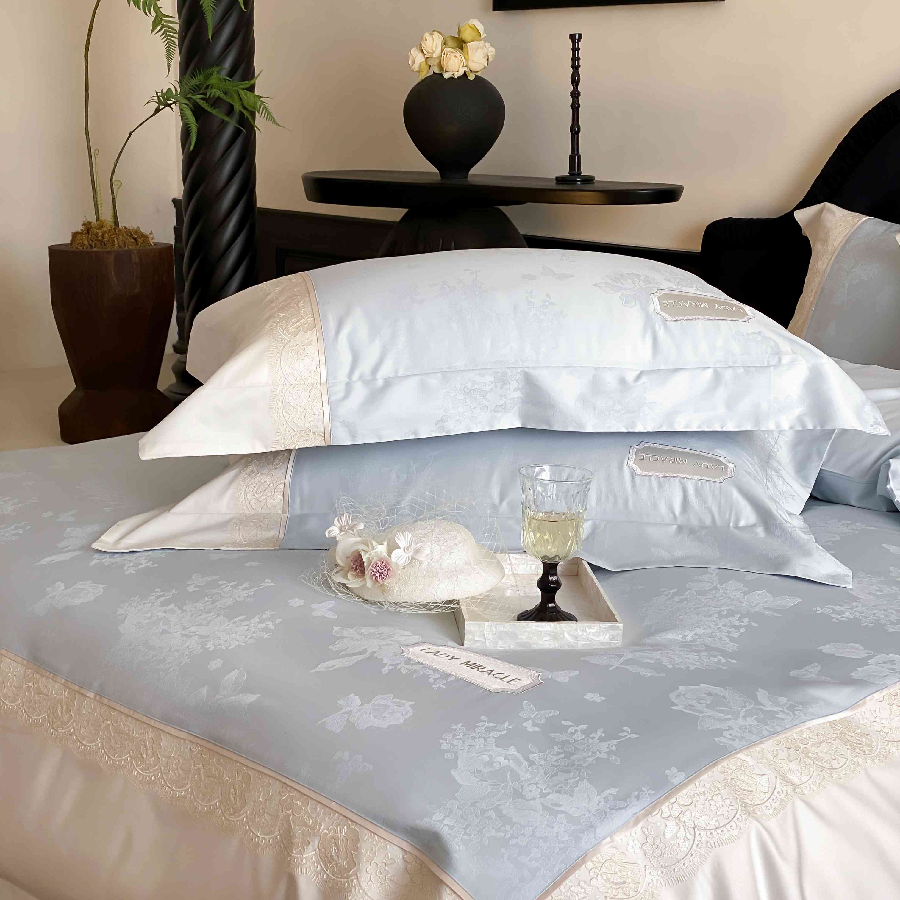 2025新款高支数提花绣花四件套-“伊莎贝尔”系列 伊莎贝尔-天空蓝