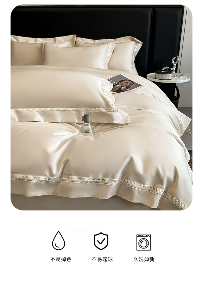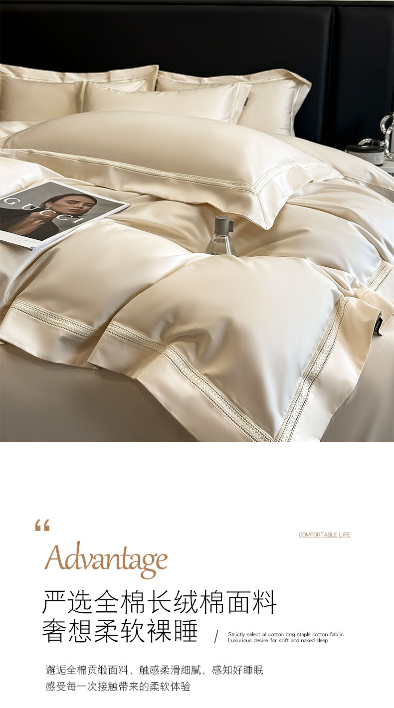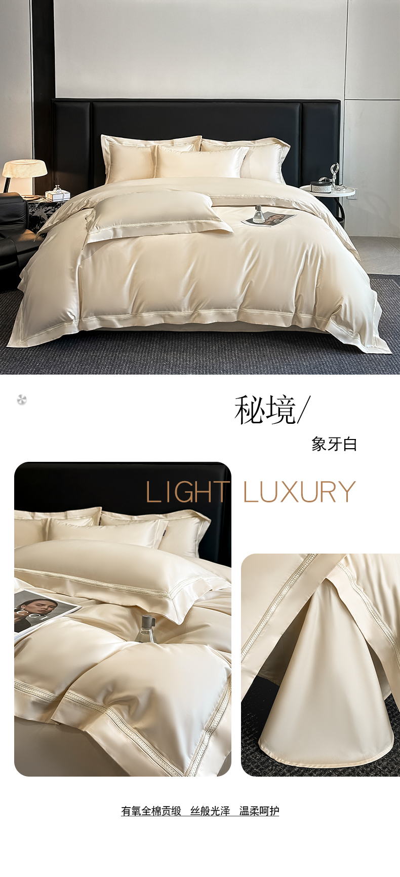 (总)安妮家居 2025新款100S长绒棉贡缎纯色四件套,水漾蓝,胧月灰,奶白色,蔷薇粉,柔缦紫,砂砾咖