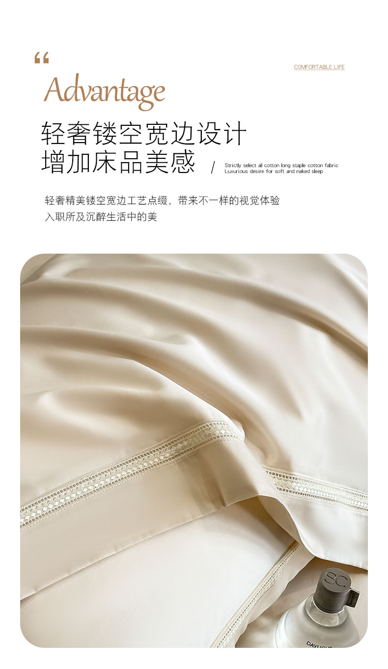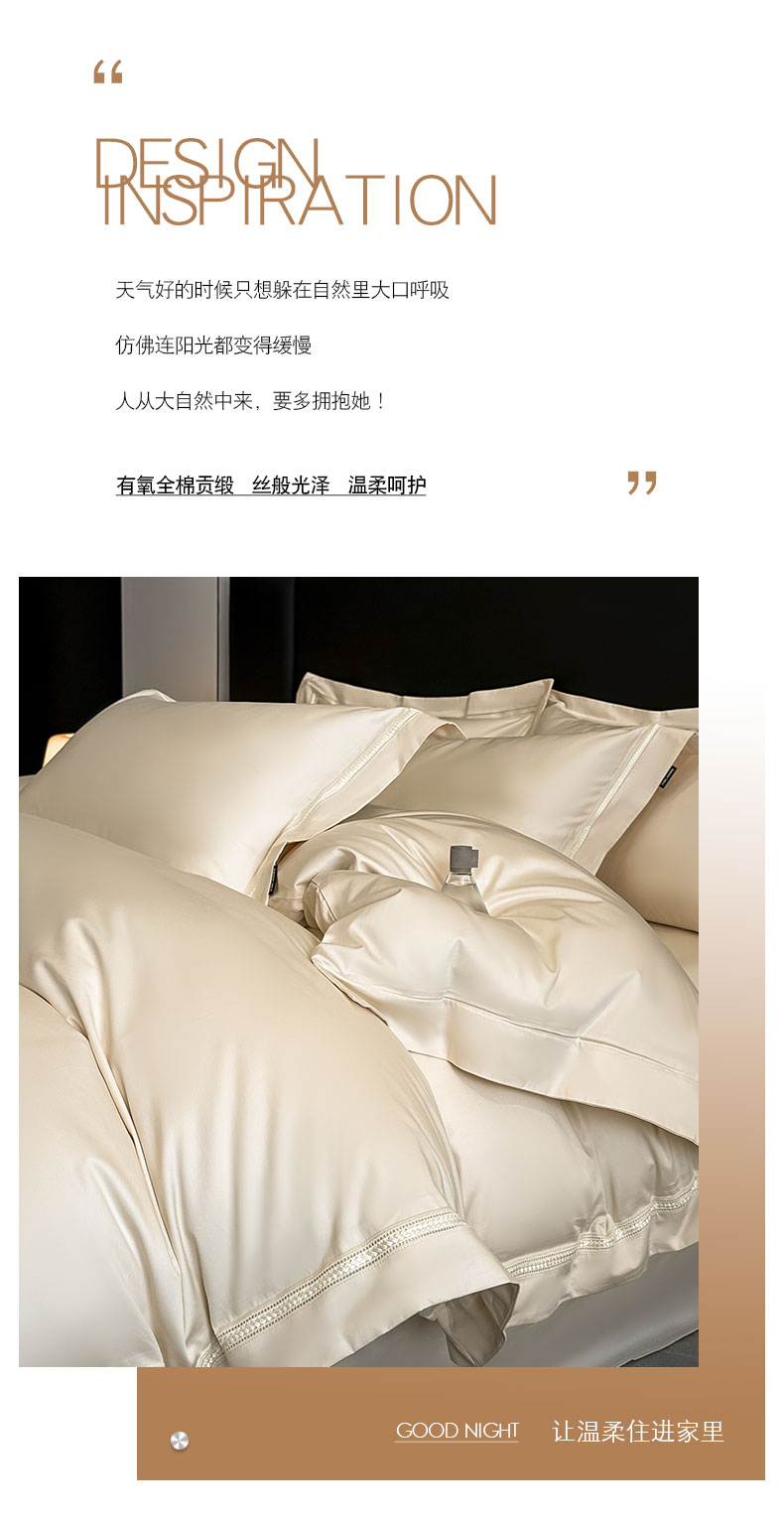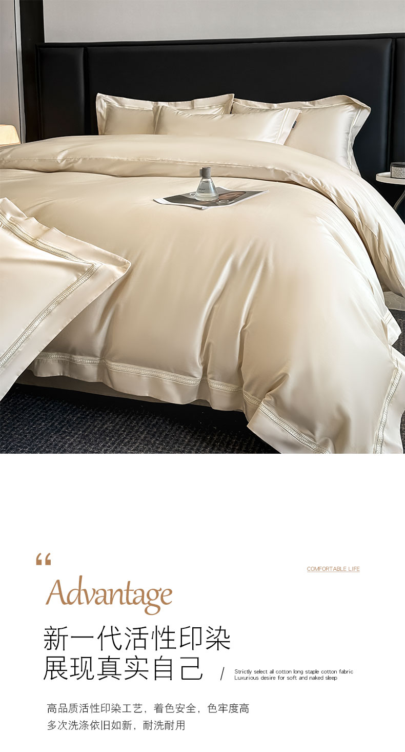 (总)安妮家居 2025新款100S长绒棉贡缎纯色四件套,水漾蓝,胧月灰,奶白色,蔷薇粉,柔缦紫,砂砾咖