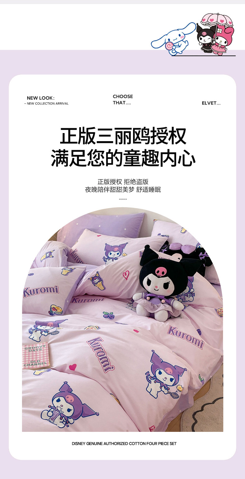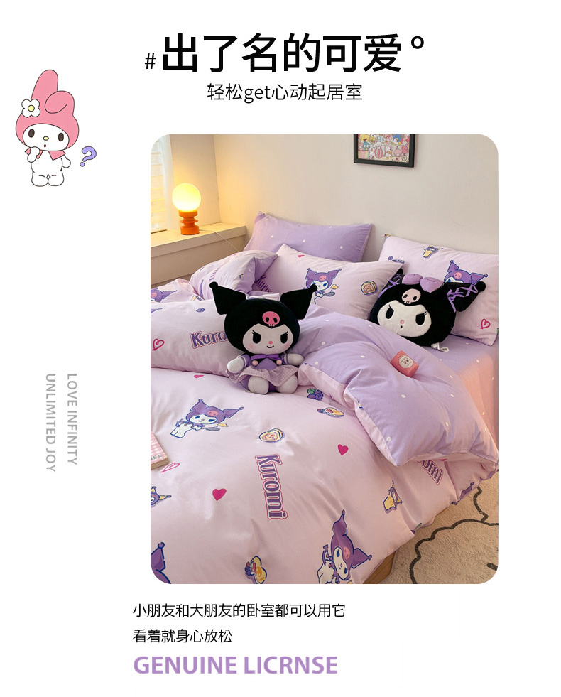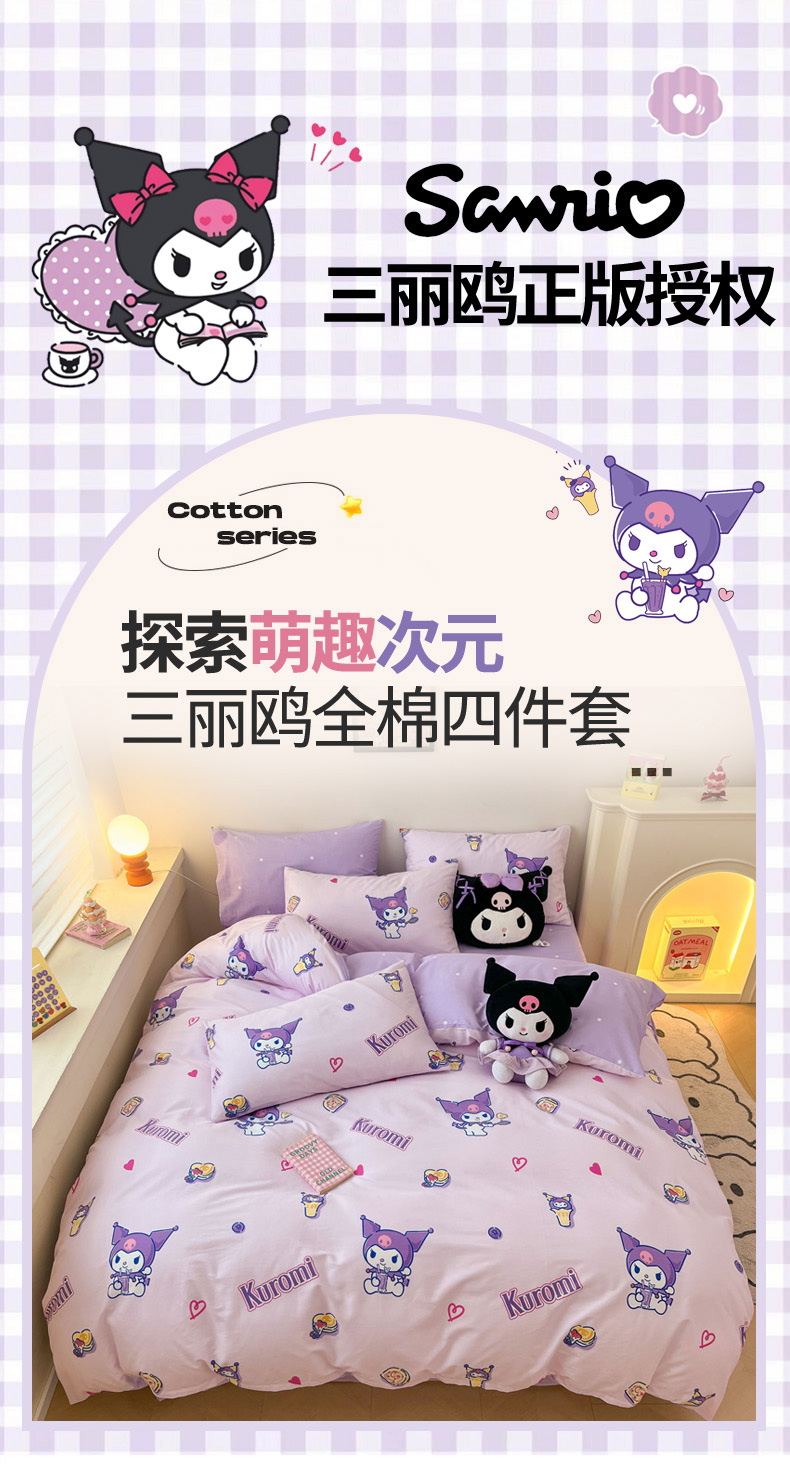 当前位置: 91家纺网 > 商品网购 > 床品套件 > 四件套 > 全棉普通四件套 > 暮思家居 2025新款正版授权三丽鸥全棉纯棉四件套系列-第三批 甜甜库洛米