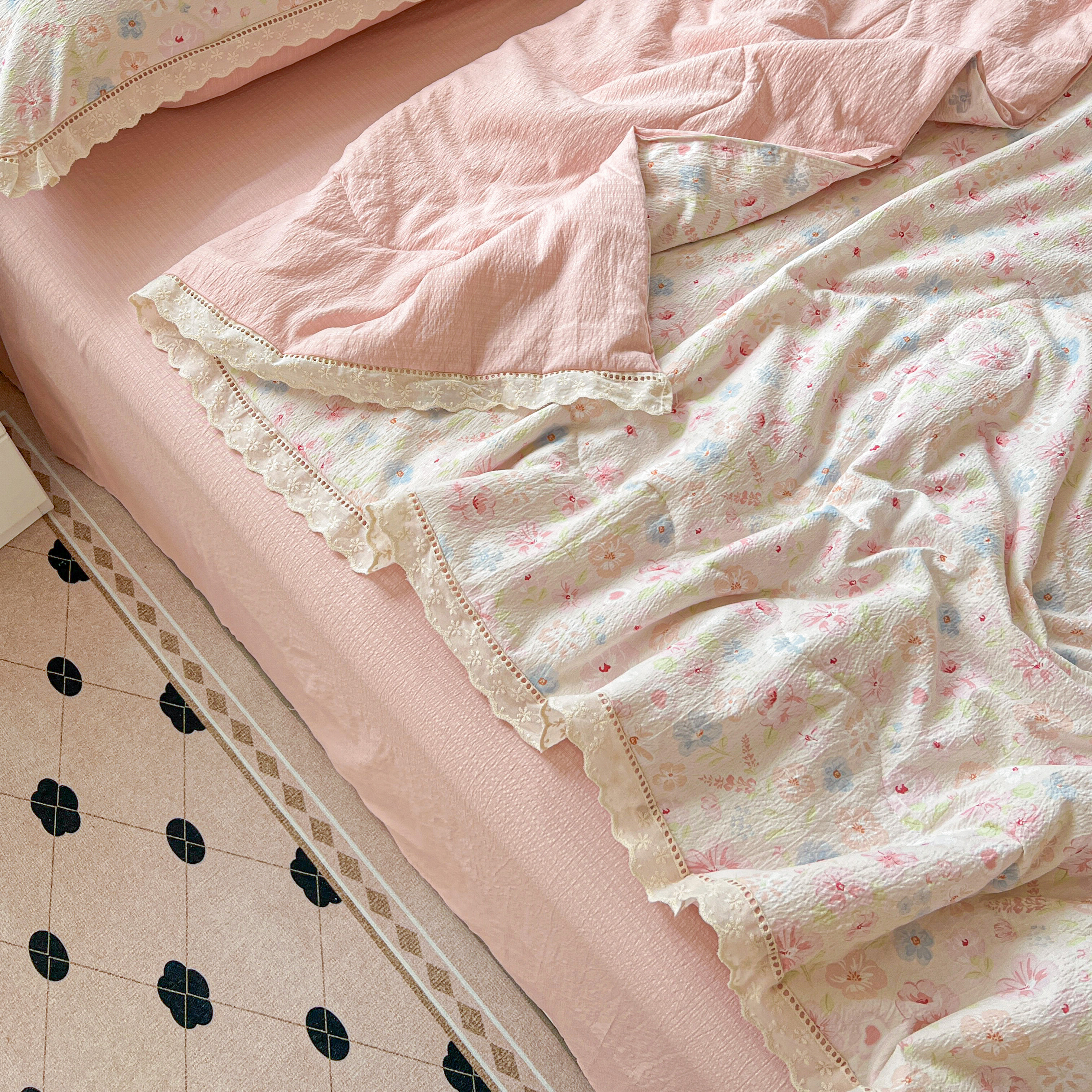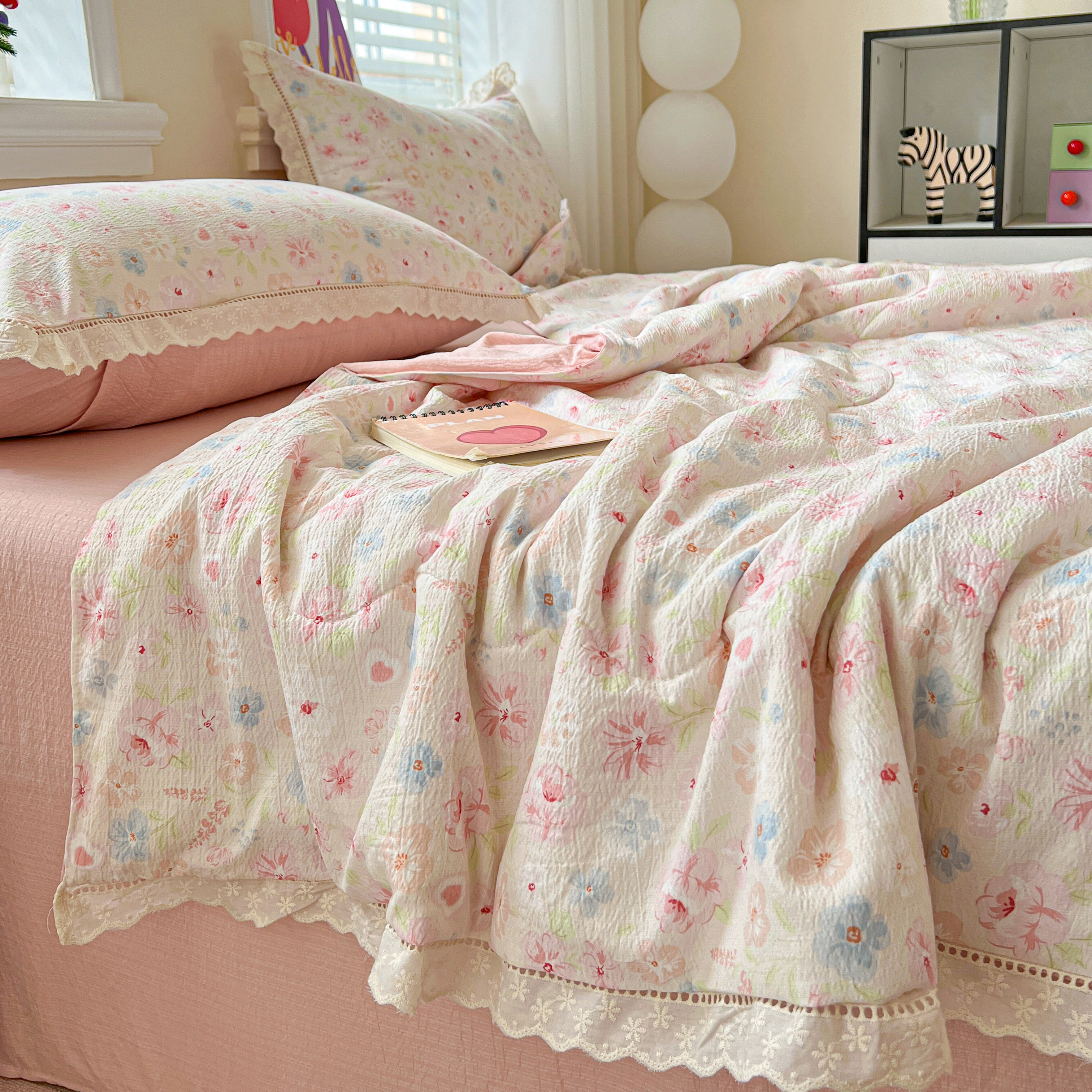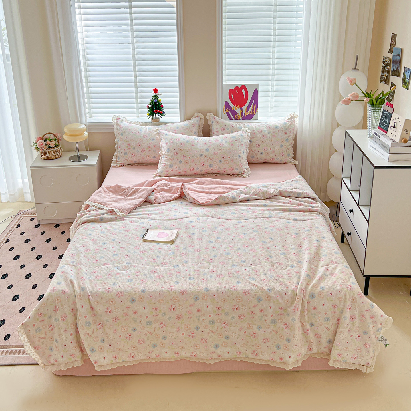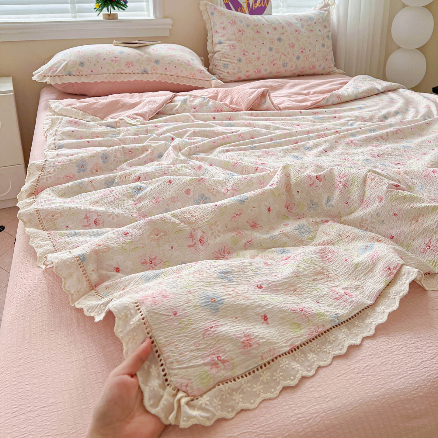 2025新款云感皱皱纱全棉花边款夏被四件套 白月光