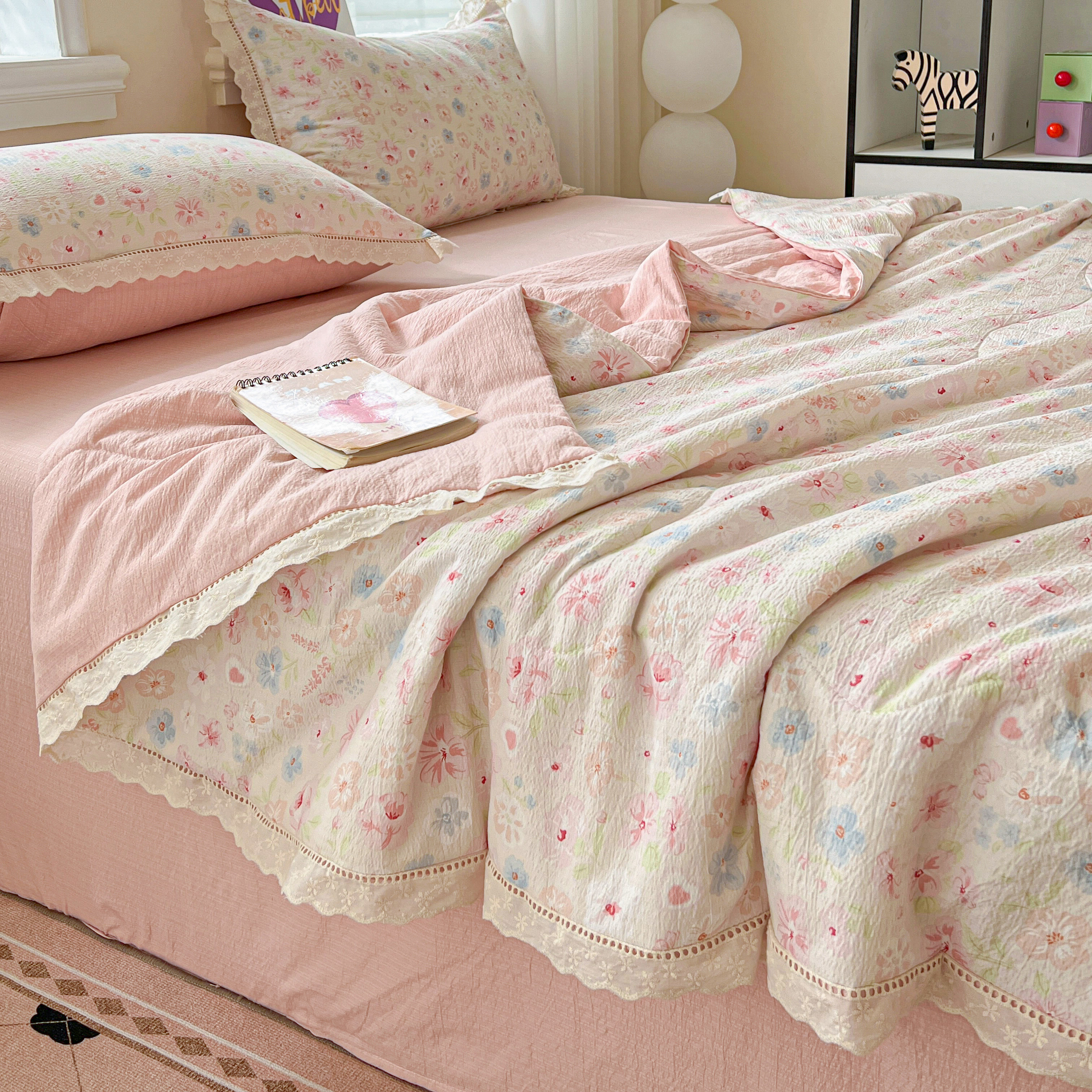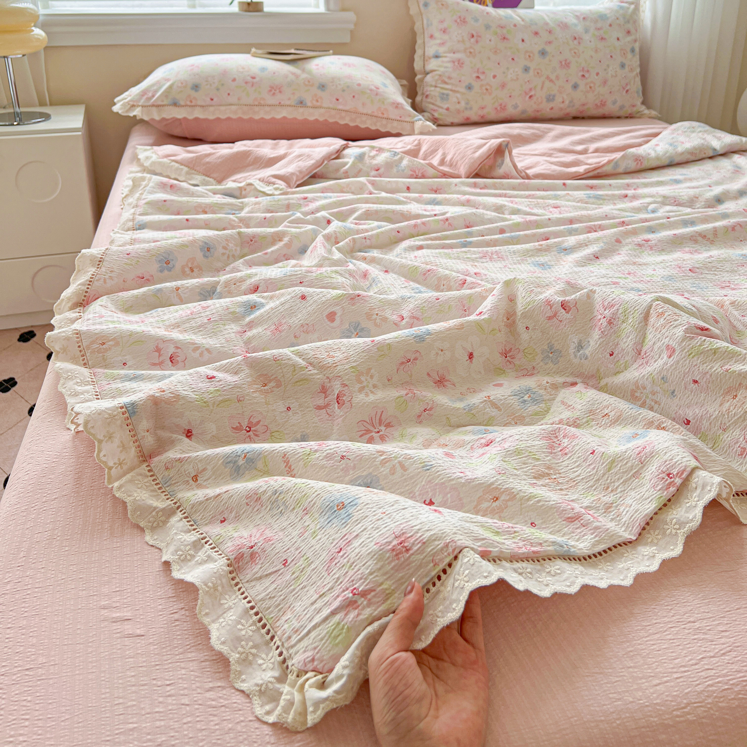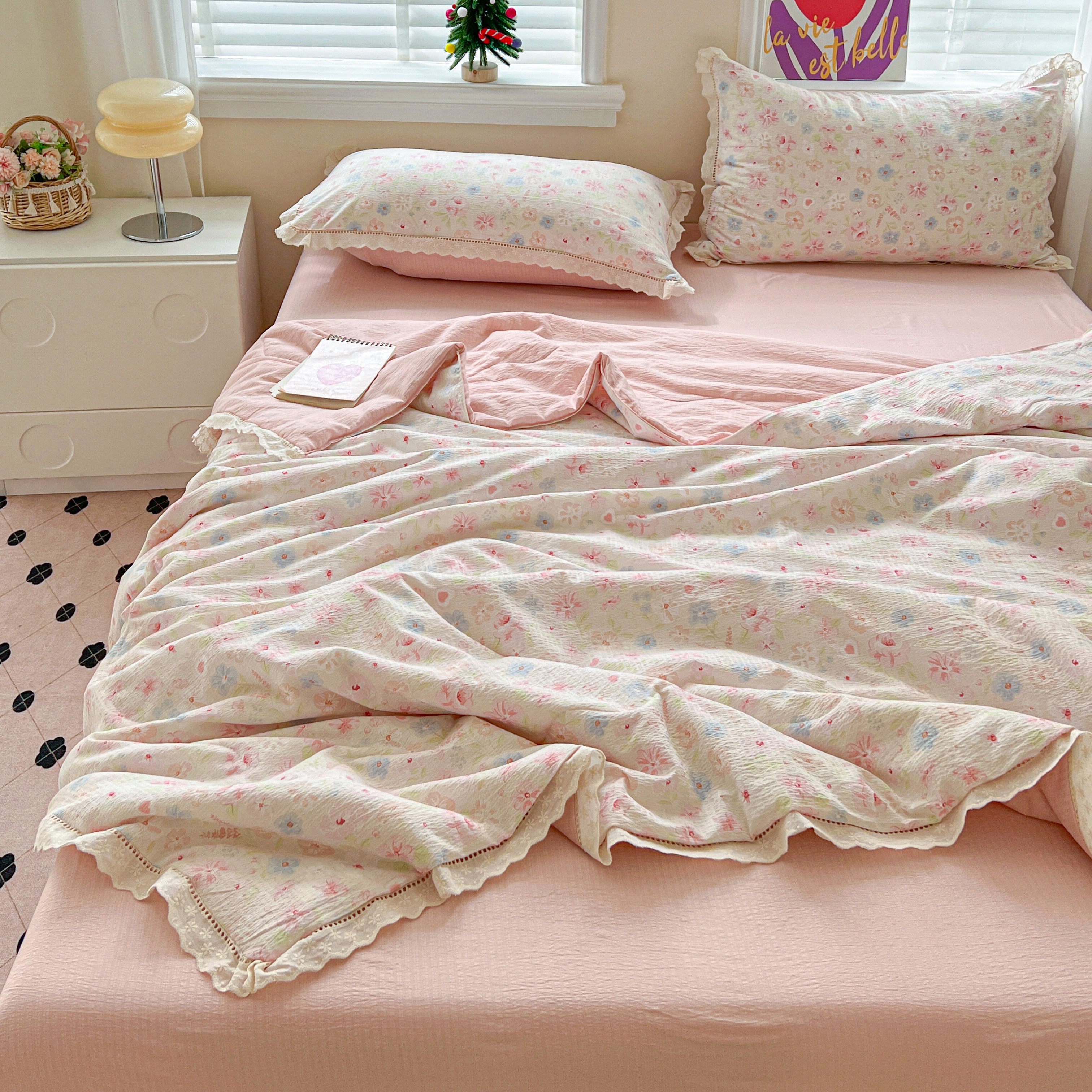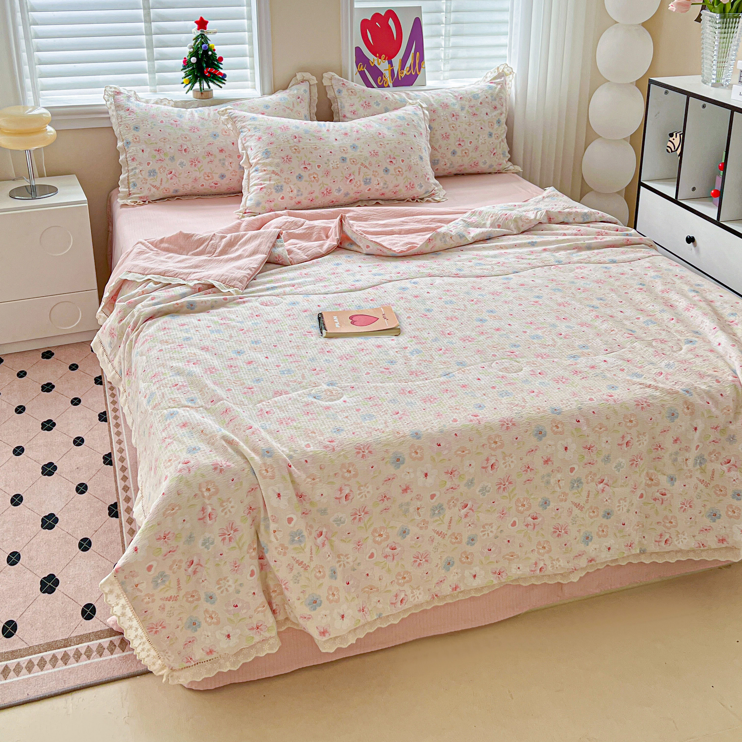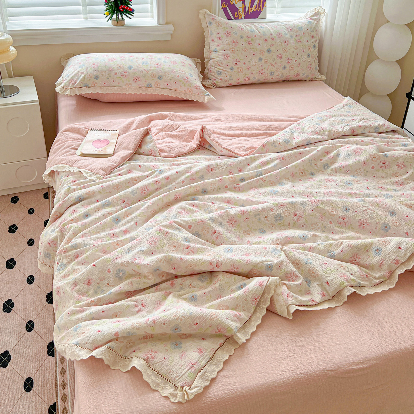 2025新款云感皱皱纱全棉花边款夏被四件套 白月光
