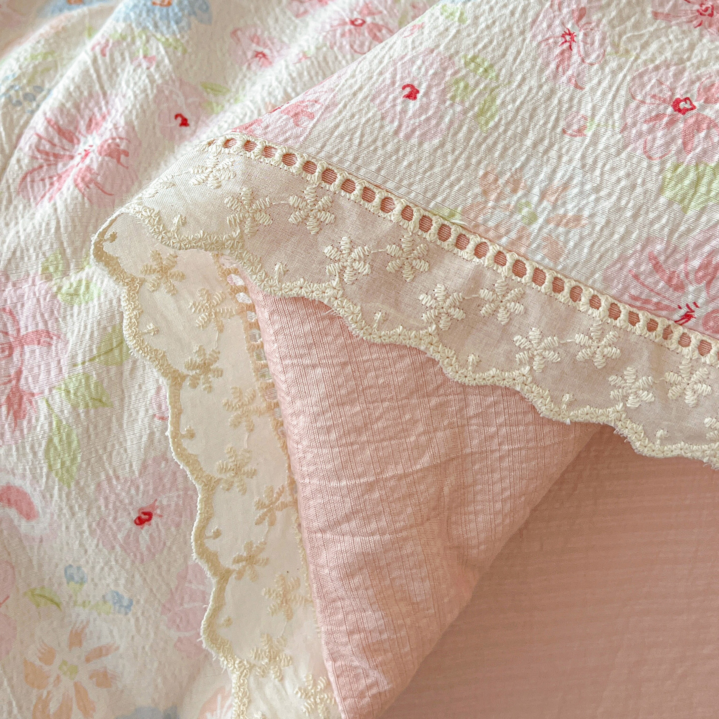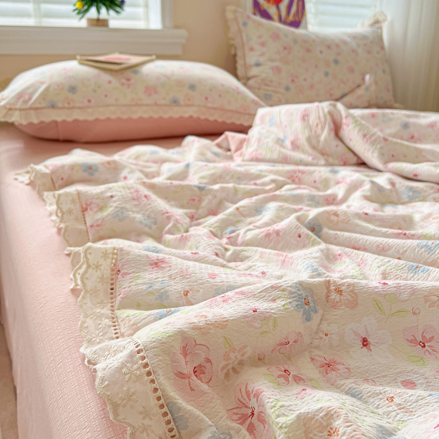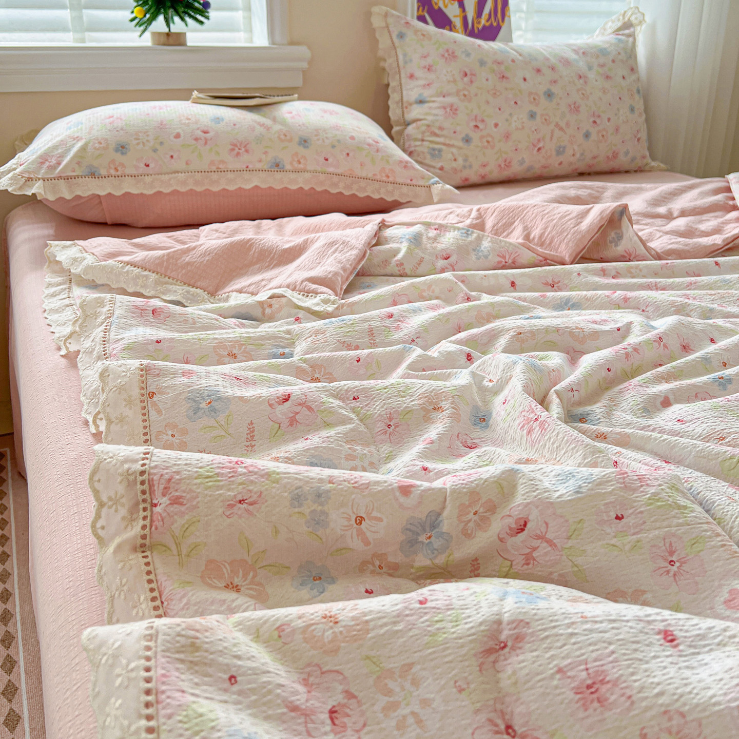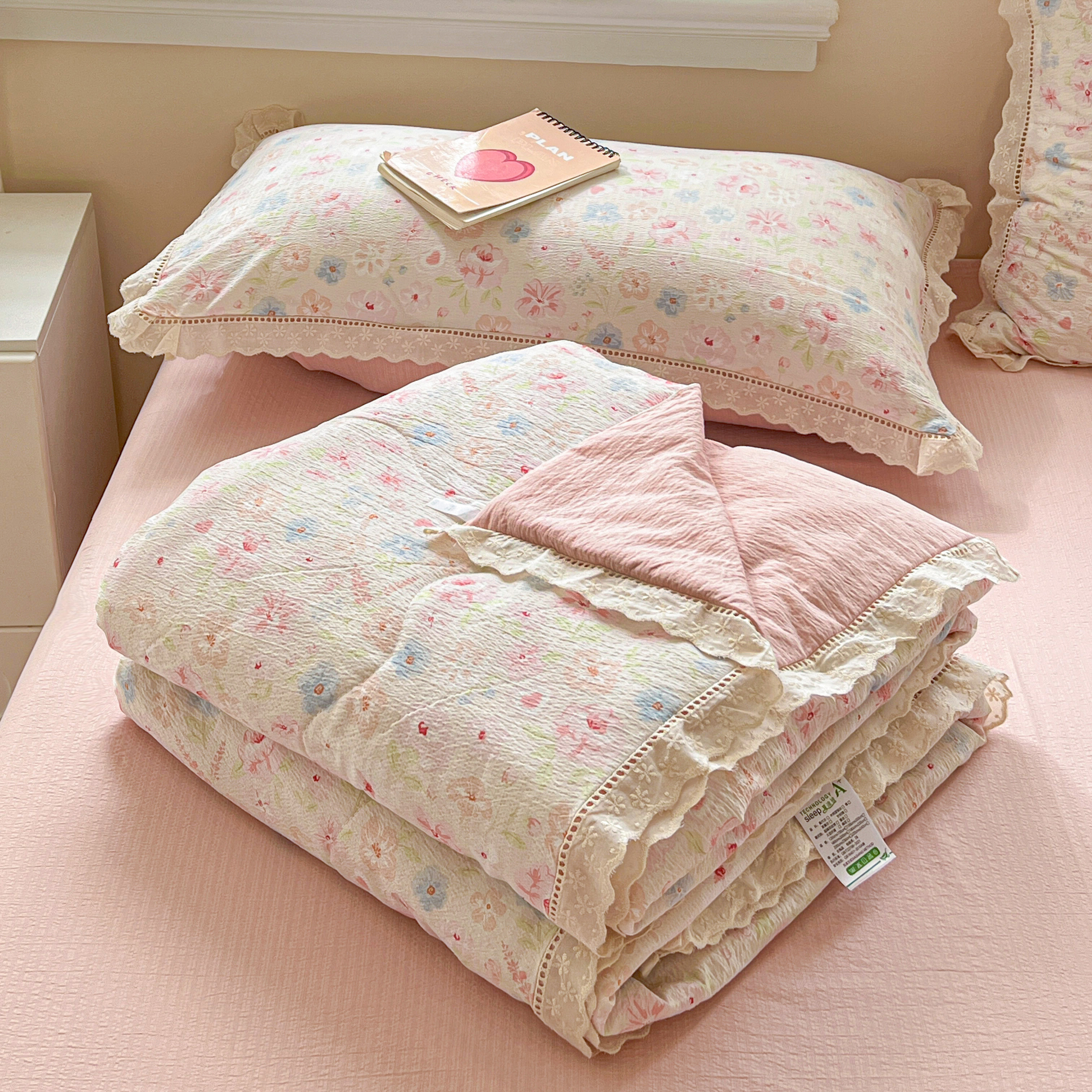 2025新款云感皱皱纱全棉花边款夏被四件套 白月光