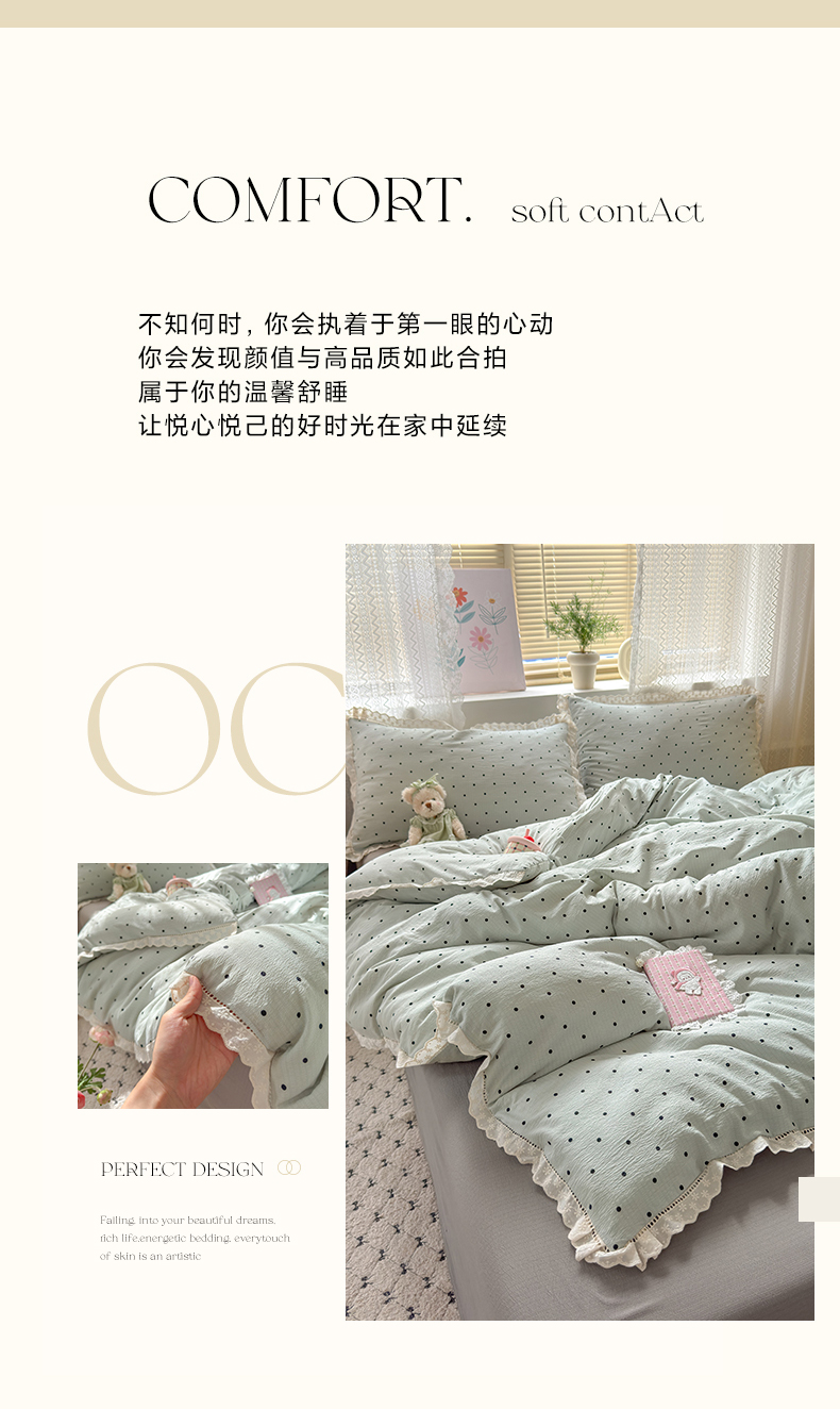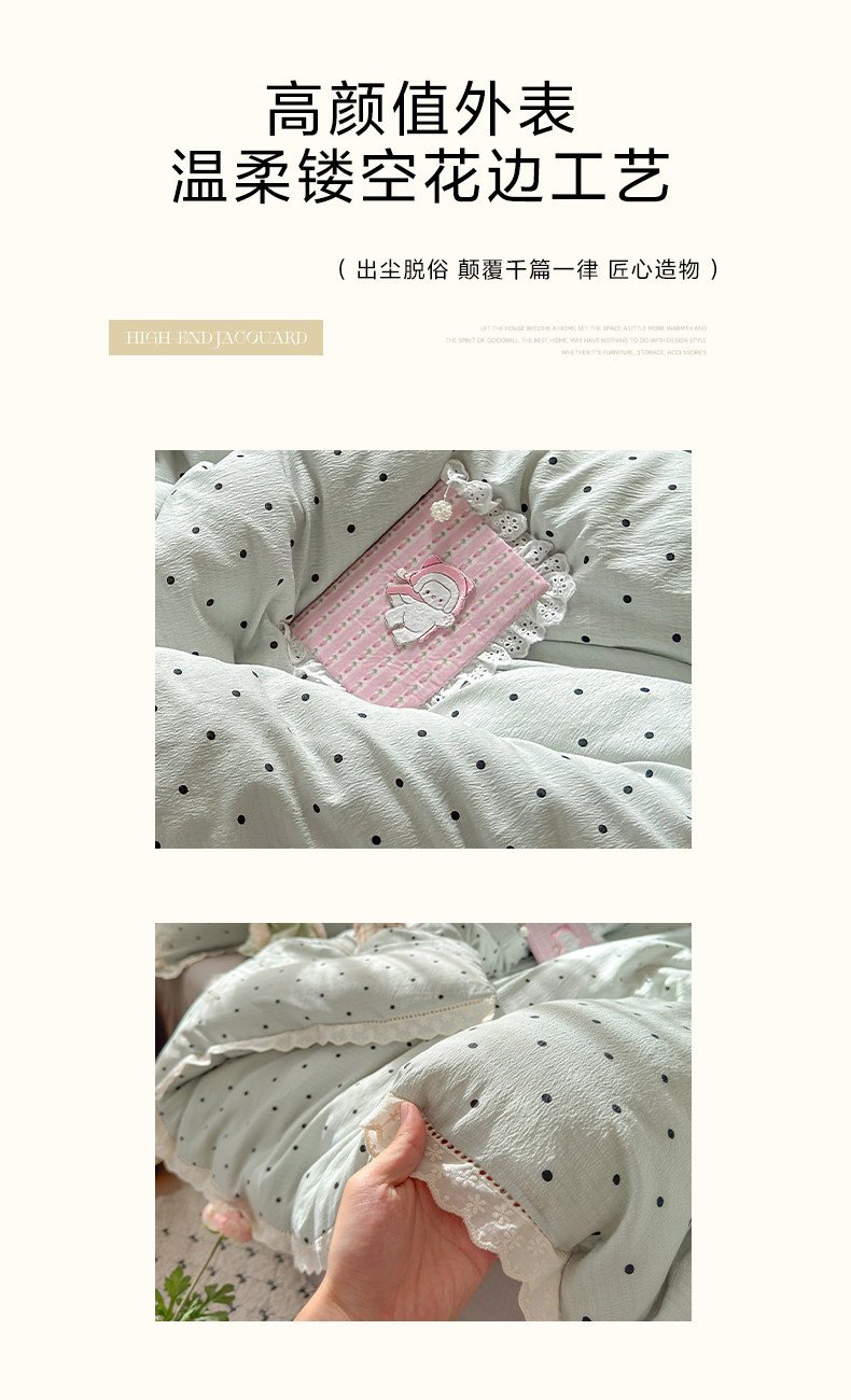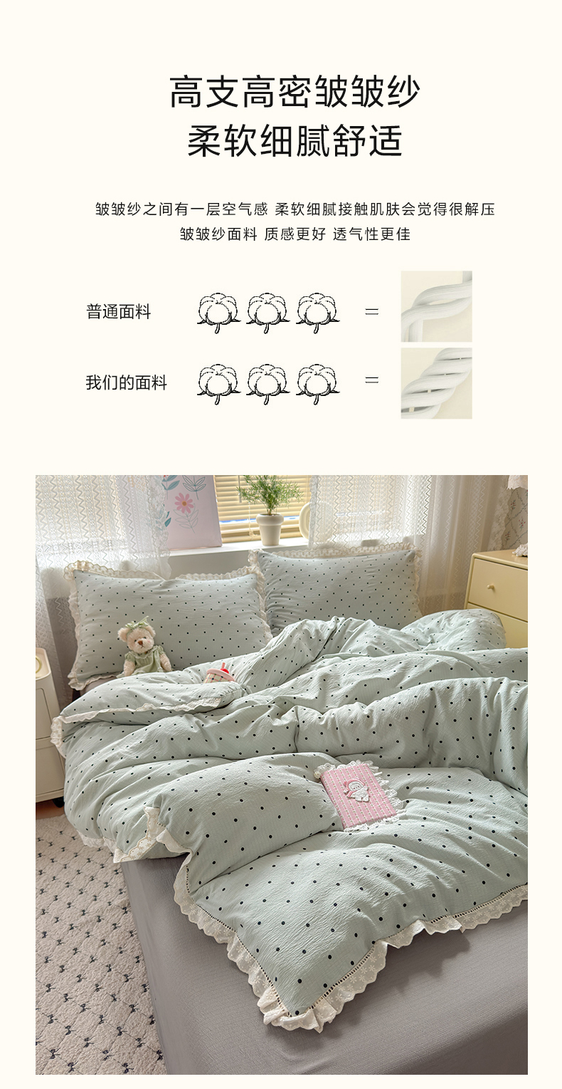 当前位置: 91家纺网 > 商品网购 > 床品套件 > 四件套 > 其它四件套 > 喜颜 2025新款爆款云感提花皱皱纱全棉镂空花边四件套学生宿舍三件套 镂空花边-波点蓝