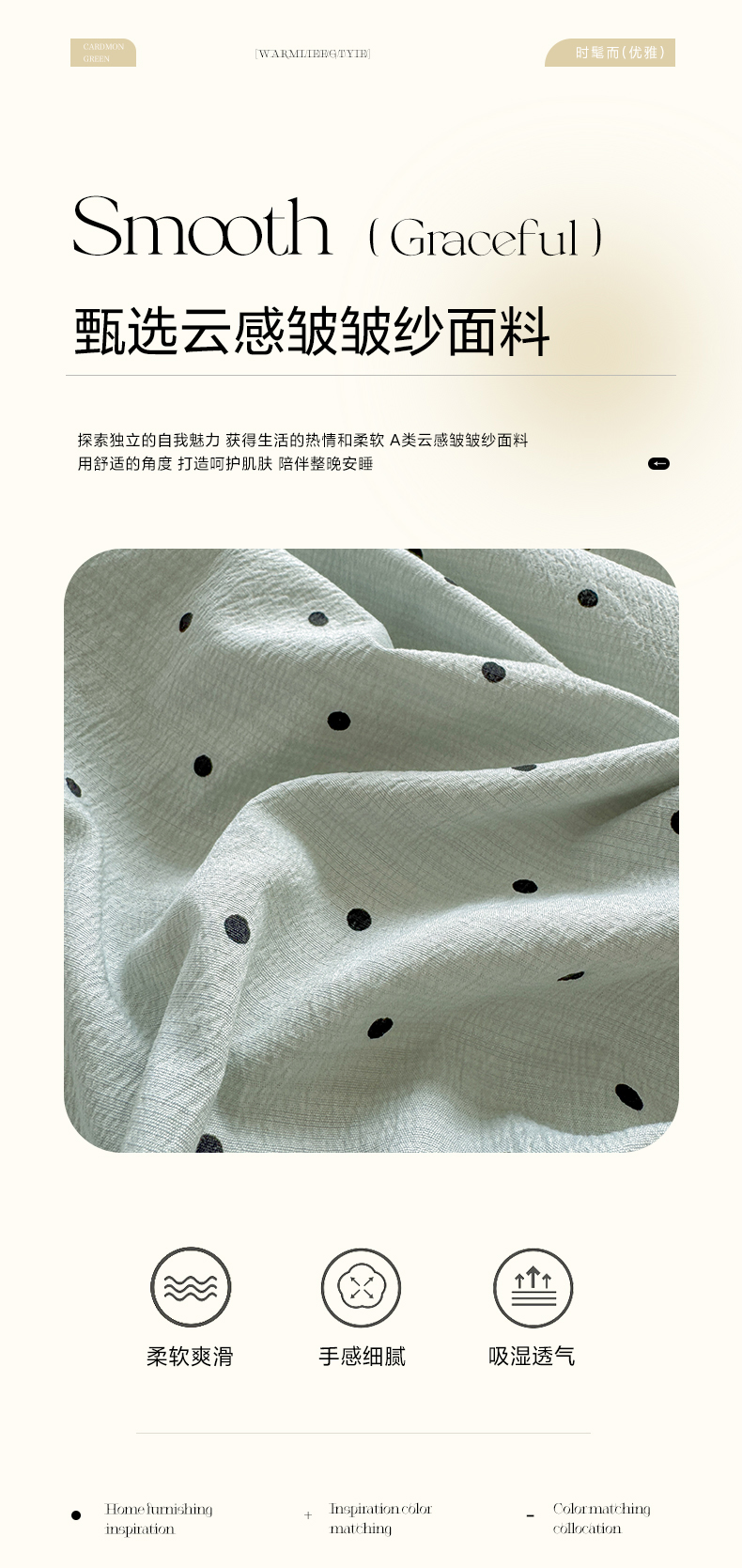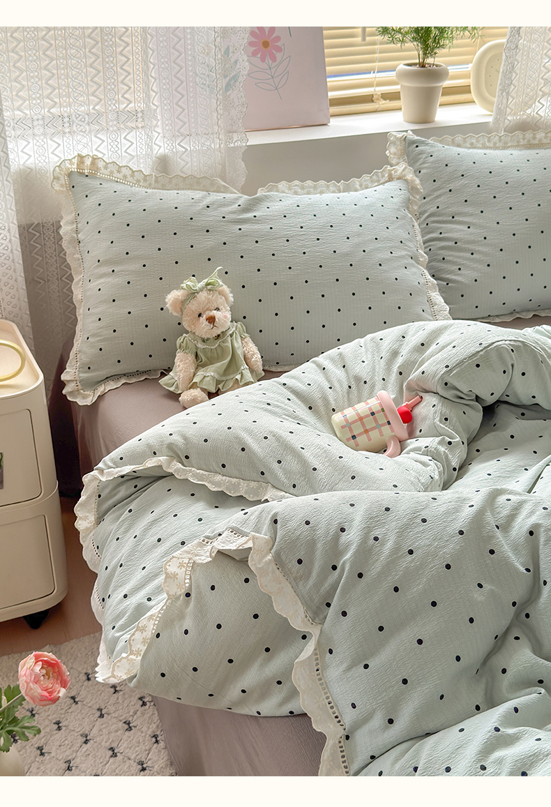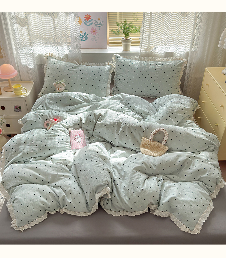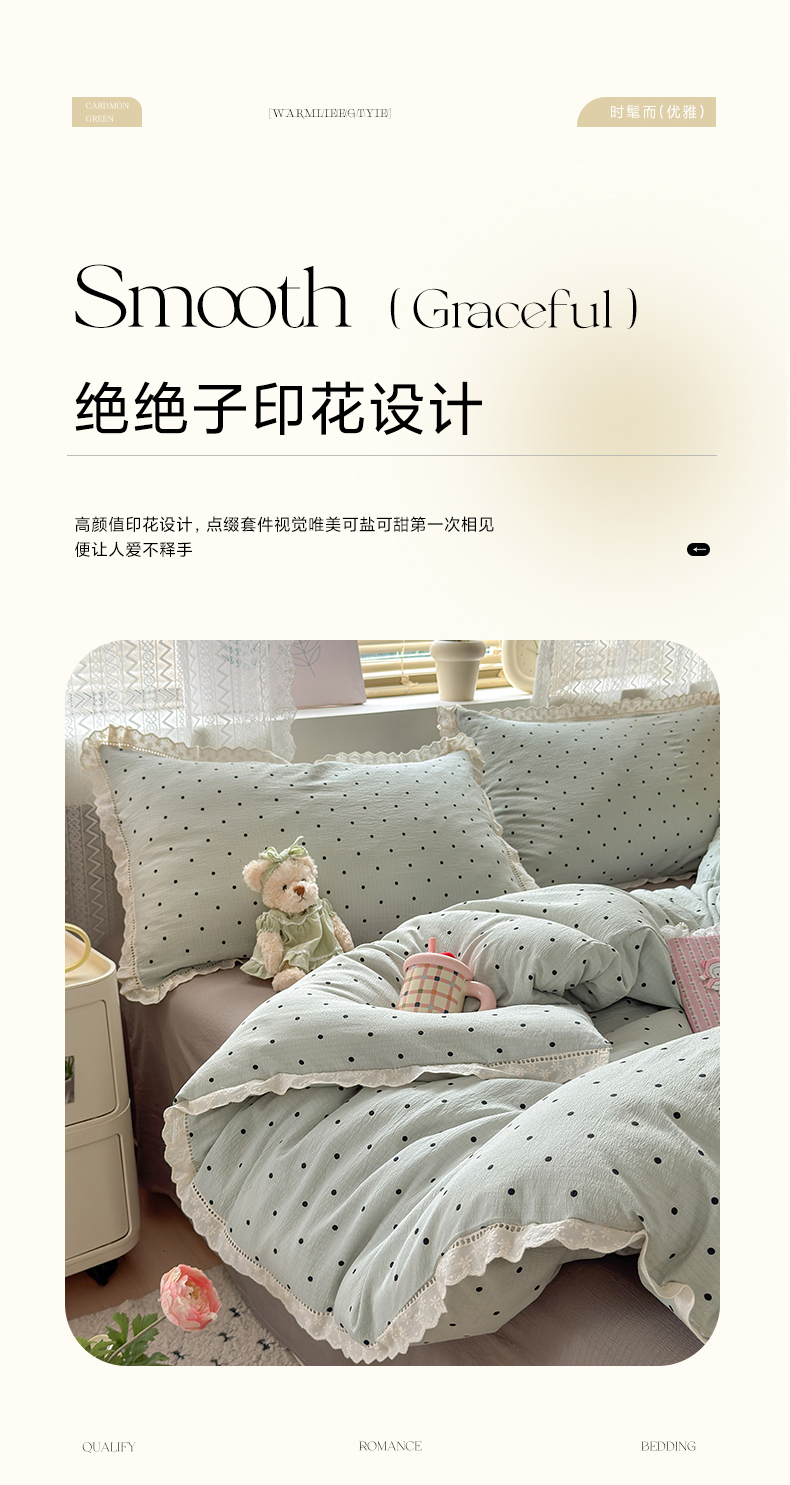 当前位置: 91家纺网 > 商品网购 > 床品套件 > 四件套 > 其它四件套 > 喜颜 2025新款爆款云感提花皱皱纱全棉镂空花边四件套学生宿舍三件套 镂空花边-波点蓝