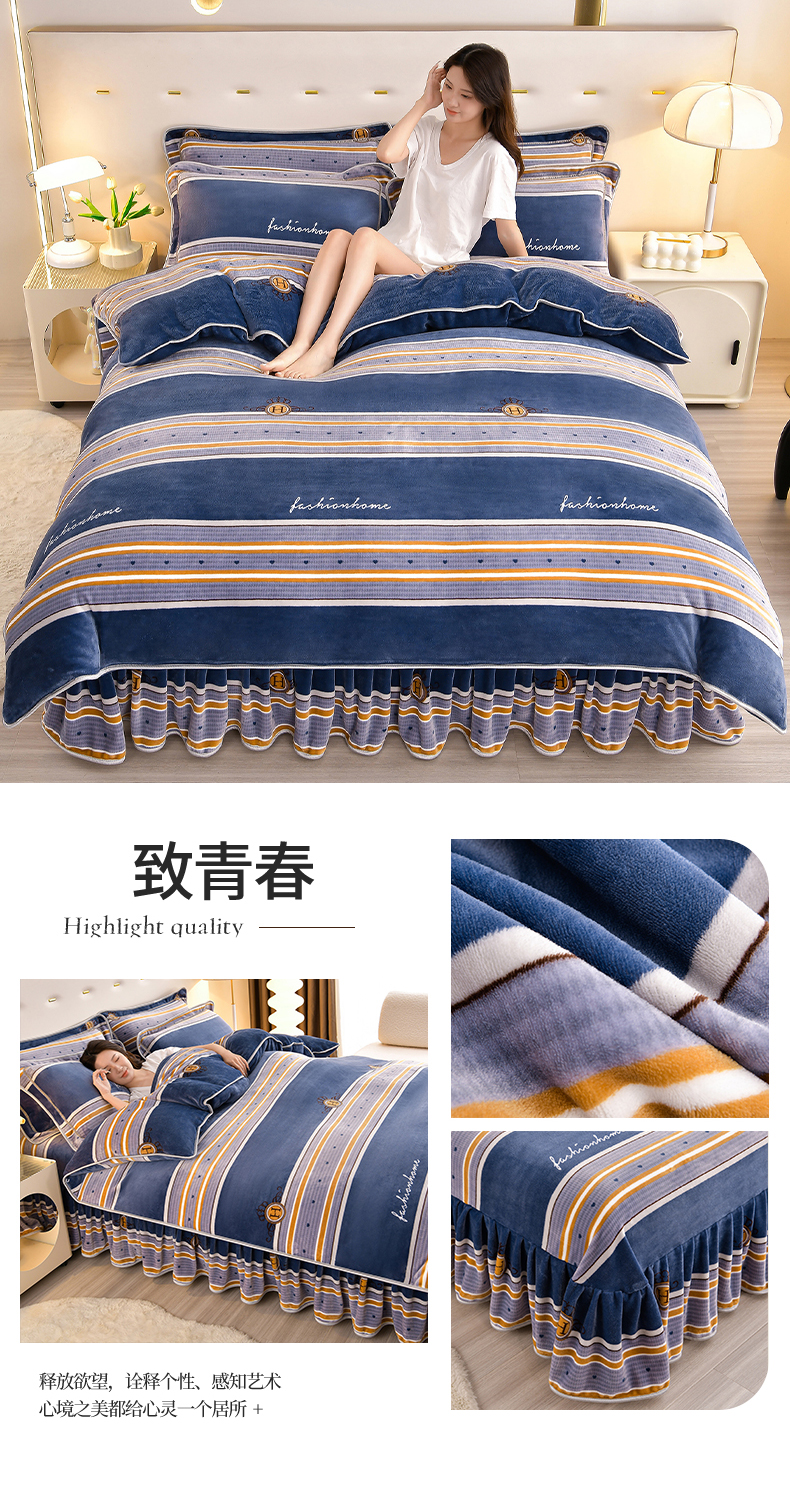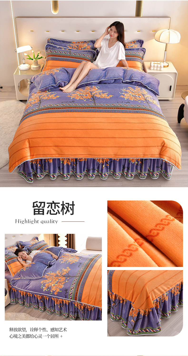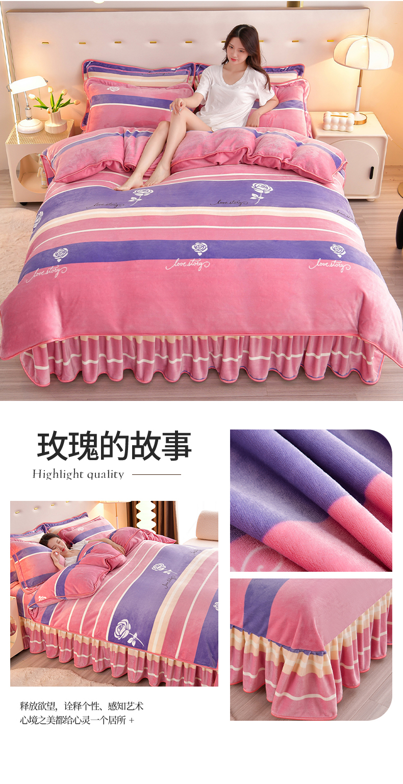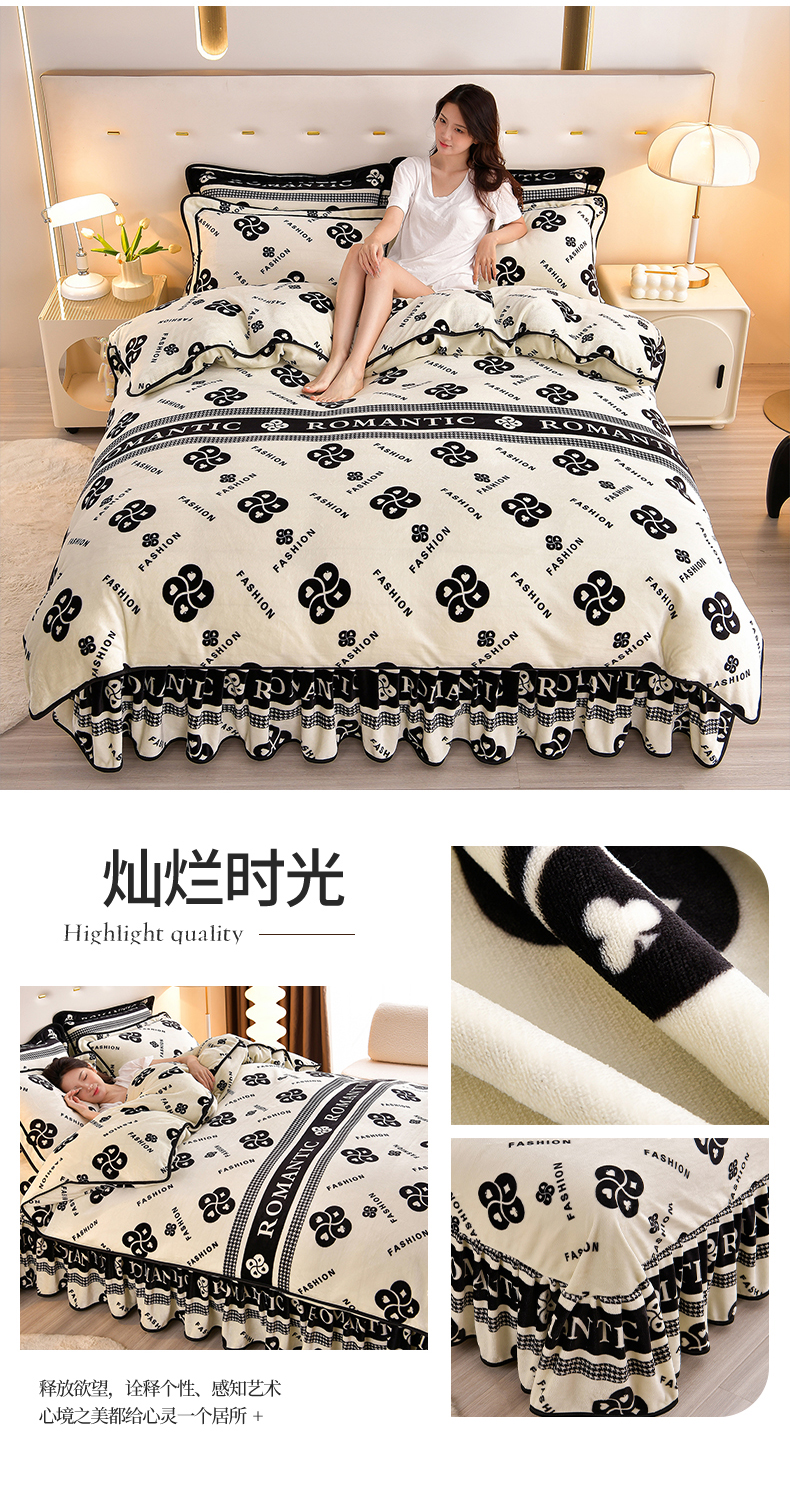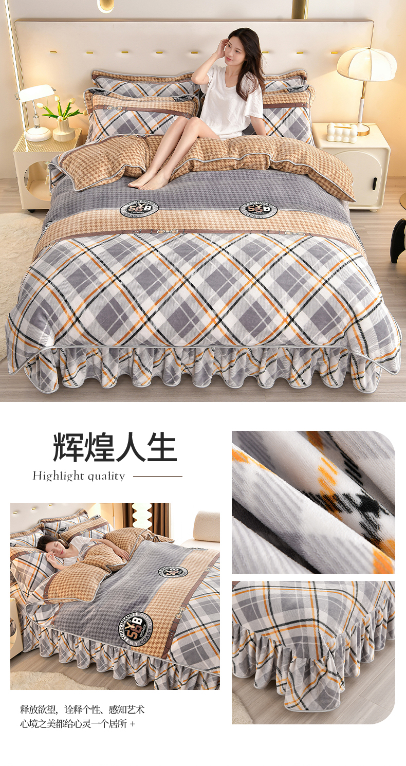 缘莉娜家纺 2025高克重8斤牛奶绒四件套金貂绒法莱绒加厚保暖直播电商爆款 致青春