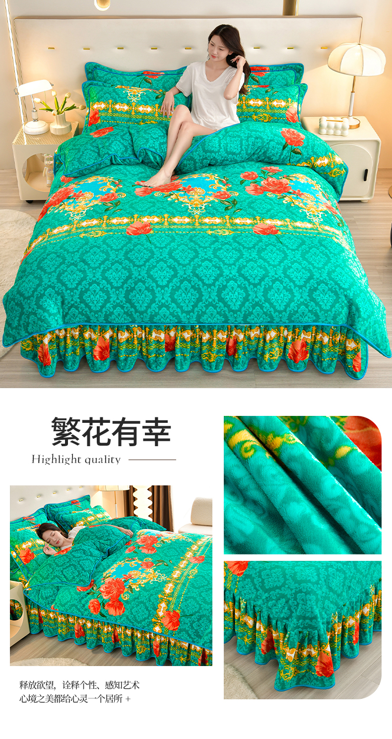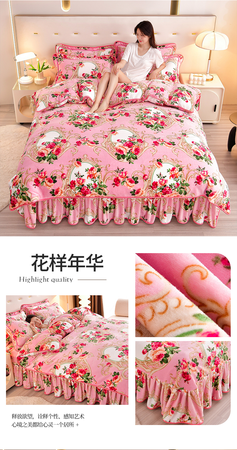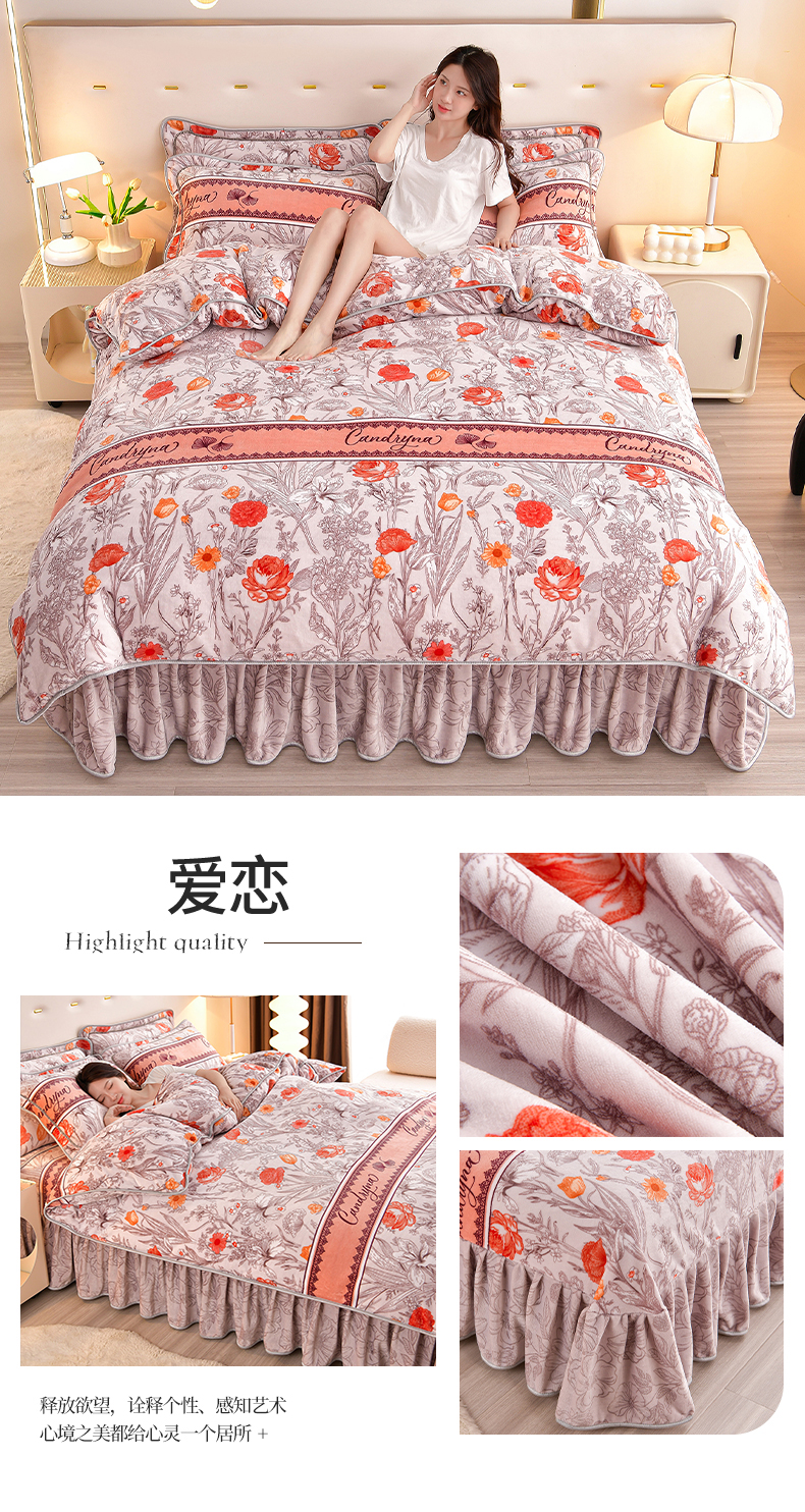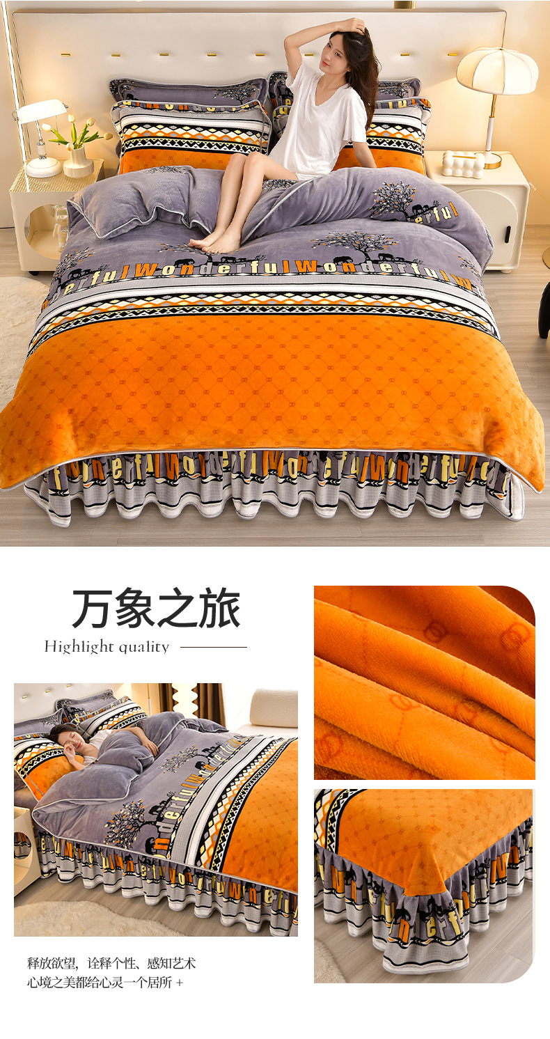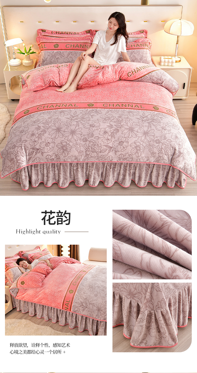 缘莉娜家纺 2025高克重8斤牛奶绒四件套金貂绒法莱绒加厚保暖直播电商爆款 致青春