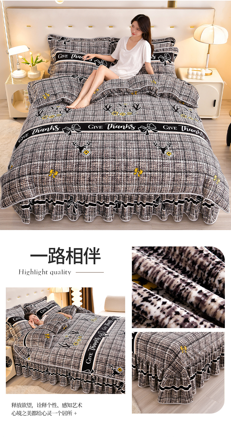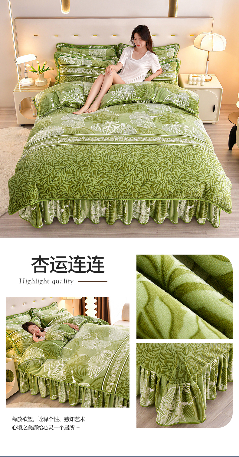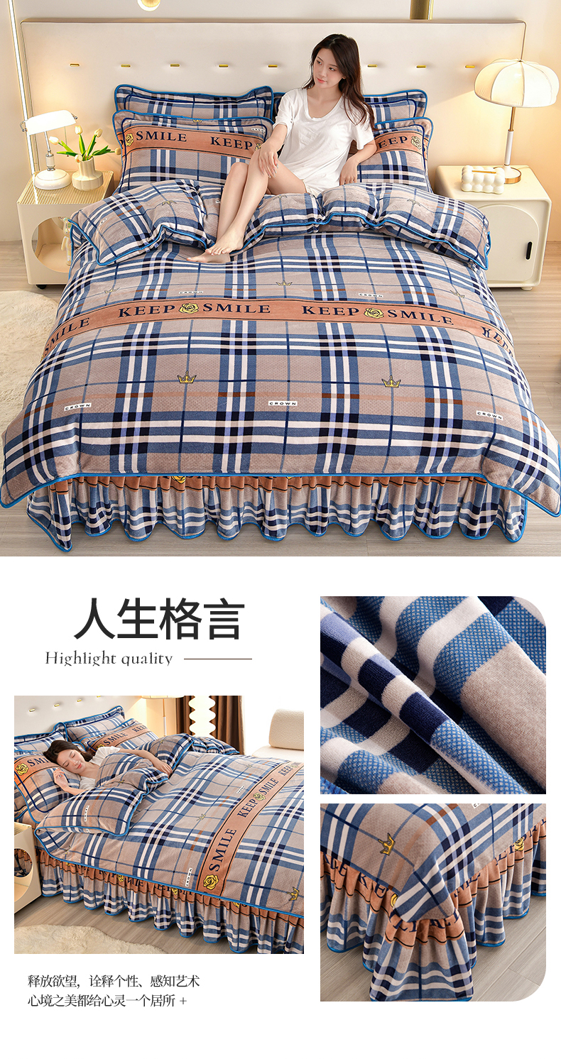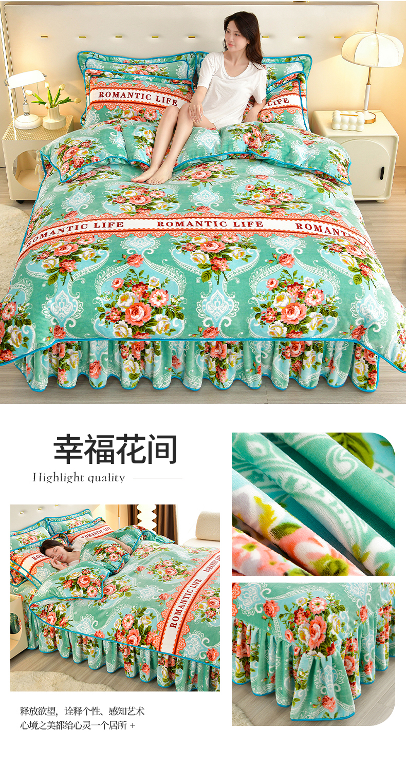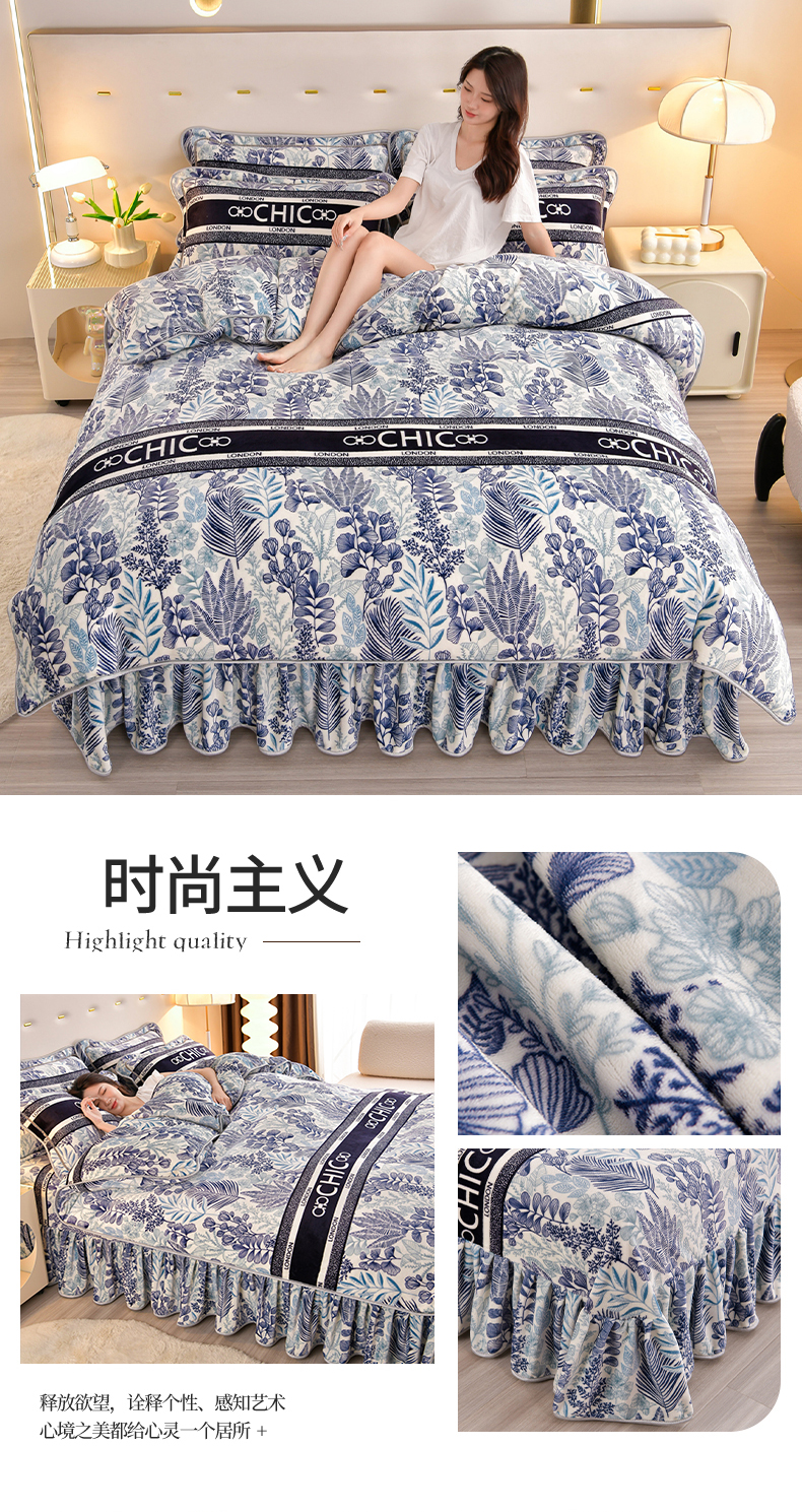缘莉娜家纺 2025高克重8斤牛奶绒四件套金貂绒法莱绒加厚保暖直播电商爆款 致青春