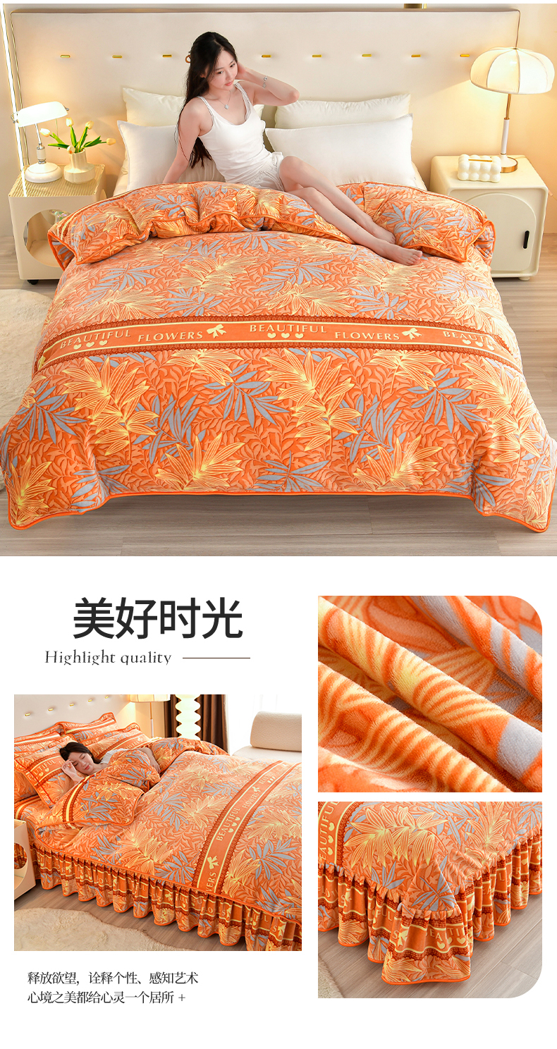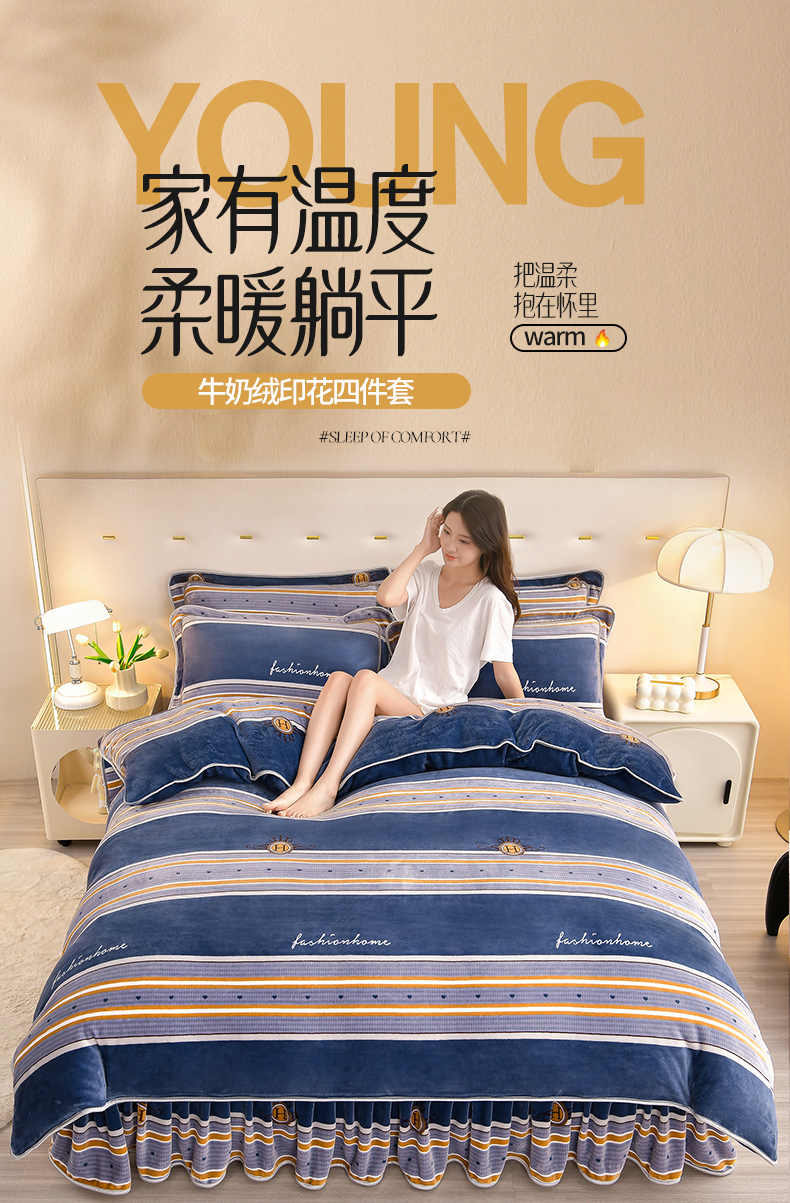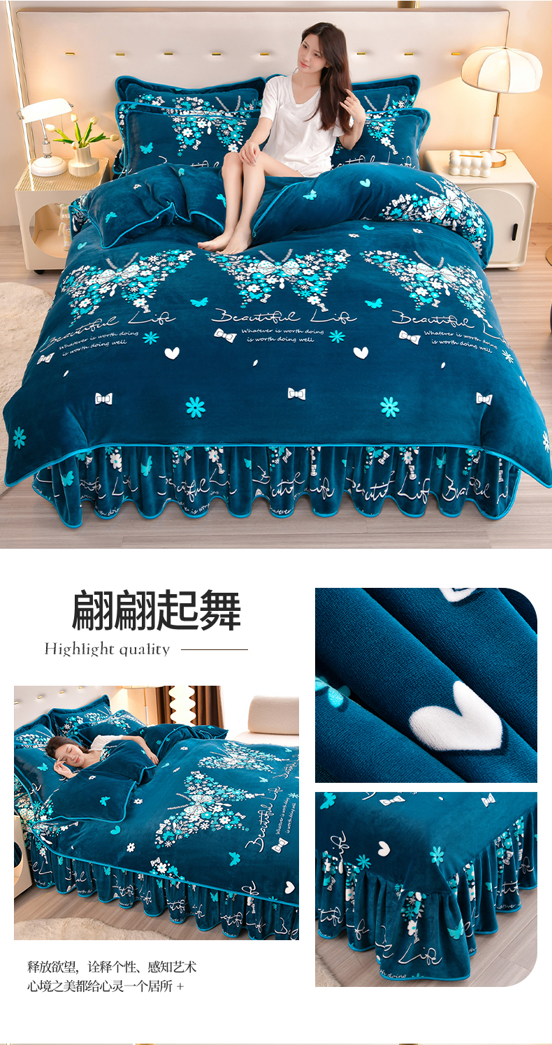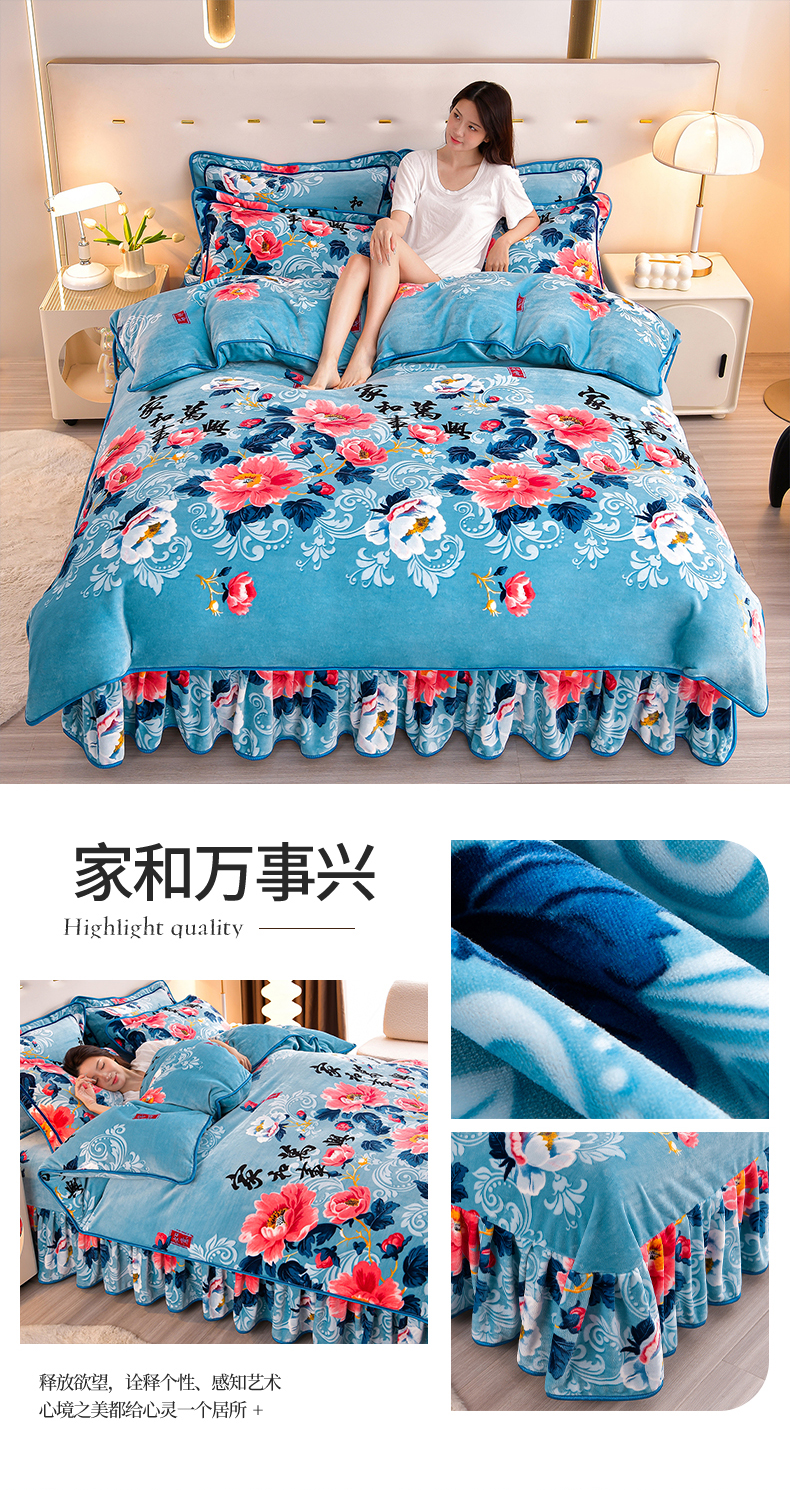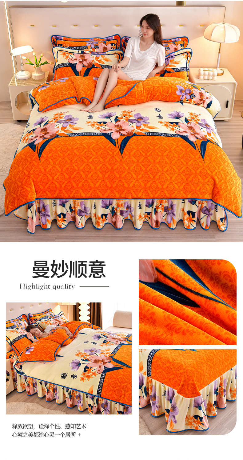 缘莉娜家纺 2025高克重8斤牛奶绒四件套金貂绒法莱绒加厚保暖直播电商爆款 致青春