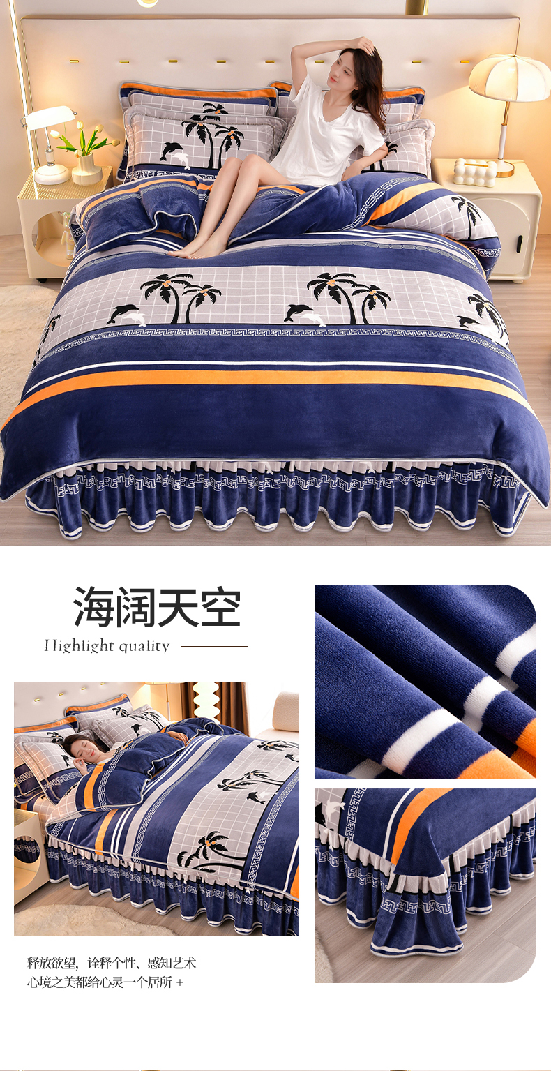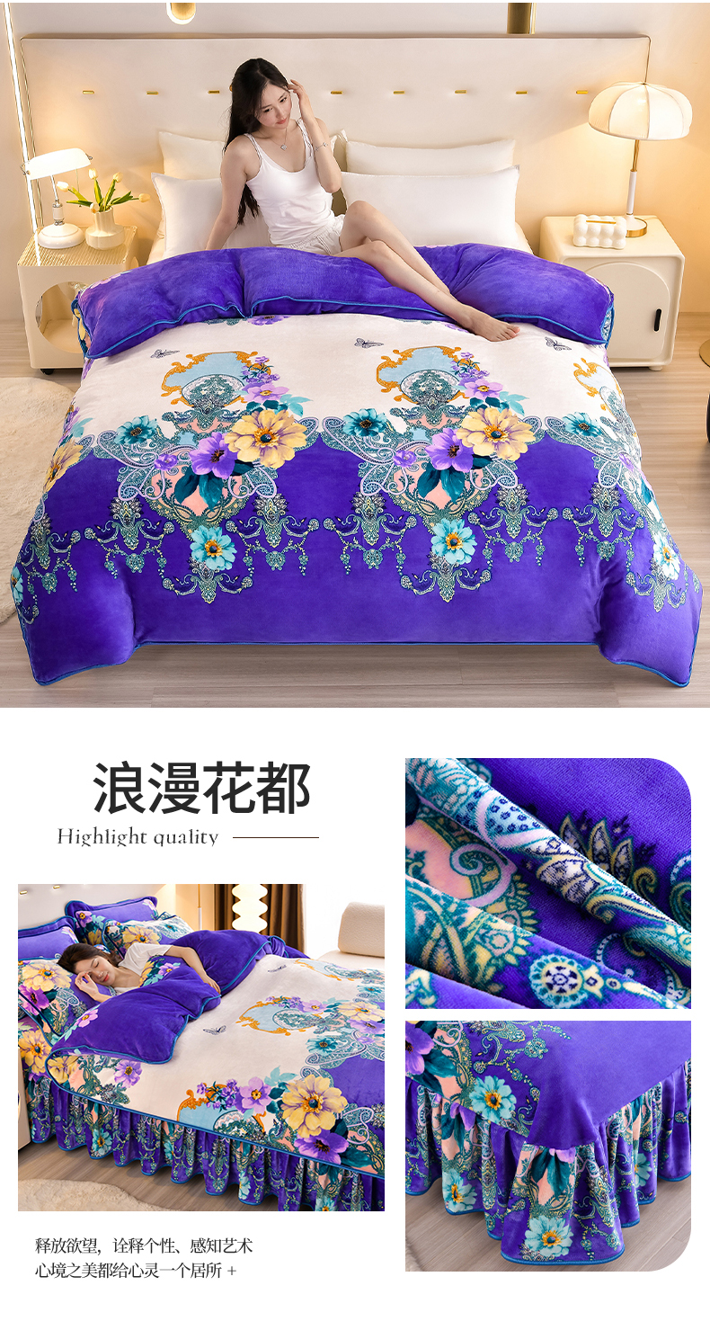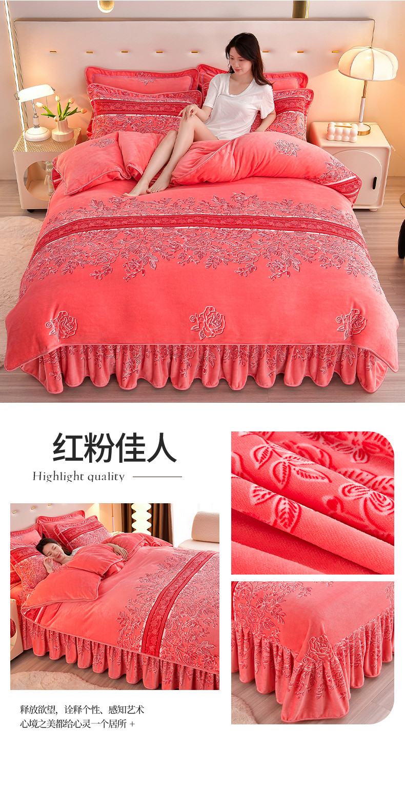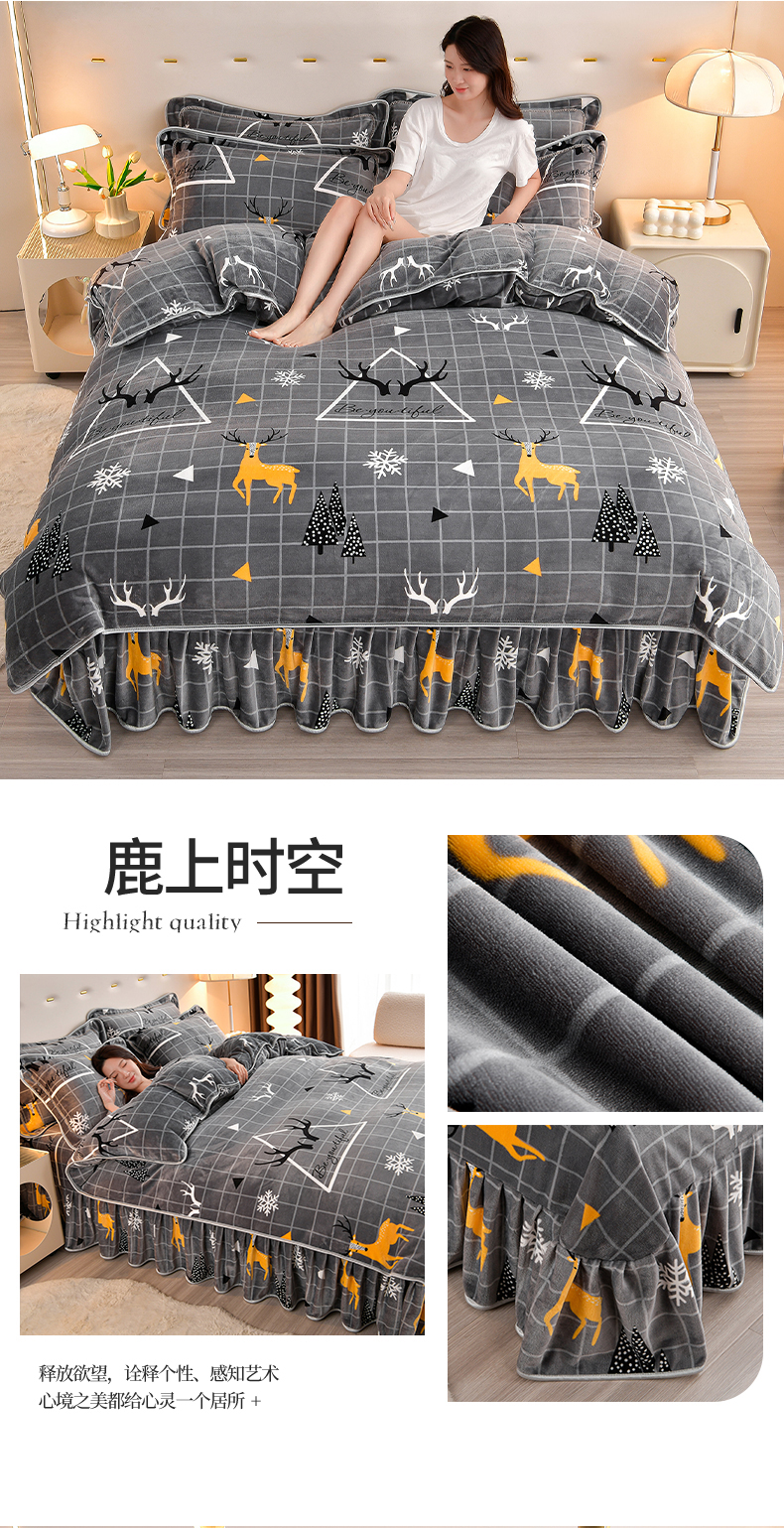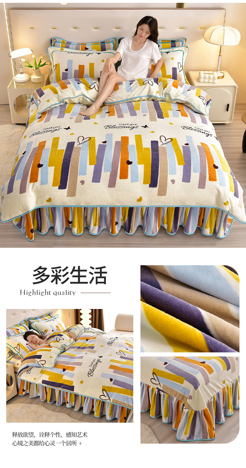 缘莉娜家纺 2025高克重8斤牛奶绒四件套金貂绒法莱绒加厚保暖直播电商爆款 致青春