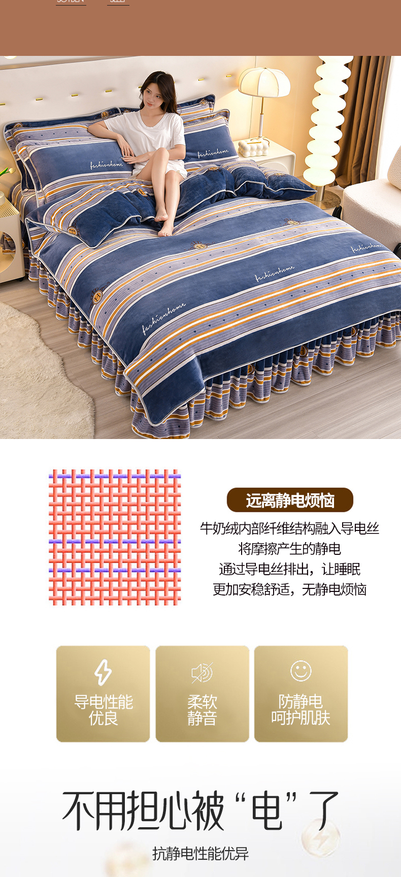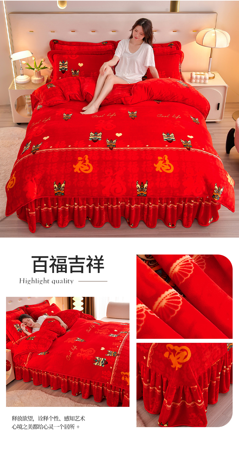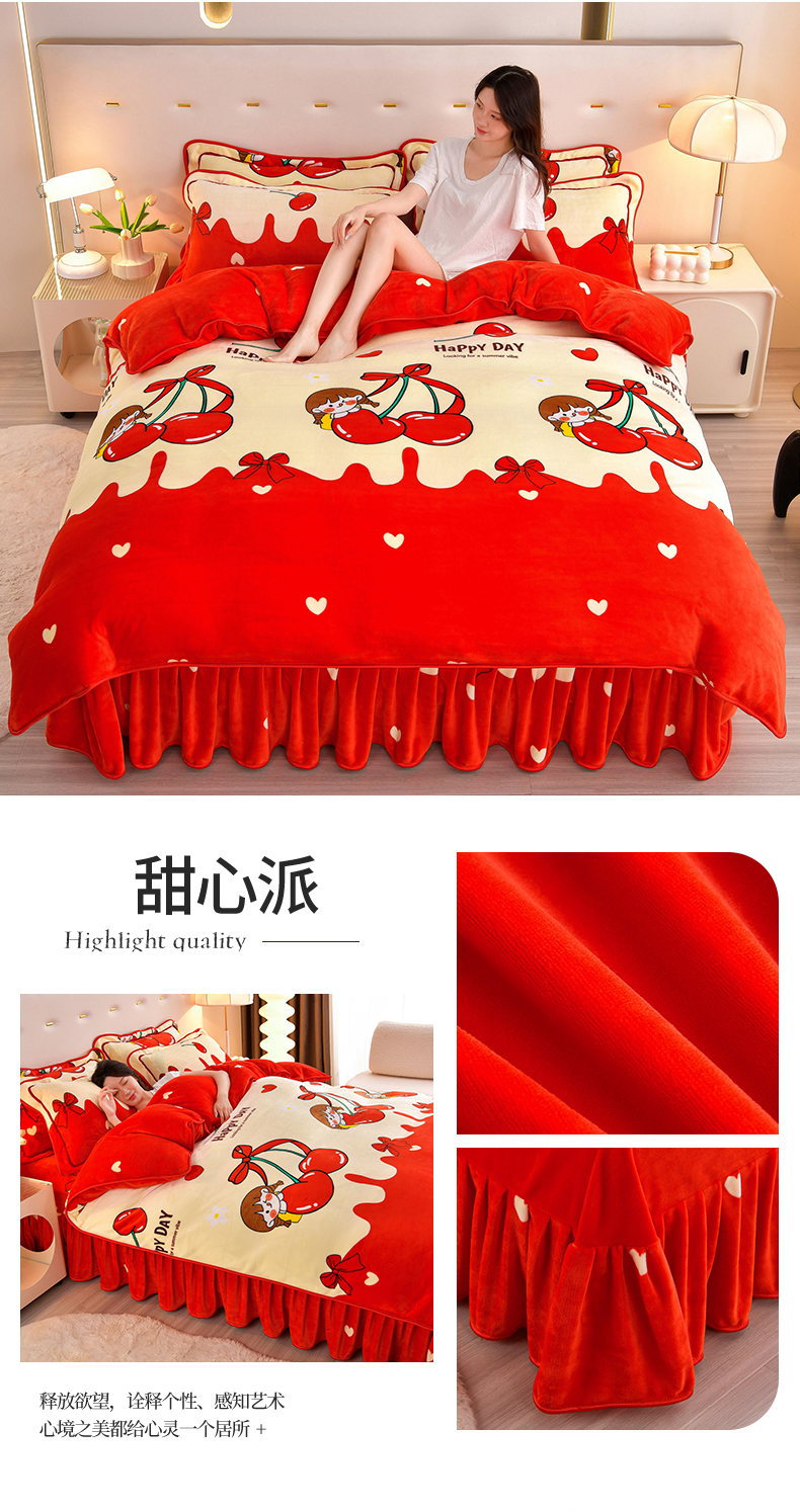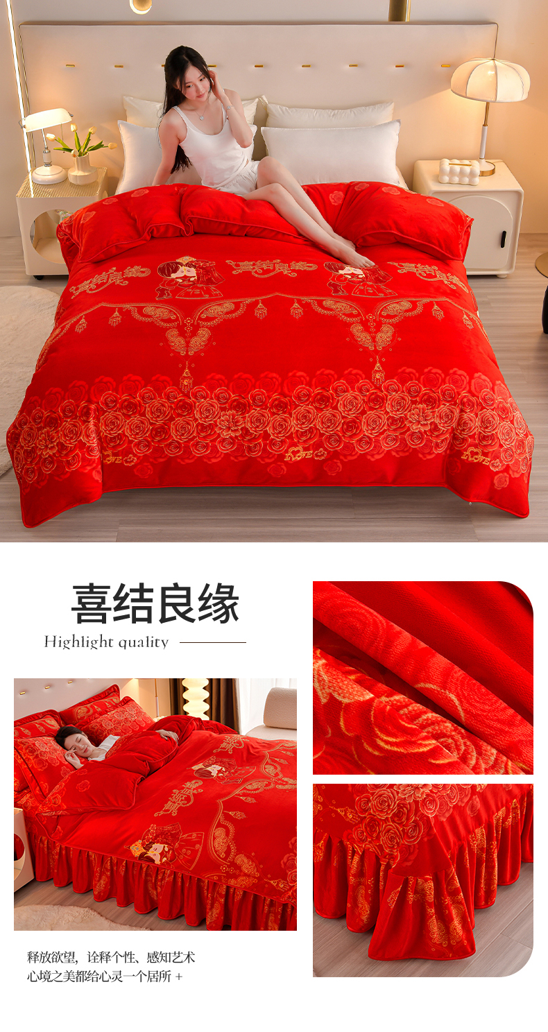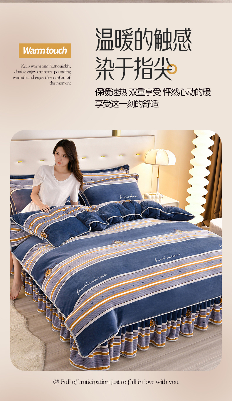 缘莉娜家纺 2025高克重8斤牛奶绒四件套金貂绒法莱绒加厚保暖直播电商爆款 致青春