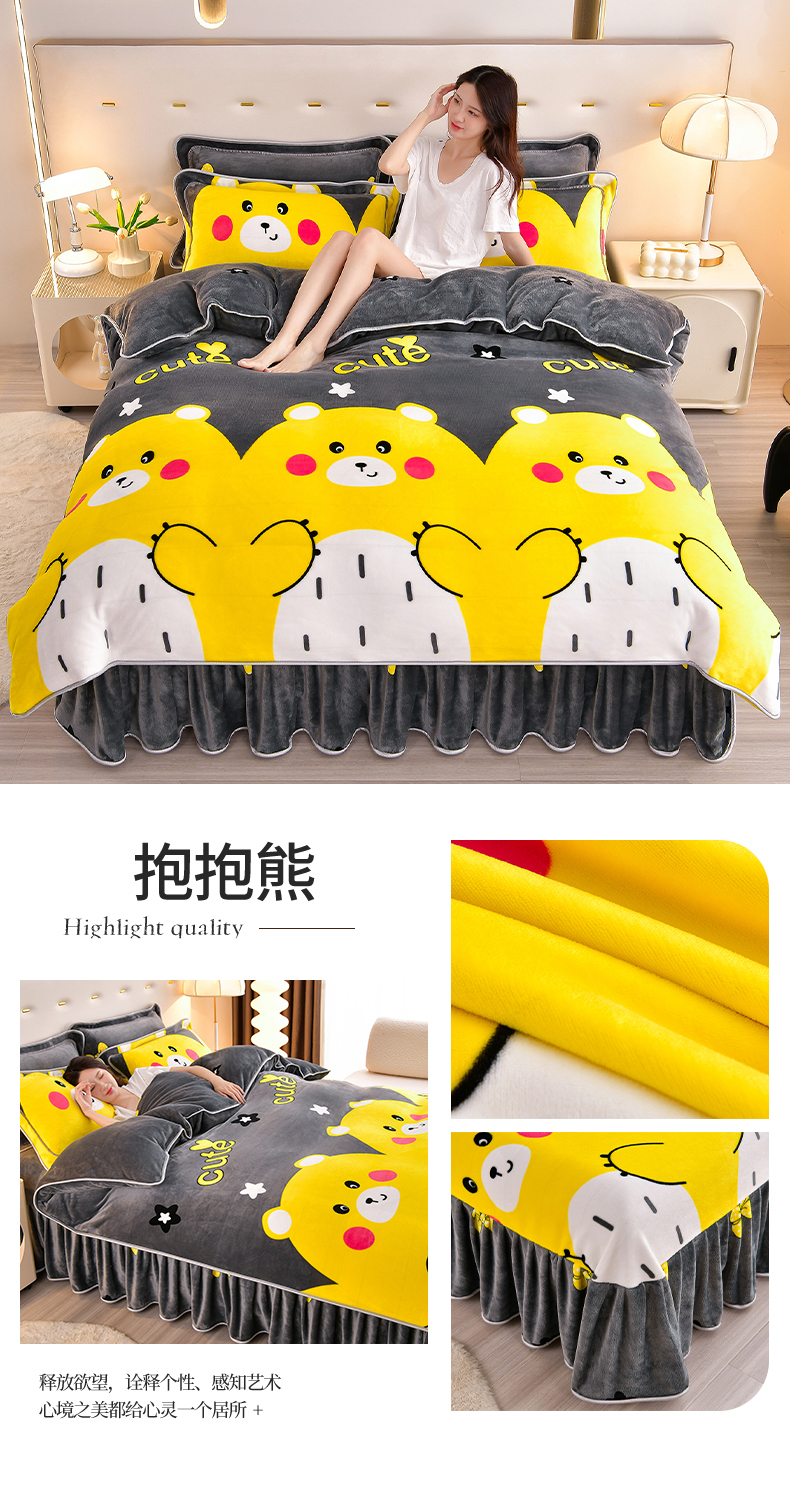 缘莉娜家纺 2025高克重8斤牛奶绒四件套金貂绒法莱绒加厚保暖直播电商爆款 抱抱熊,抱抱熊