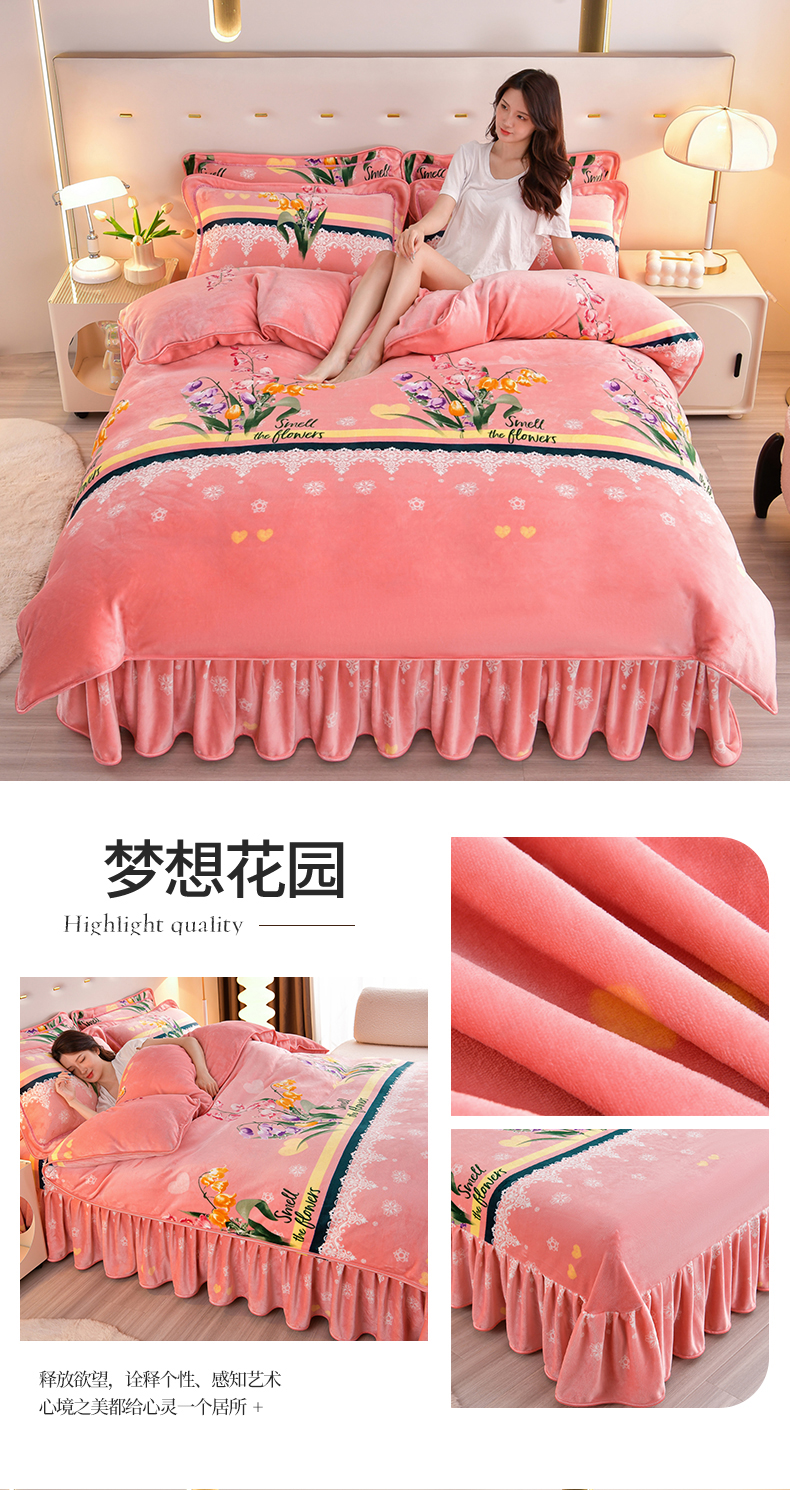 缘莉娜家纺 2025高克重8斤牛奶绒四件套金貂绒法莱绒加厚保暖直播电商爆款 梦想花园,梦想花园