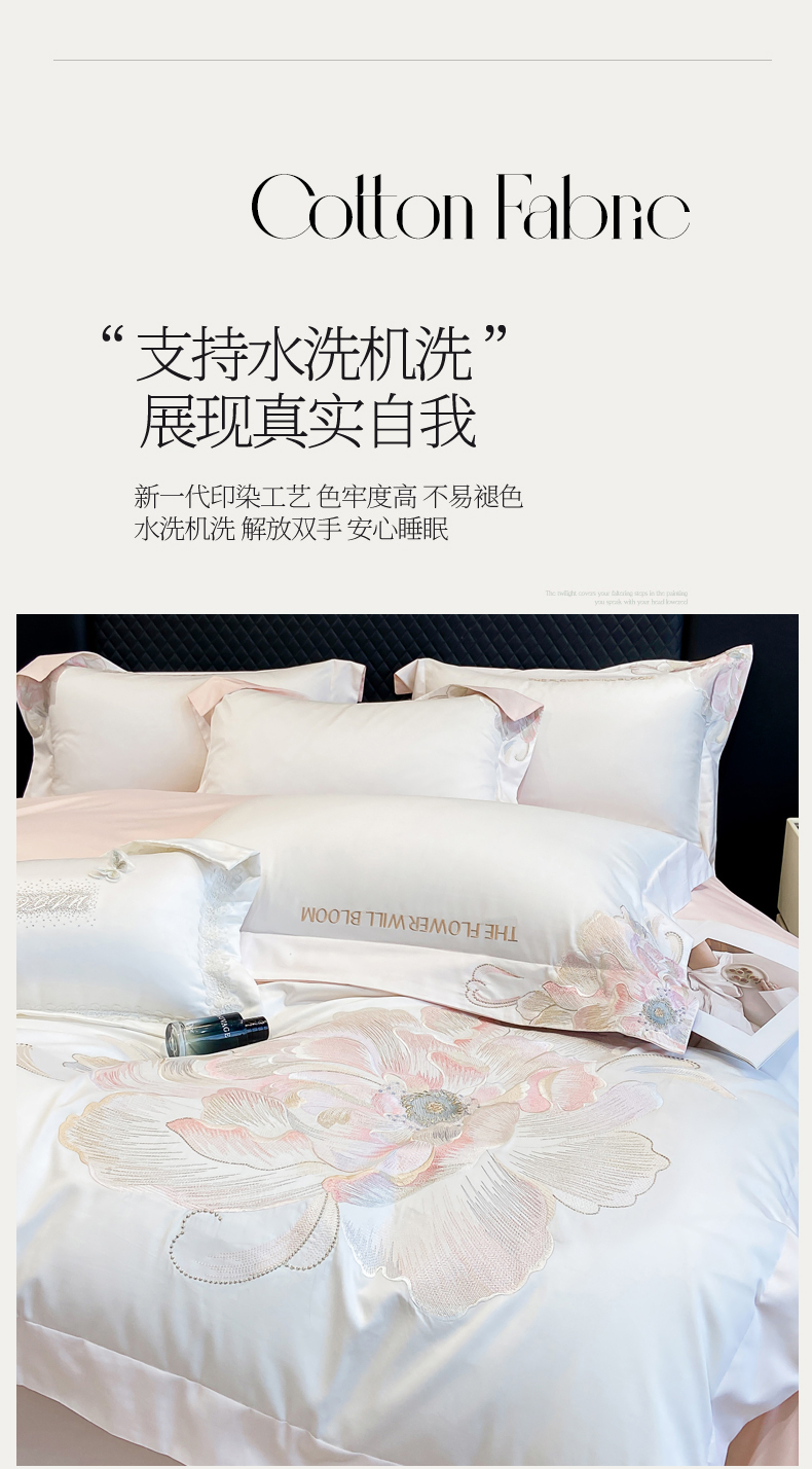 商品名称:(总)星蕴家纺 2025新款澳棉纯棉正宗长绒棉刺绣四件套-绽放