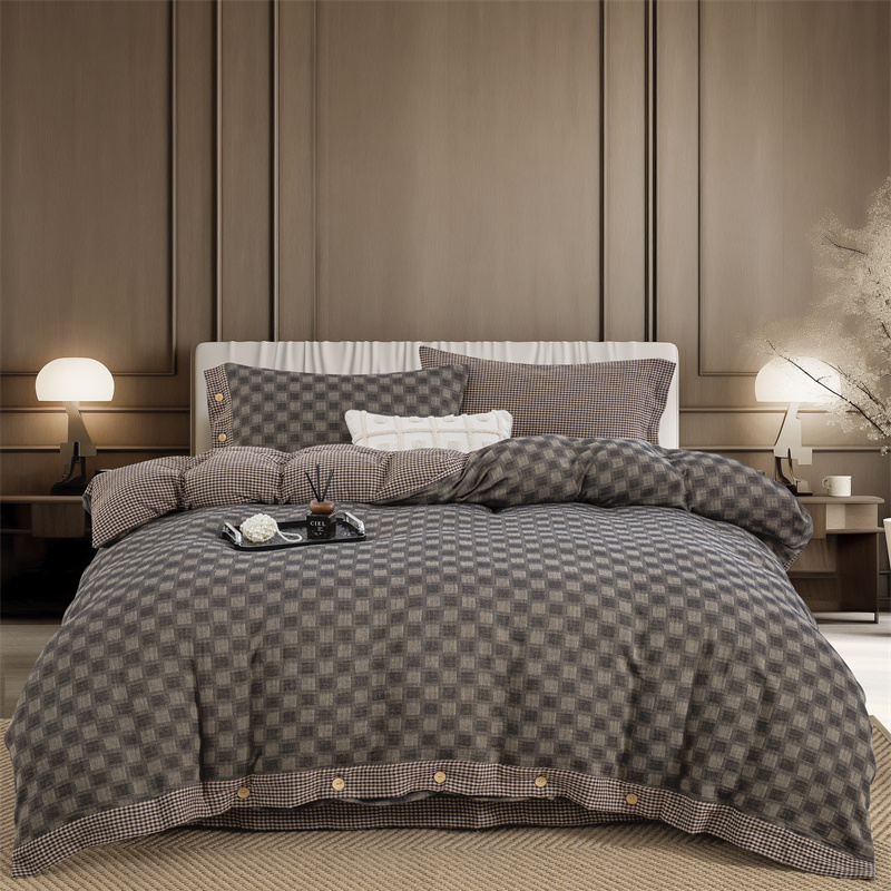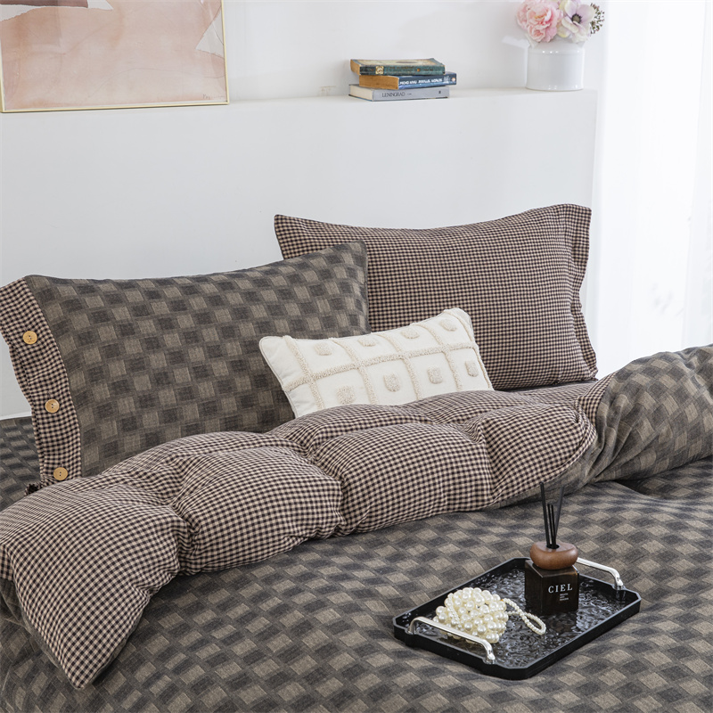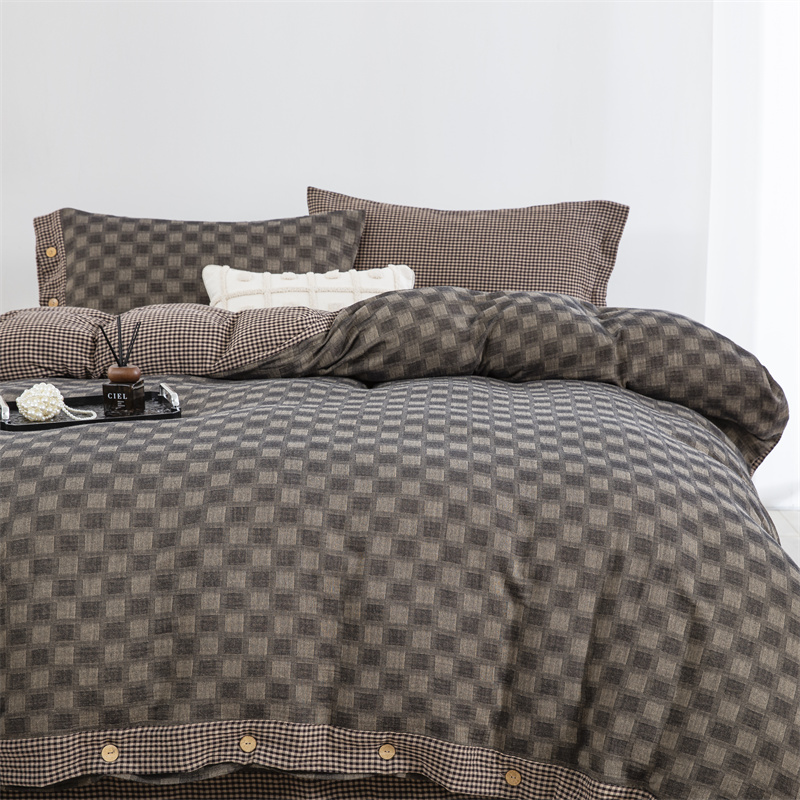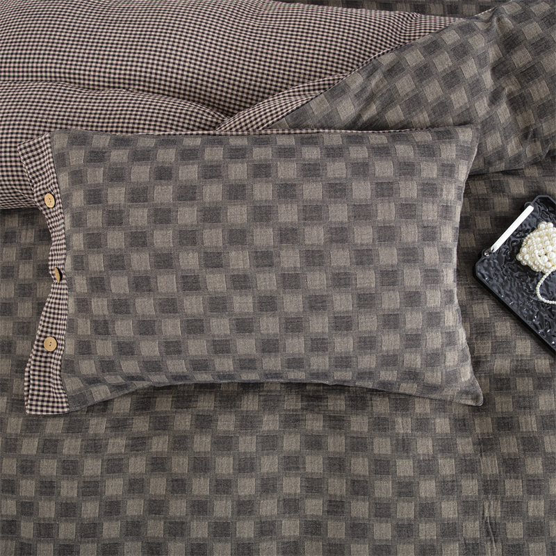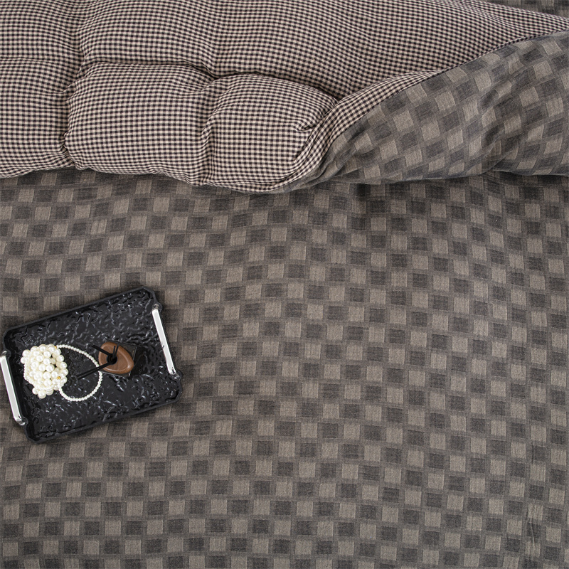 商品名称:双层纱家居 2025新款格子款双层纱四件套 朦胧格深灰