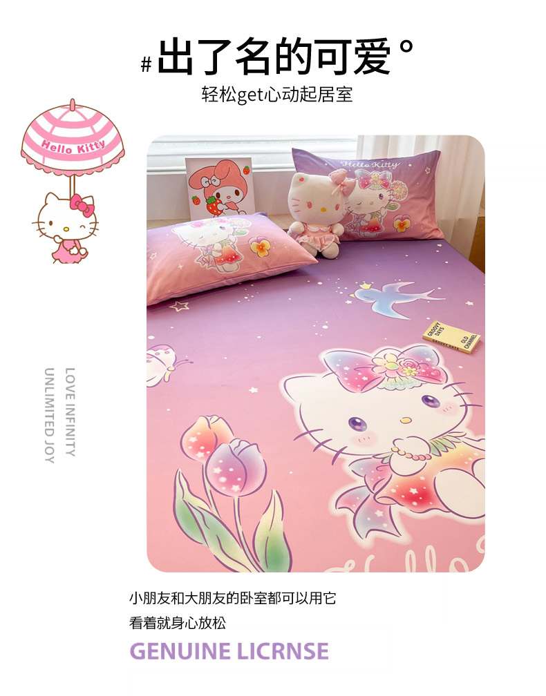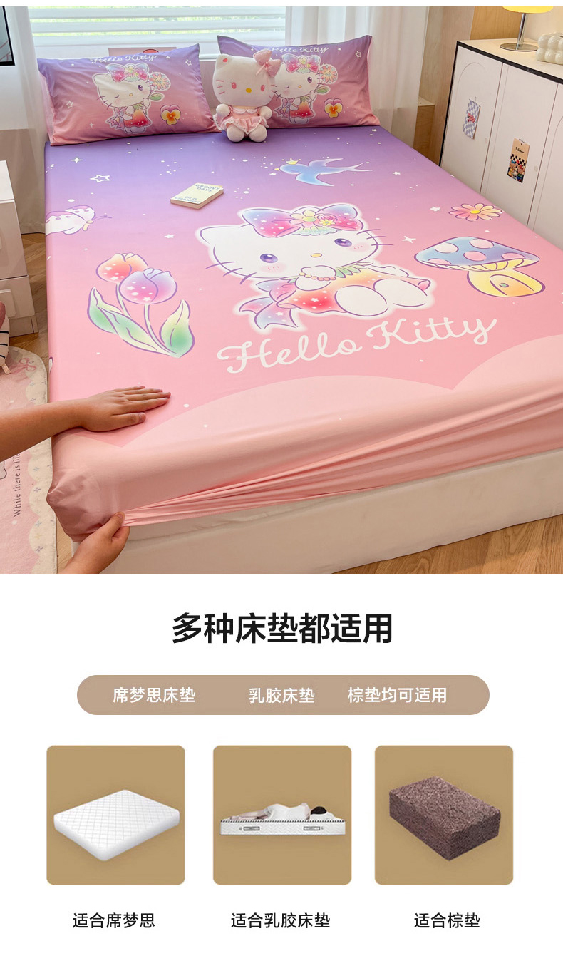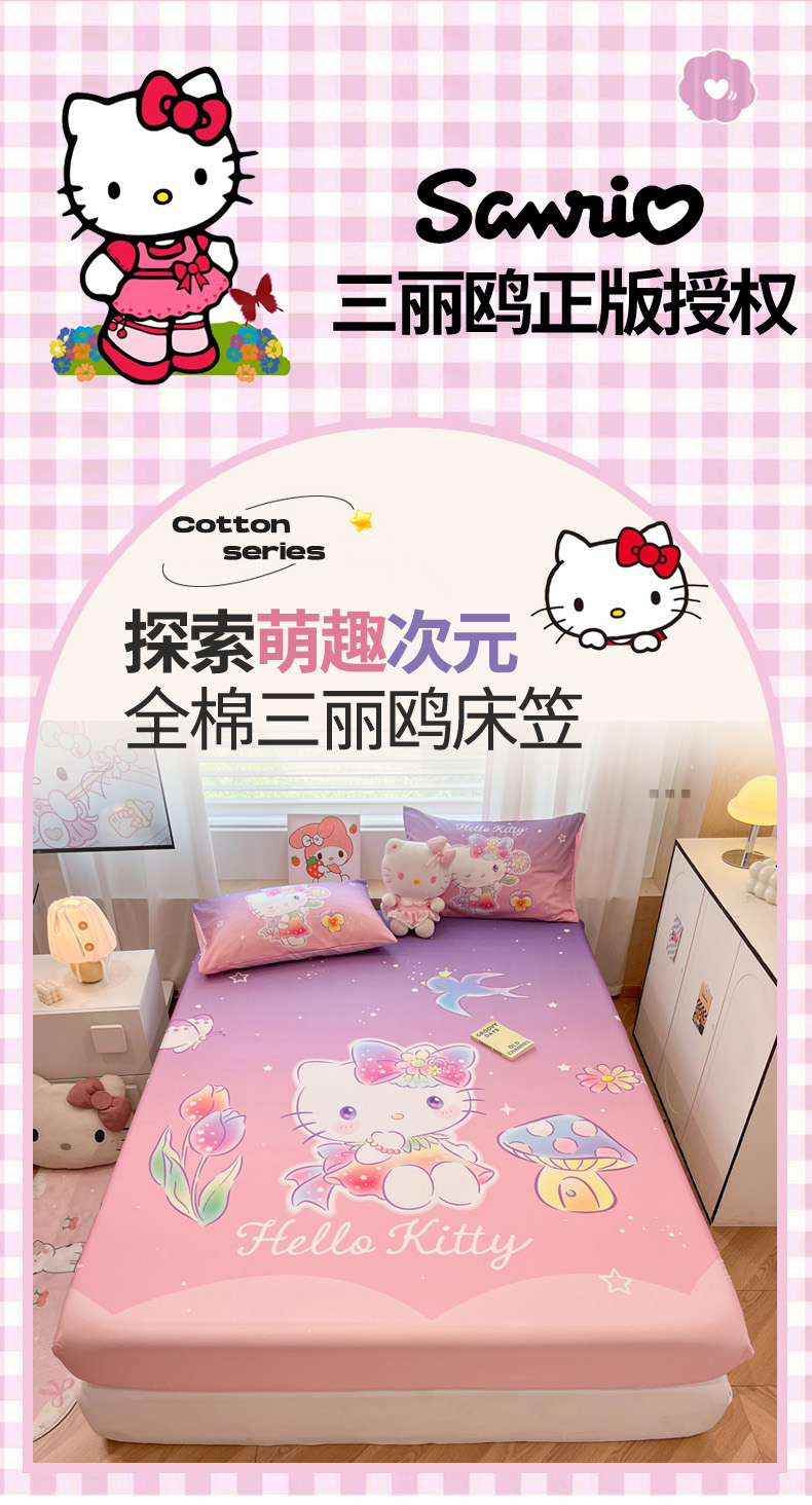 • 91家纺网 家纺一手货源 找家纺 暮思家居 2025新款正版授权三丽鸥大阪全棉数码印花纯棉单品床笠床笠单件单床笠(专版花型) 棉A版-梦幻KT