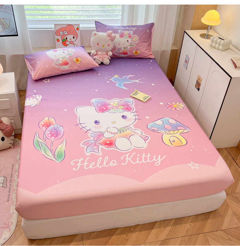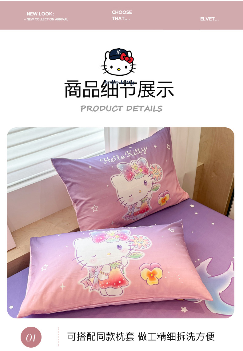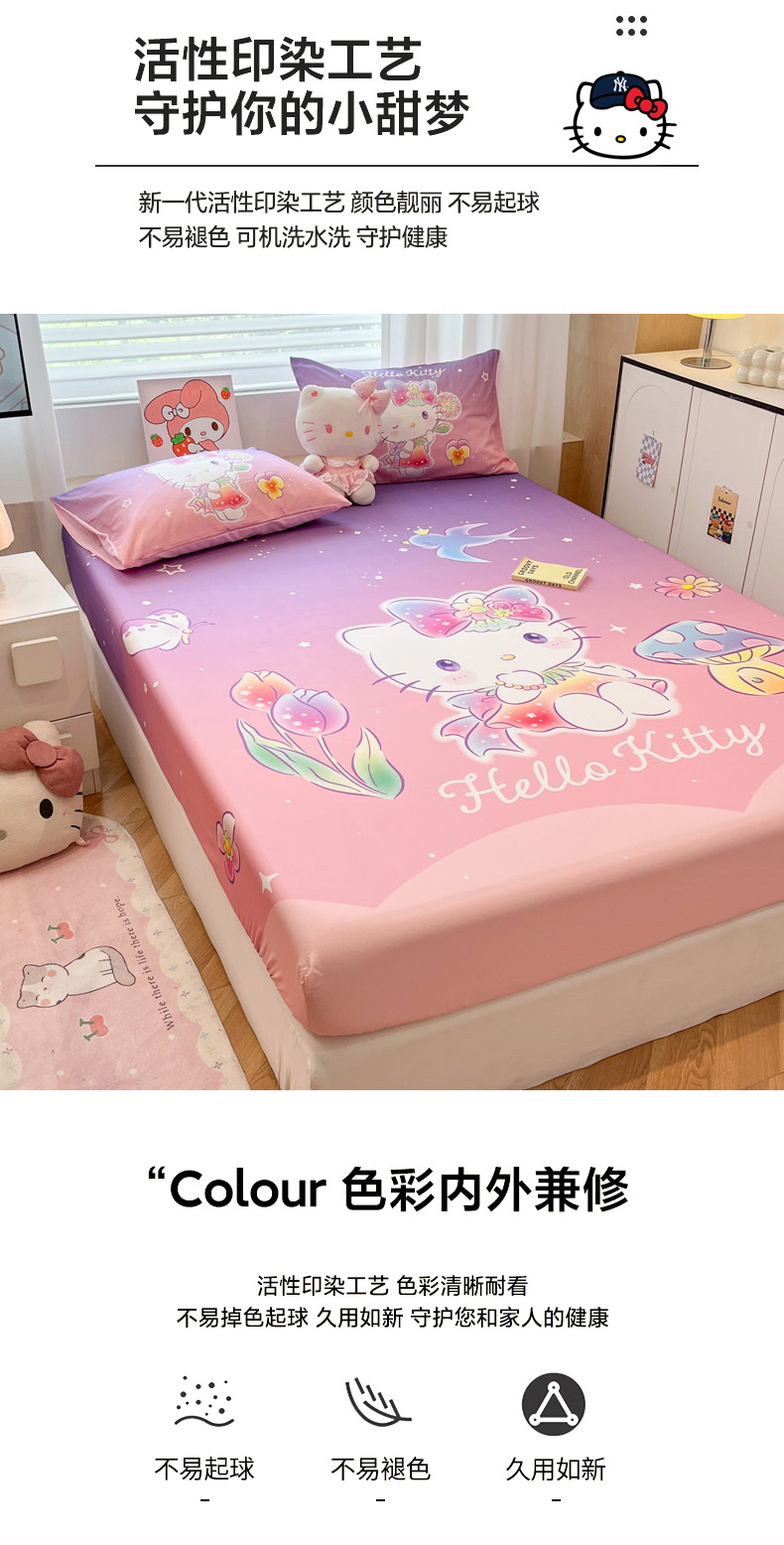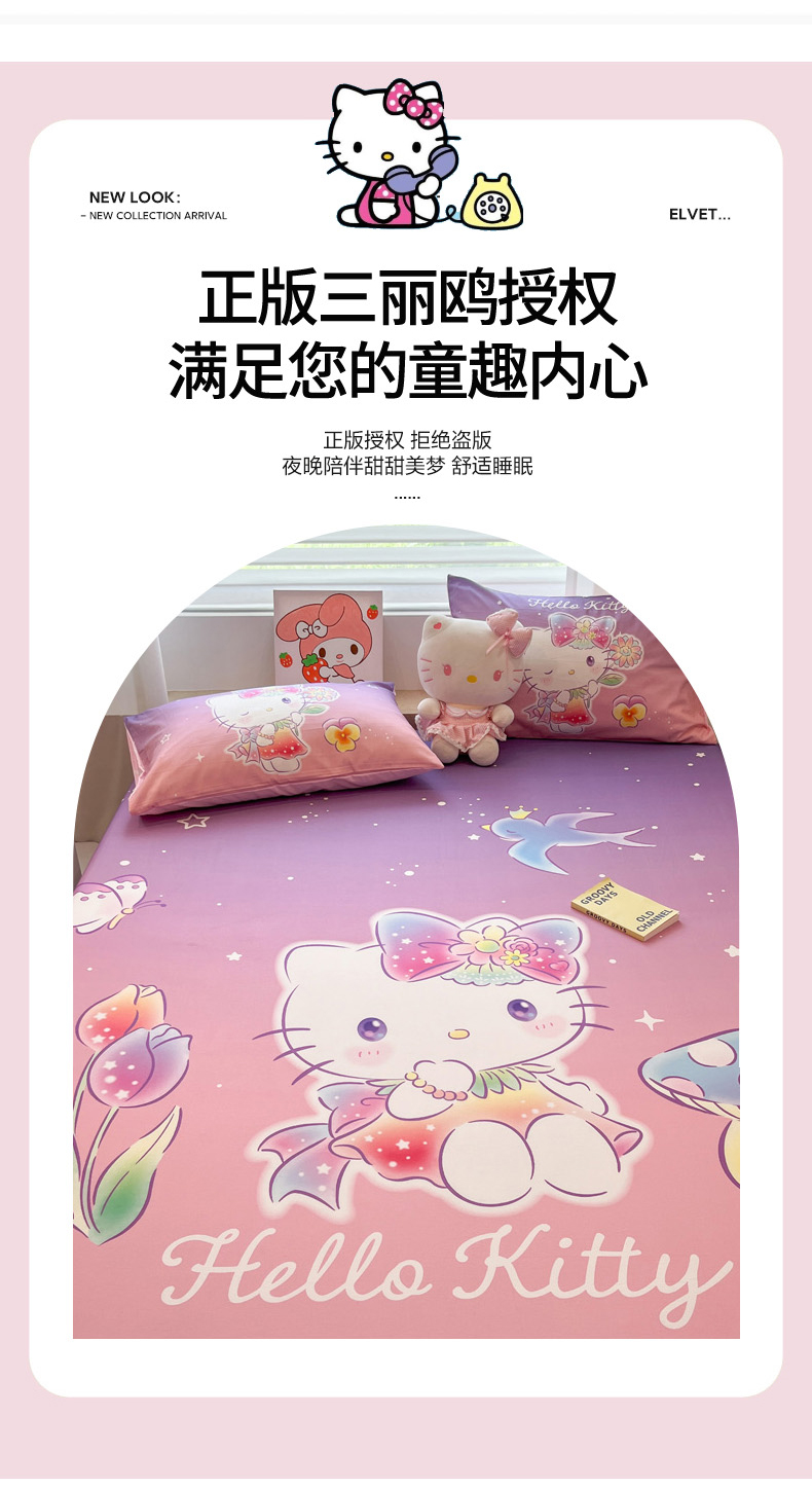 • 91家纺网 家纺一手货源 找家纺 暮思家居 2025新款正版授权三丽鸥大阪全棉数码印花纯棉单品床笠床笠单件单床笠(专版花型) 棉A版-梦幻KT