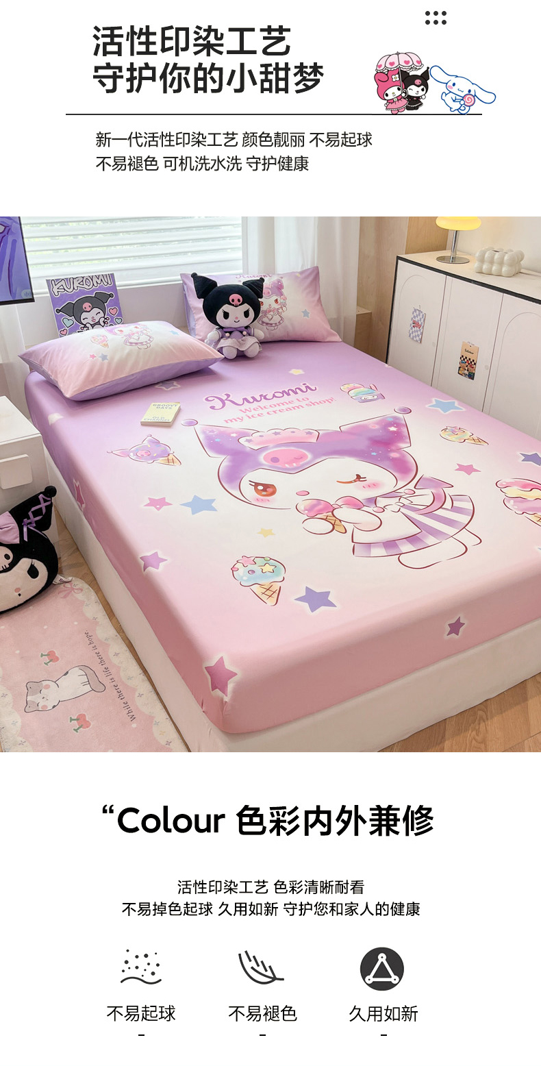 • 91家纺网 家纺一手货源 找家纺 暮思家居 2025新款正版授权三丽鸥大阪全棉数码印花纯棉单品床笠床笠单件单床笠(专版花型) 棉A版-炫彩库洛米