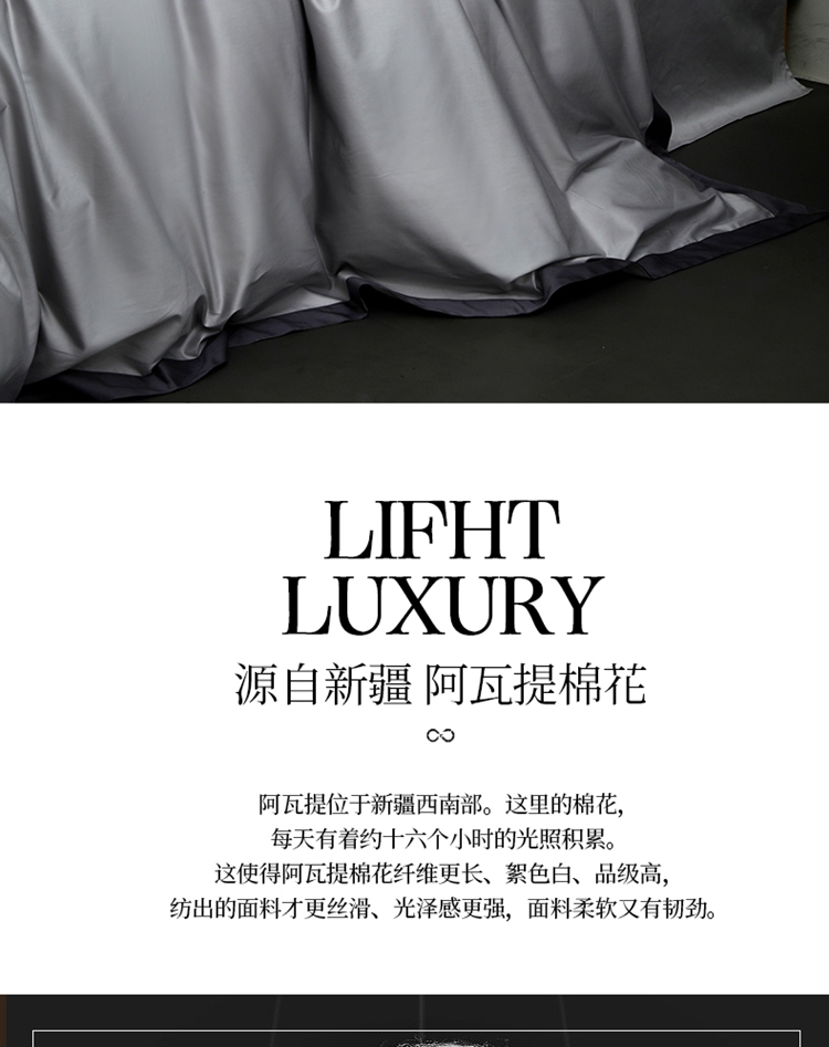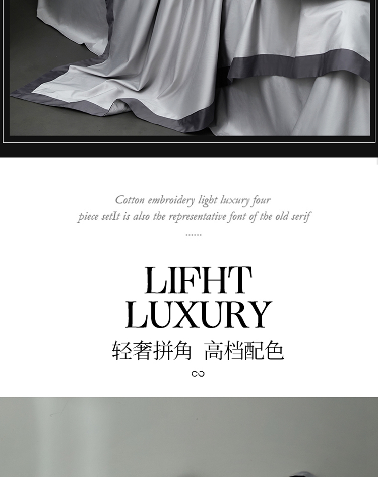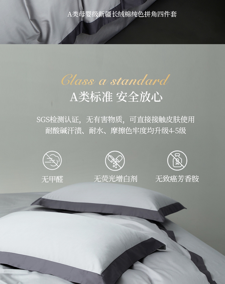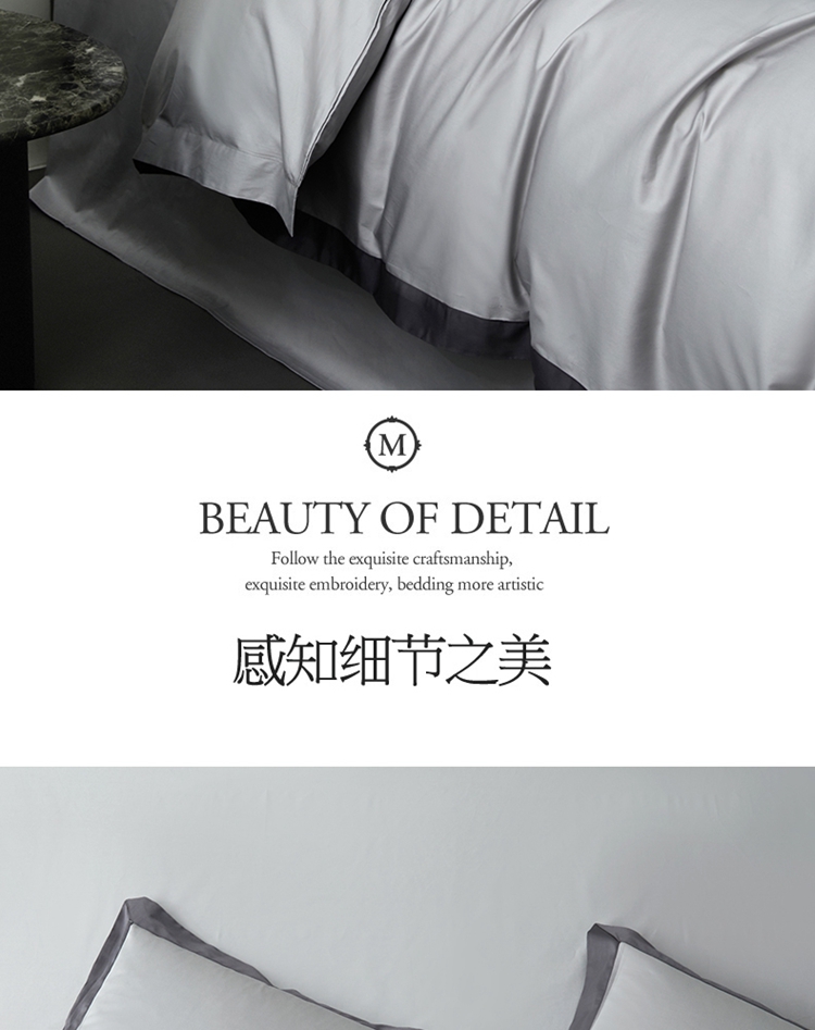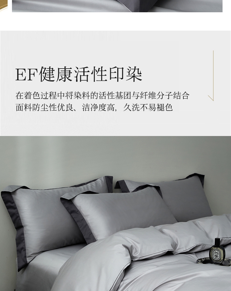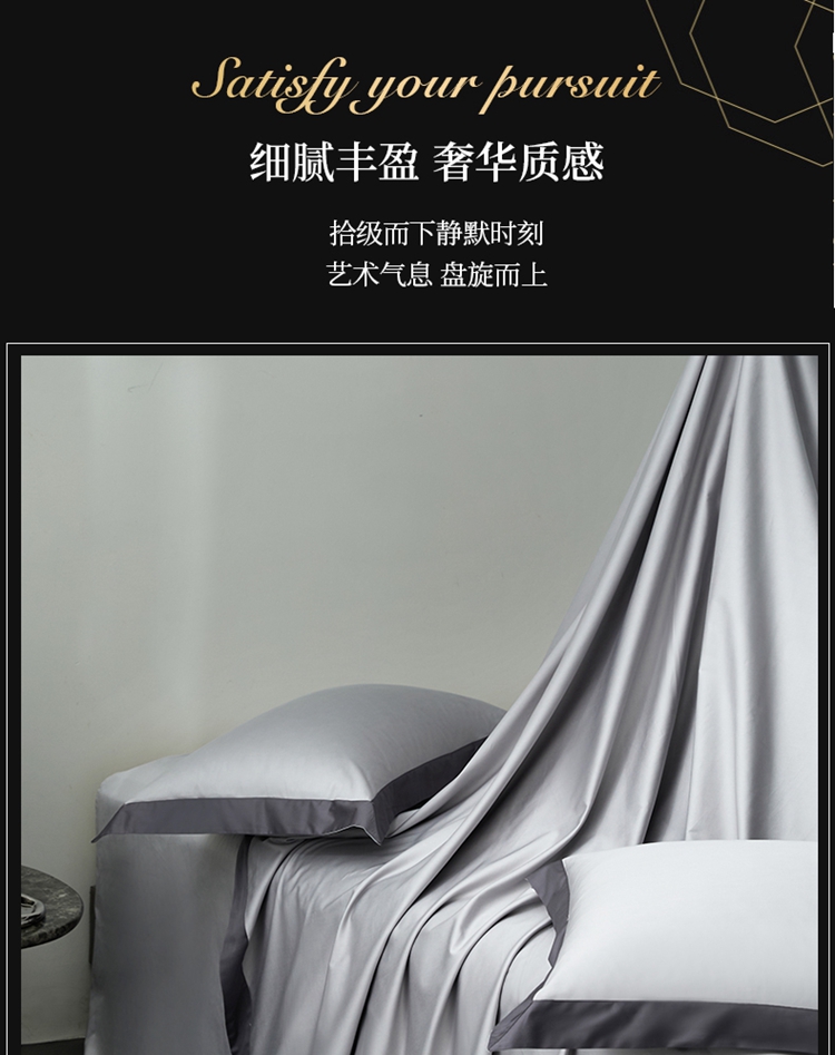 商品名称:柔觉家纺 新款50*50双股长绒棉纯色拼角四件套 雅-圣雅银