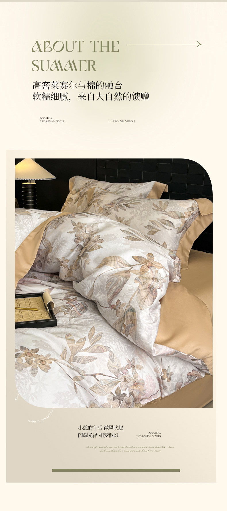 (总)慕晨 2025新款简奢款莱赛尔数码印夏被四件套,春日蜜糖兰,春晓雨梦,春旭恋曲,繁华枝恋,浮光落影,林间蜜杏,蔓艺,漫语佳人米,念池-粉,念池-绿,清雅,情依,素瑾绿,遥花,云芷,研艺黄