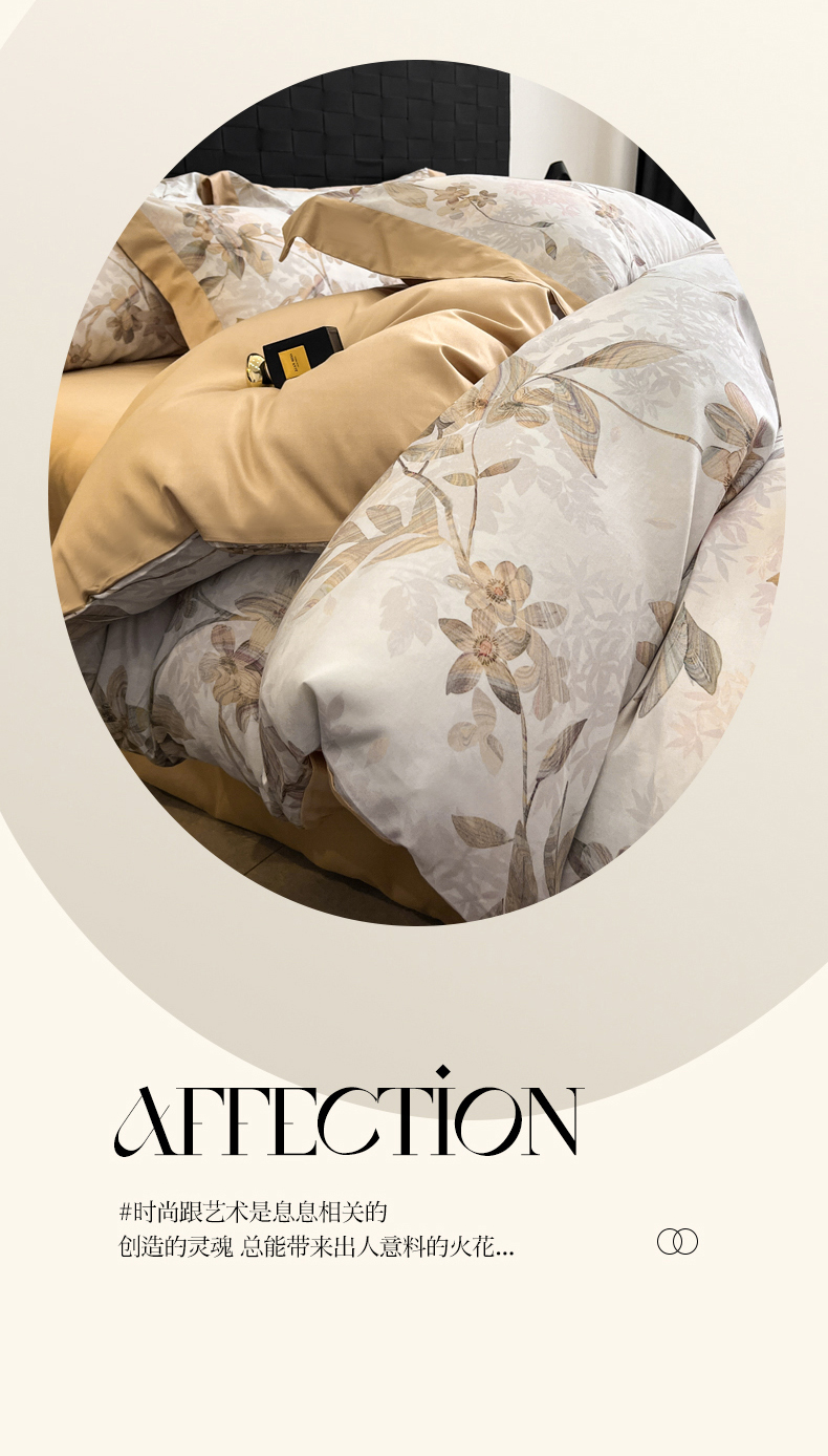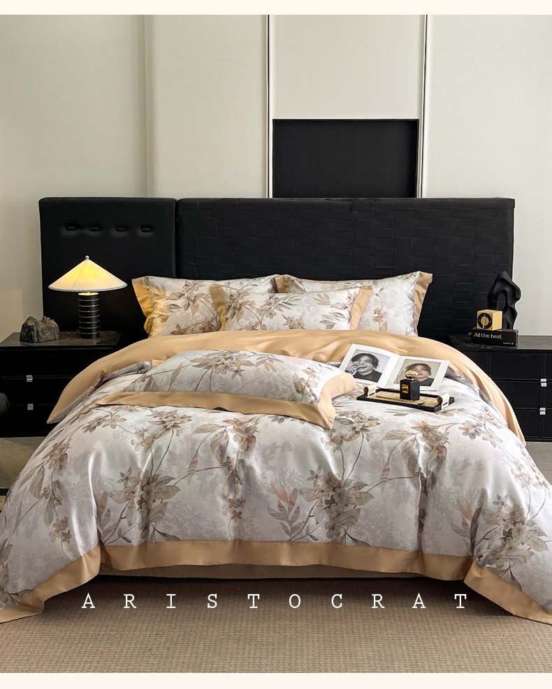 慕晨 2025新款65%莱赛尔32%棉全棉磨毛数码印花宽边高级简奢款中高端四件套直播热款 砚禾