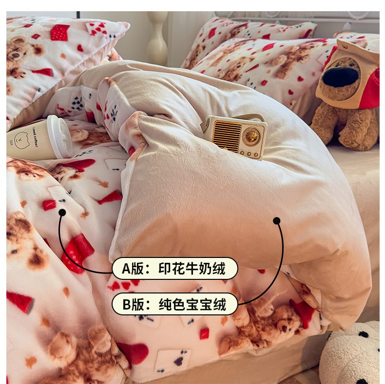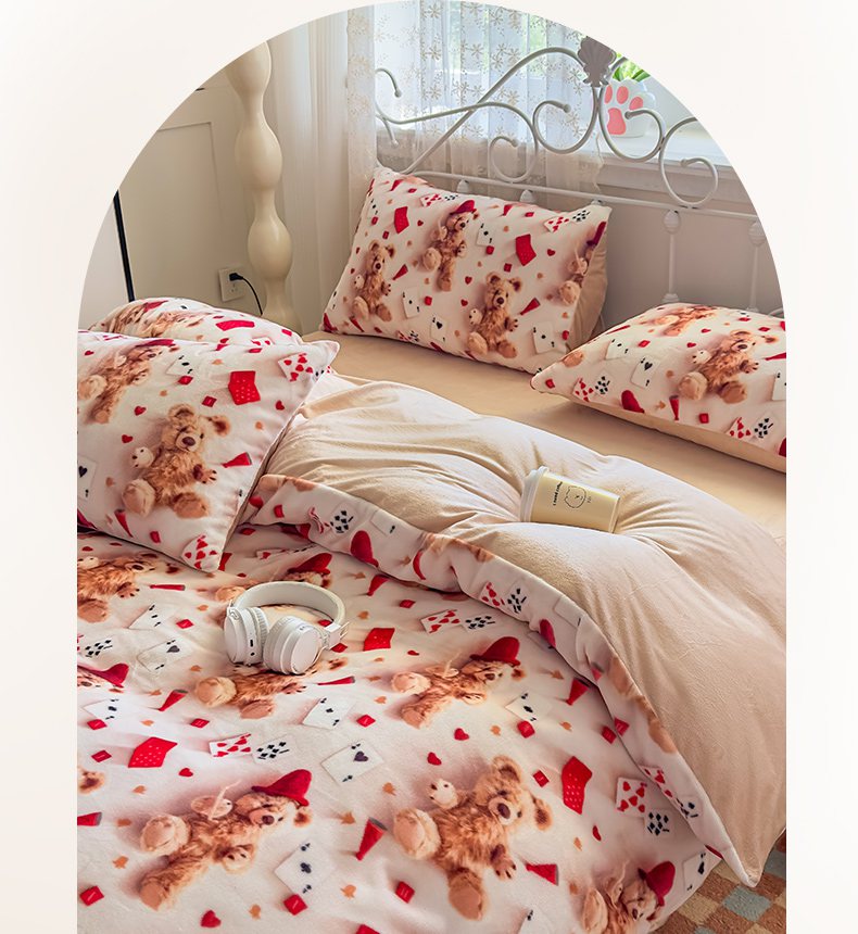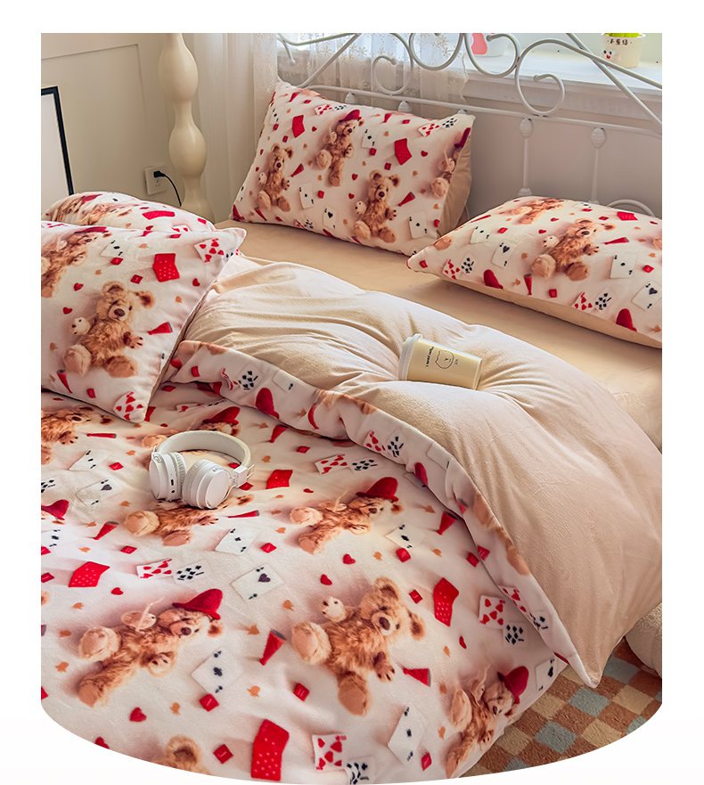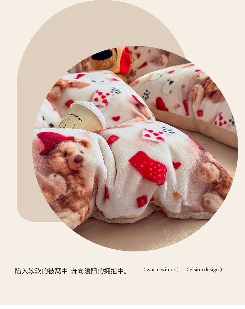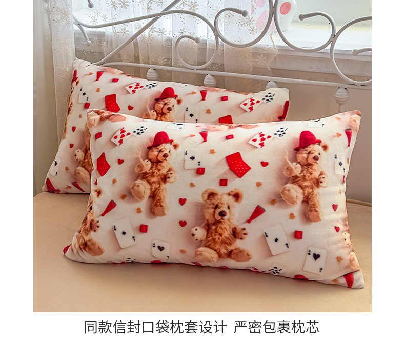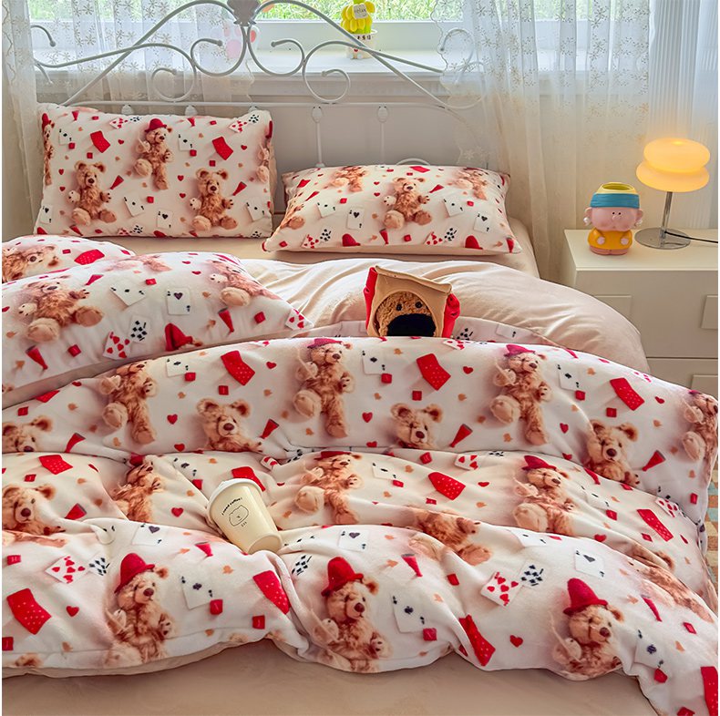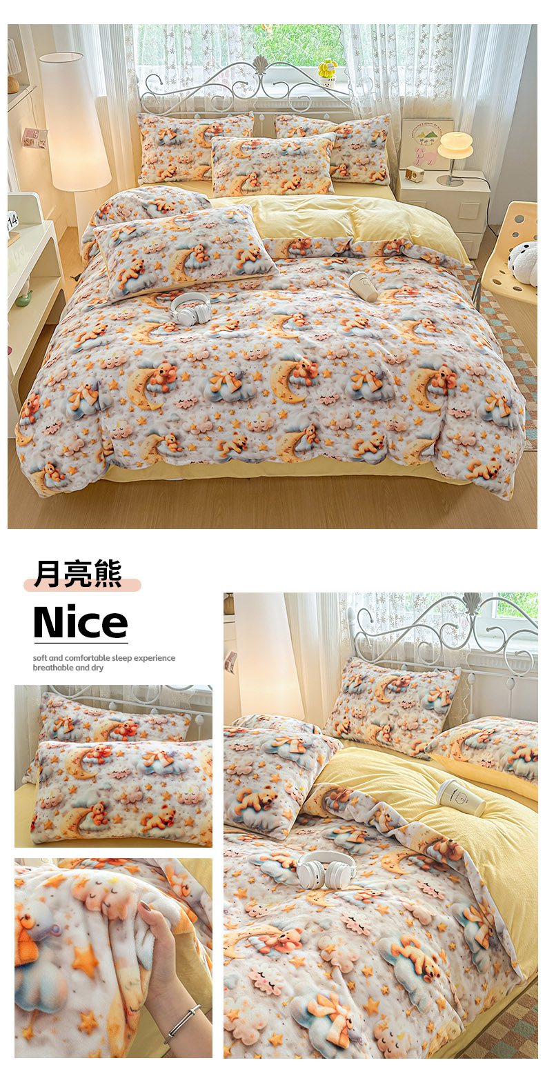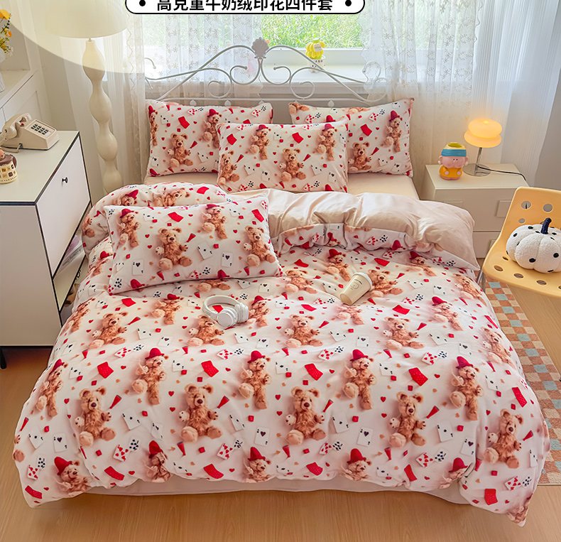 潮邦创意家居 2025新款5D数码牛奶绒印花系列四件套 卡牌熊