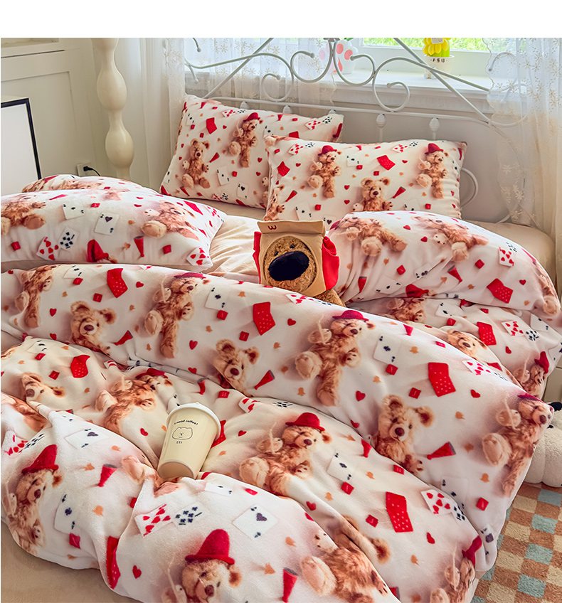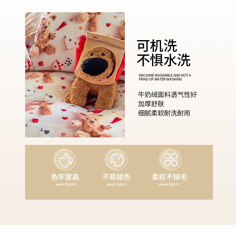 商品名称:潮邦创意家居 2025新款5D数码牛奶绒印花系列四件套 卡牌熊