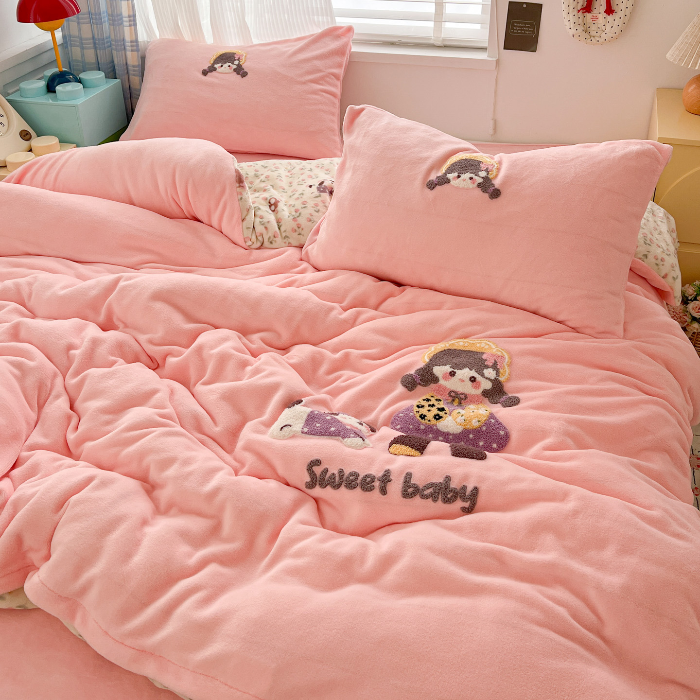 (总)仟网汇 2025新款亲肤舒适双面牛奶绒床盖款四件套,爱心灰,爱心紫,复古小花,黑珍珠,可可奶咖,蔷薇粉,丝绒蛋糕,胭脂,樱桃格趣,枝枝兔,妖姬,紫波点,豆蔻年华,朵缦,赫本,黑糖珍珠,樱桃派,豹纹kt咖