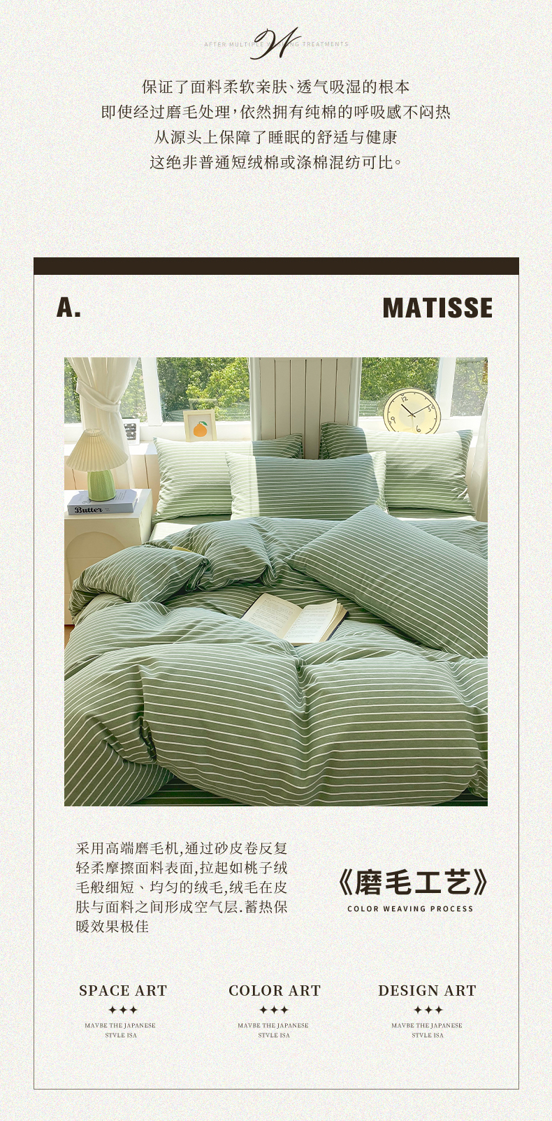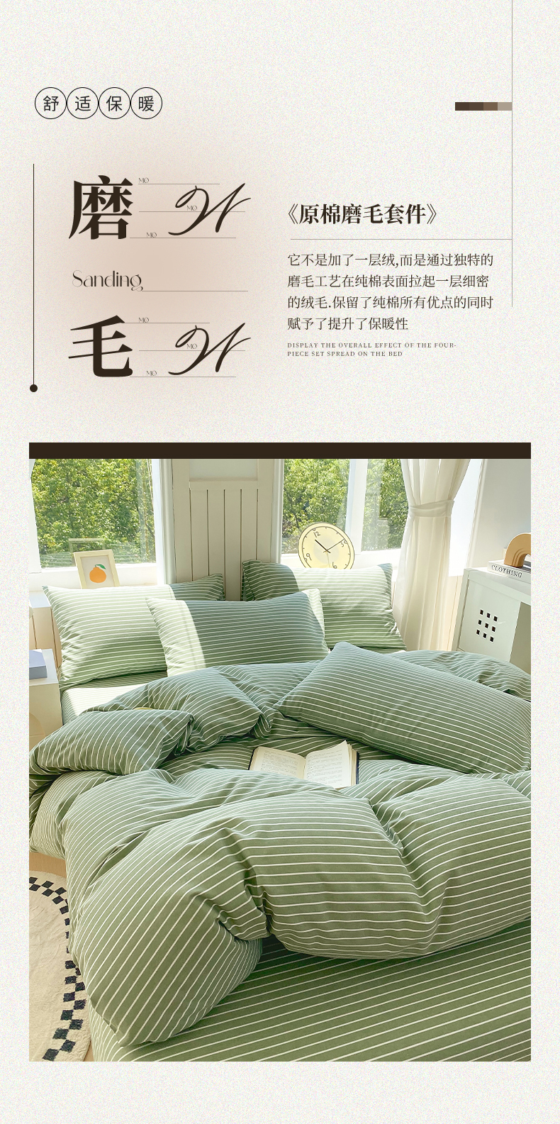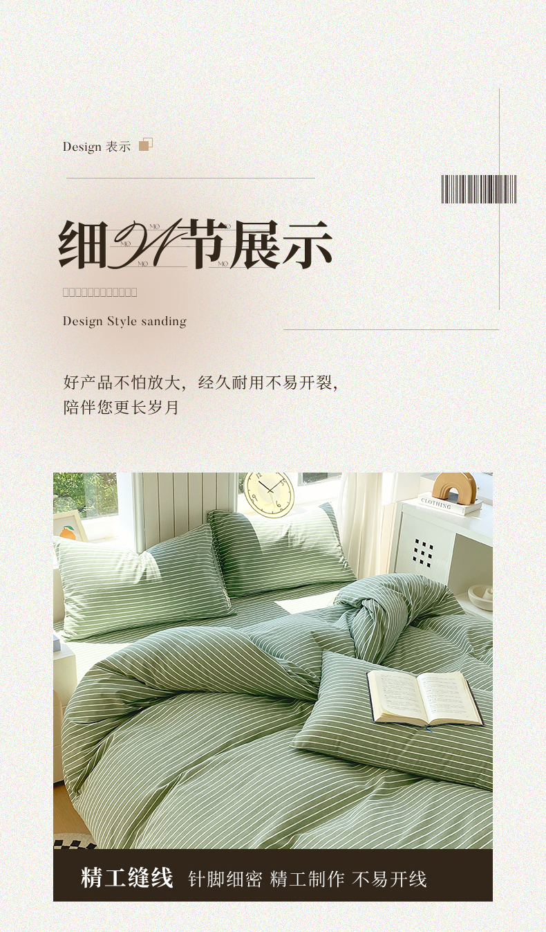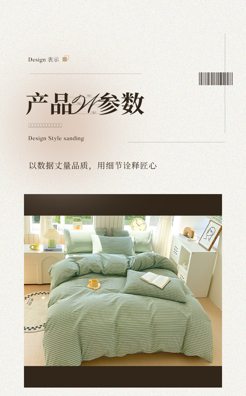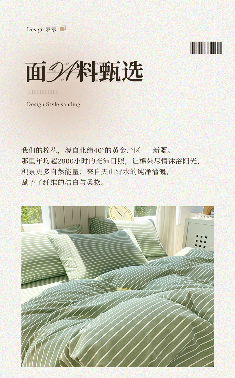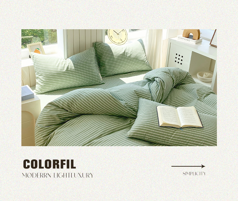当前位置: 91家纺网 > 商品网购 > 床品套件 > 四件套 > 普通磨毛四件套 > 春皖家纺 2025新款原棉磨毛四件套-风格一 艾绿条