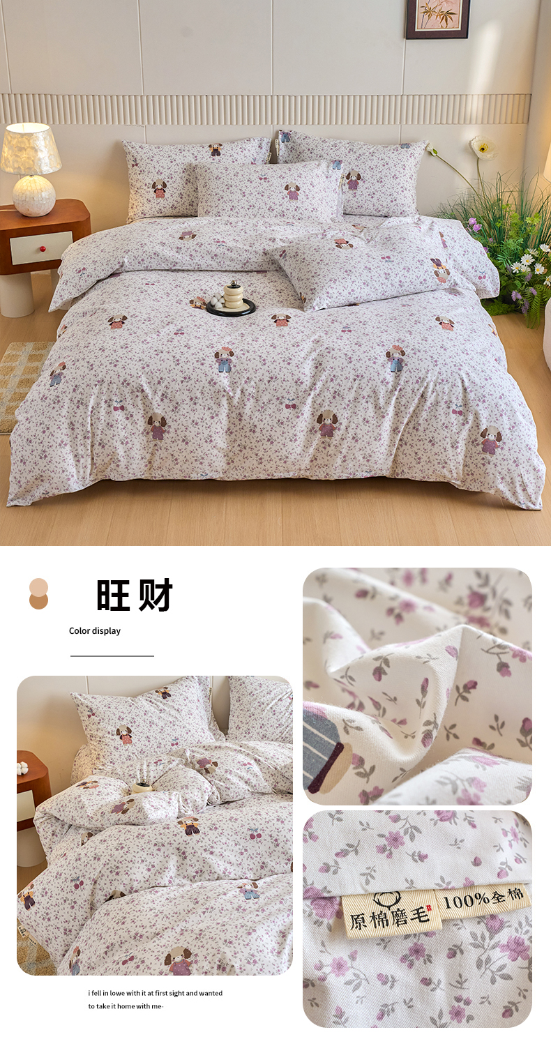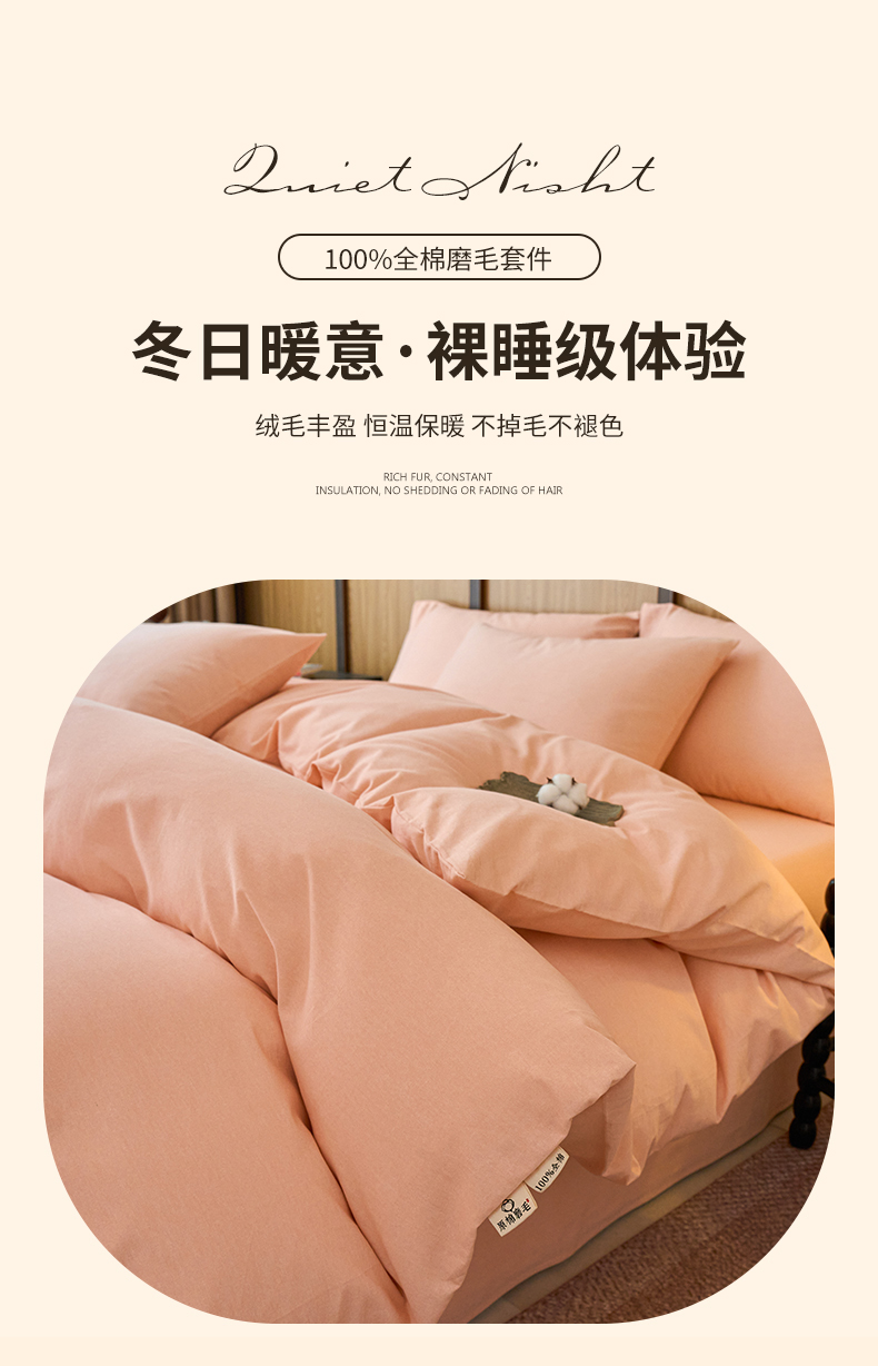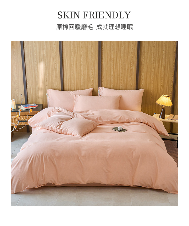 商品名称:春皖家纺 2025新款全棉原棉磨毛色织水洗四件套回暖系列-风格二 丽人粉