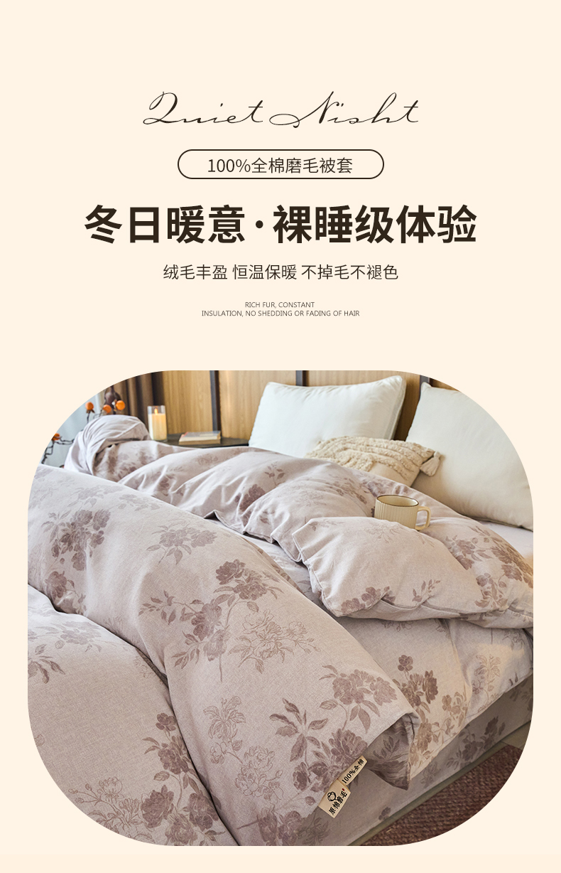 商品名称:春皖家纺 2025新款全棉原棉磨毛色织水洗单被套回暖系列-风格二 花庭悦舞