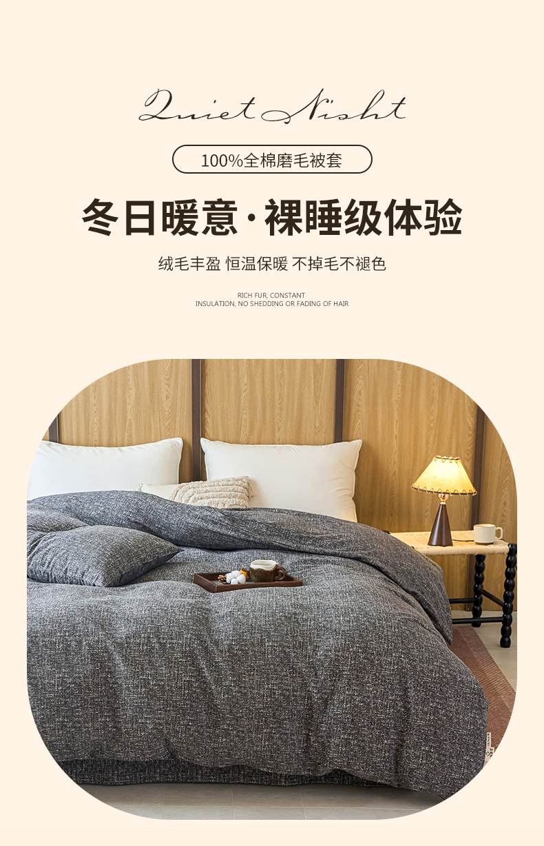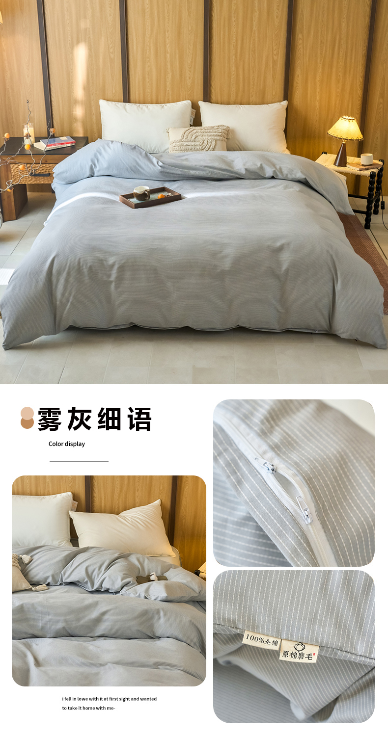 商品名称:春皖家纺 2025新款全棉原棉磨毛色织水洗单被套回暖系列-风格二 浅陌灰