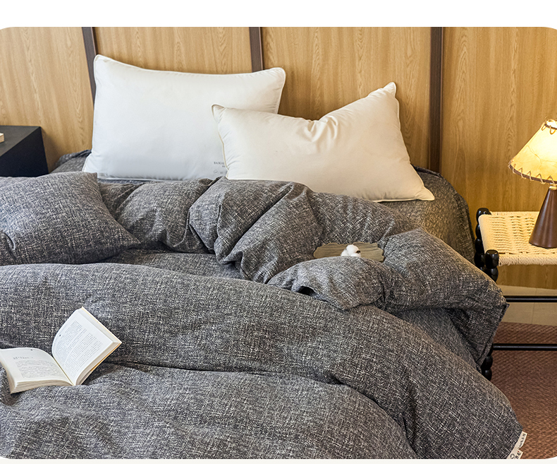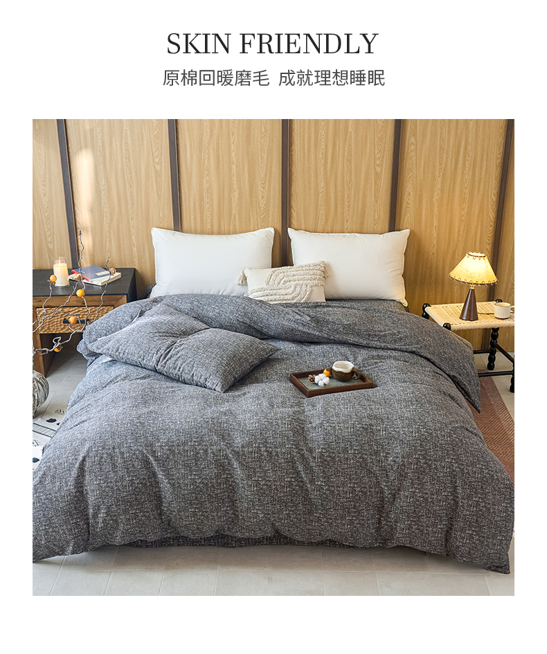 春皖家纺 2025新款全棉原棉磨毛色织水洗单被套回暖系列-风格二 浅陌灰