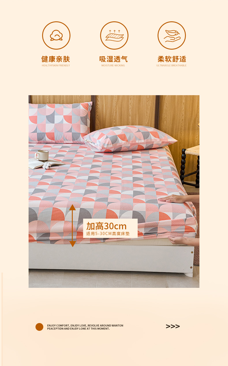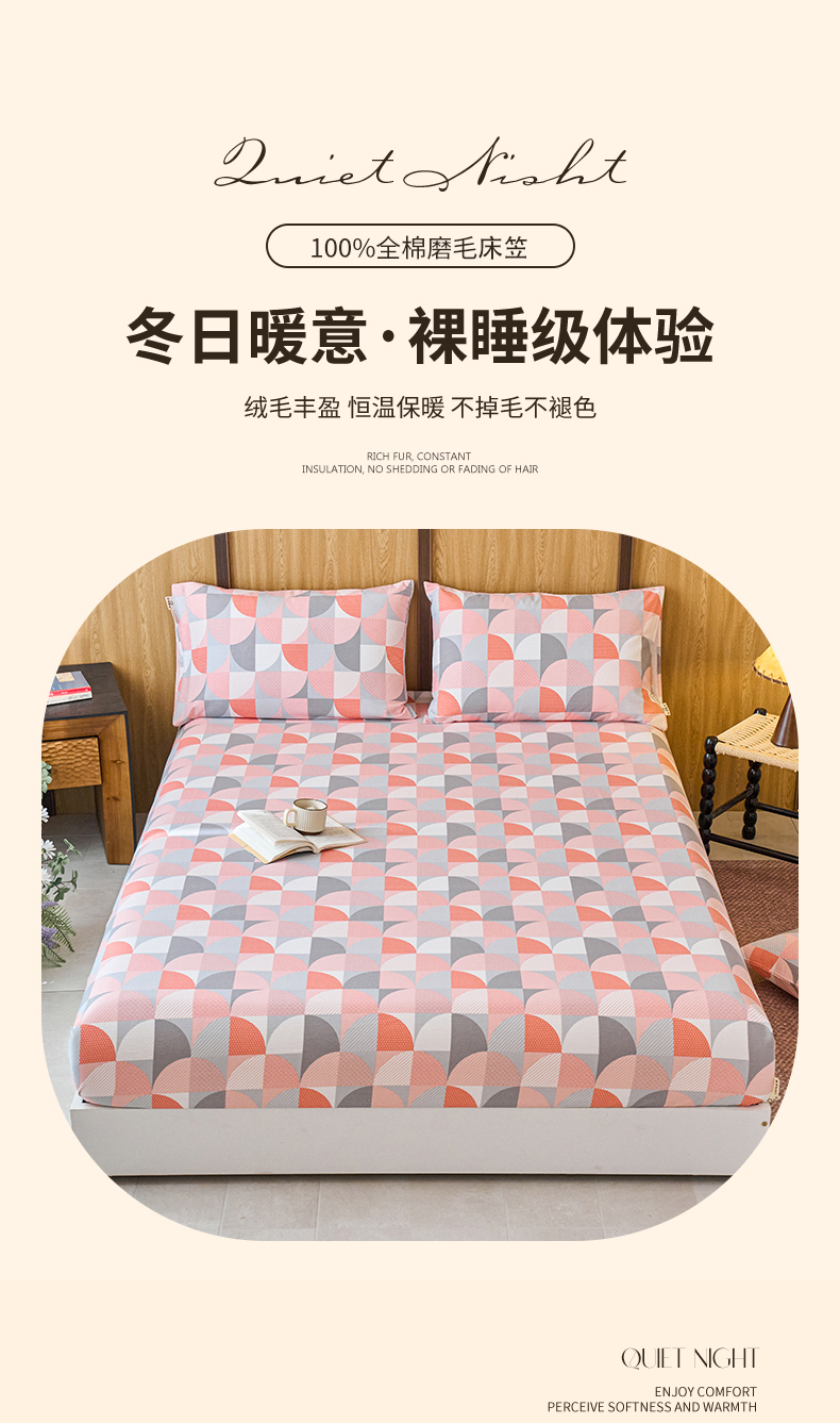 春皖家纺 2025新款原棉磨毛单床笠 床笠单件-风格一几何梦