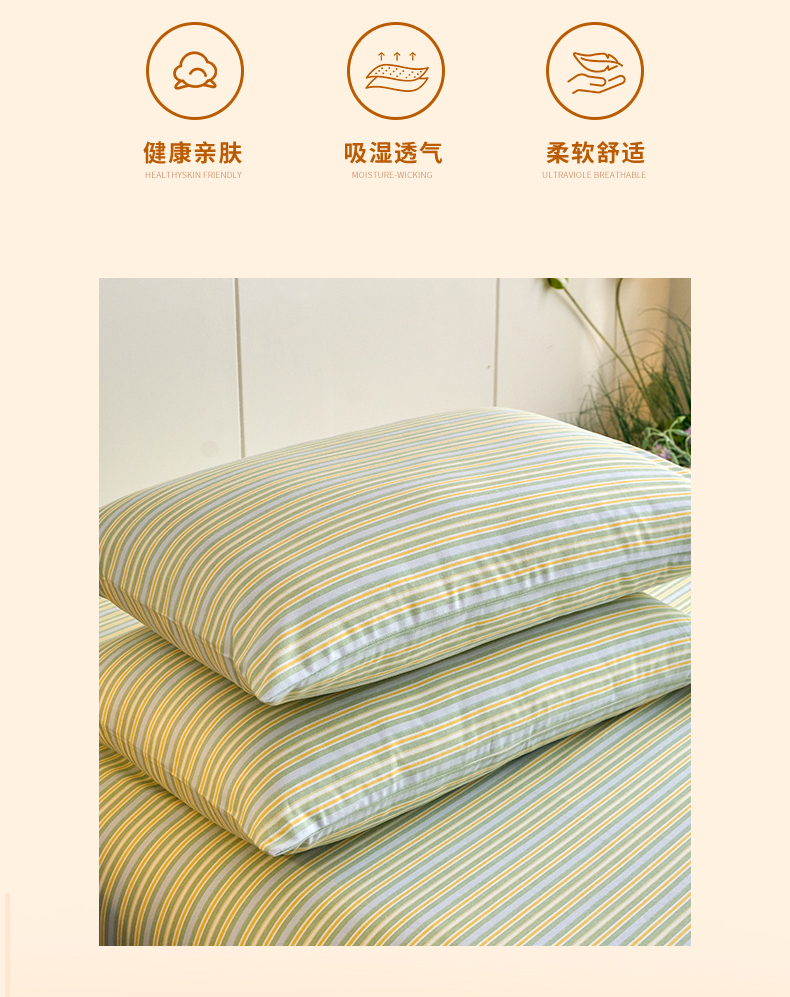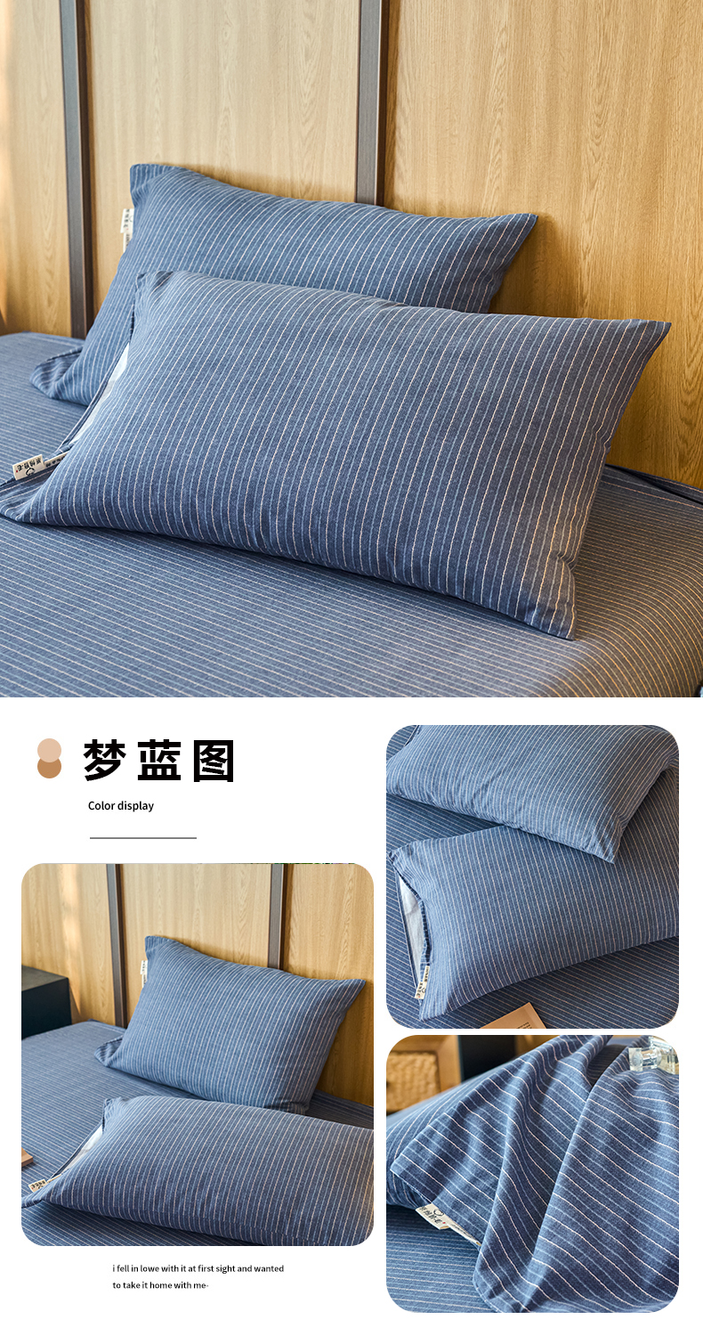 商品名称:春皖家纺 2025新款全棉原棉磨毛色织水洗单枕套回暖系列-风格二 云水间
