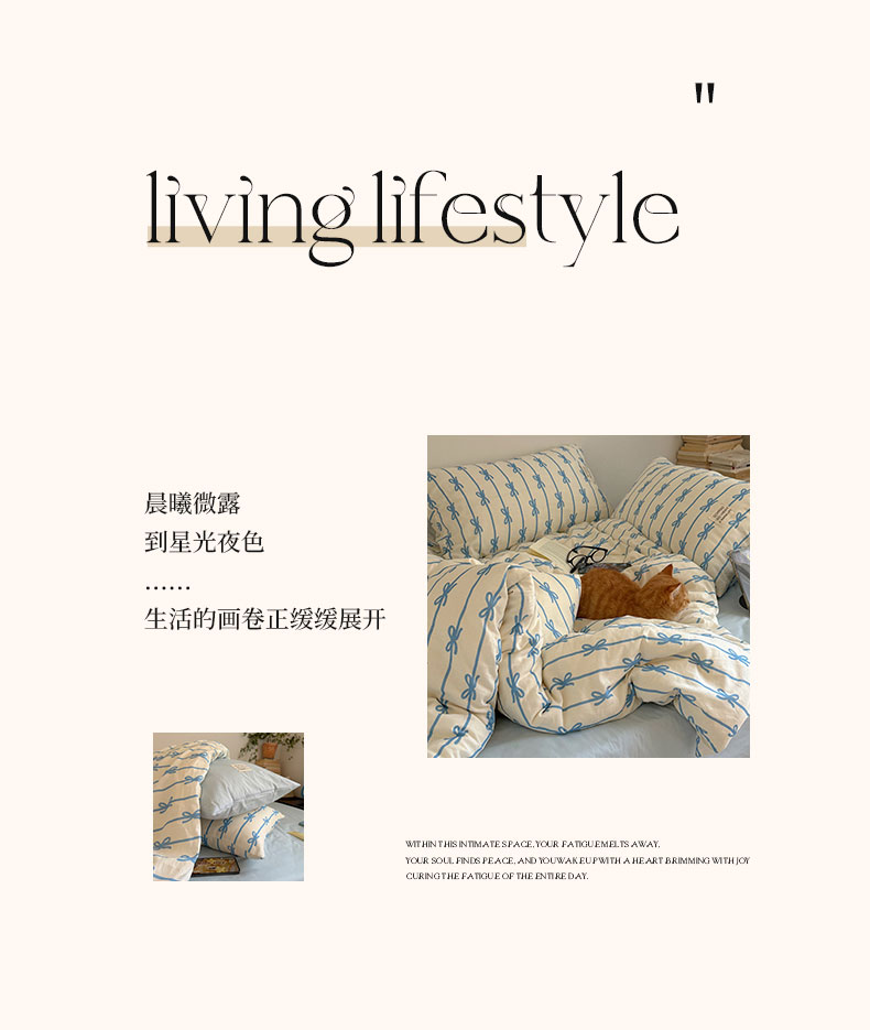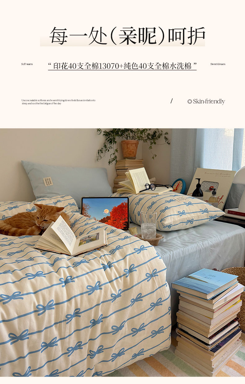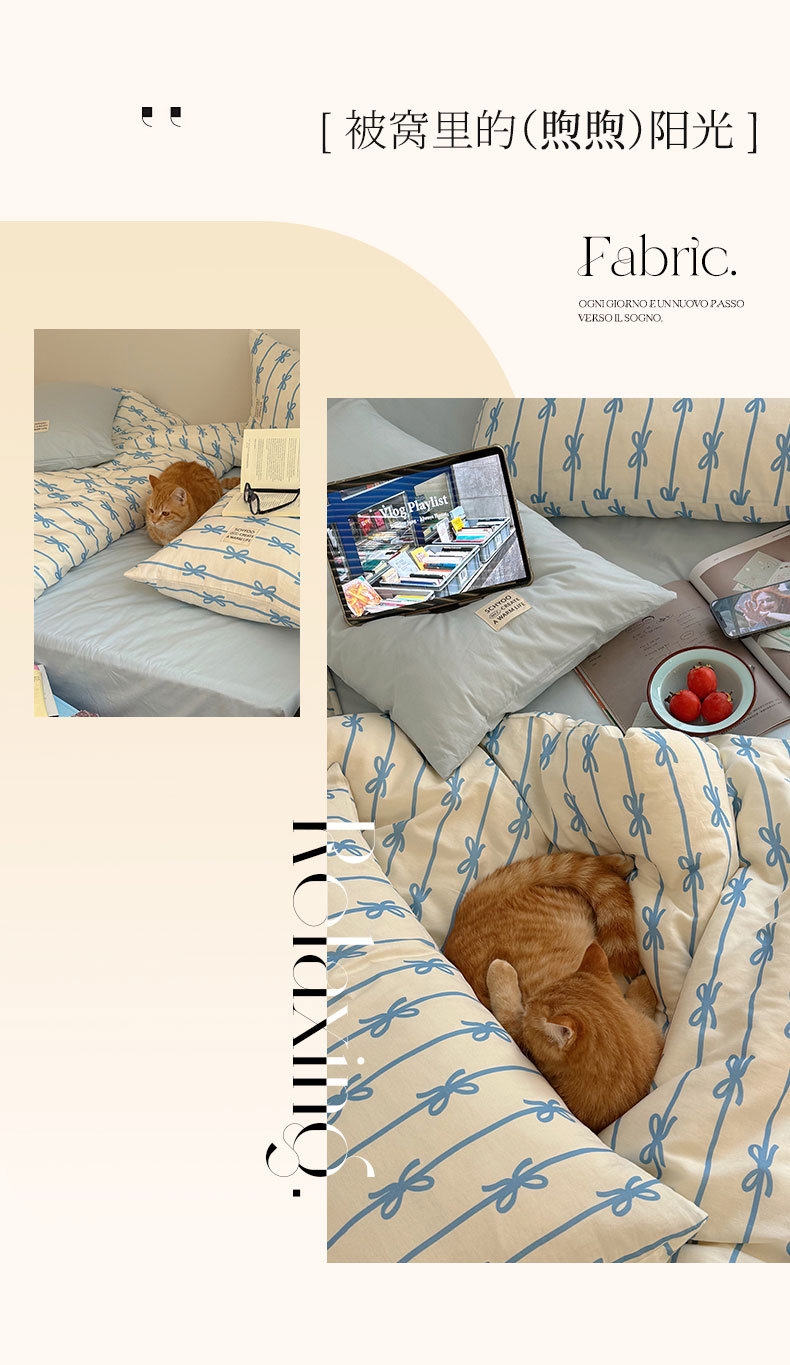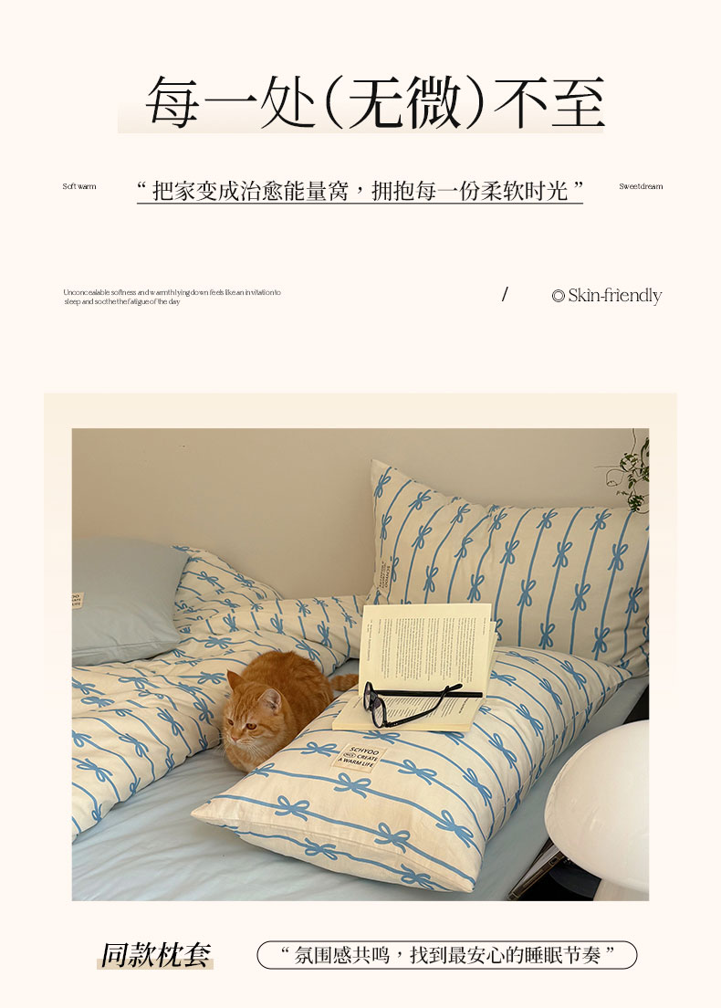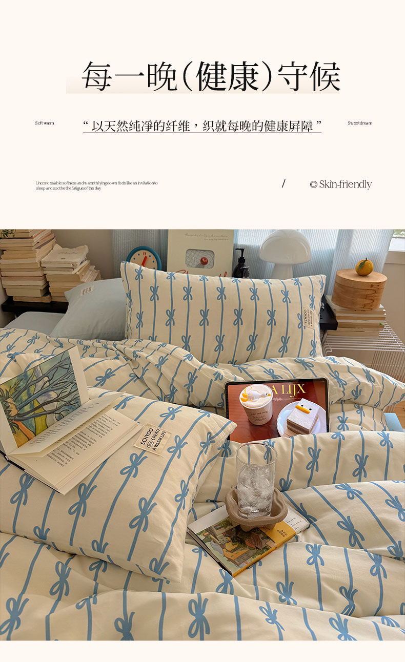六巷胡同 2026春夏新款INS博主风韩系蝴蝶结全棉四件套 丝带蝴蝶结-蓝